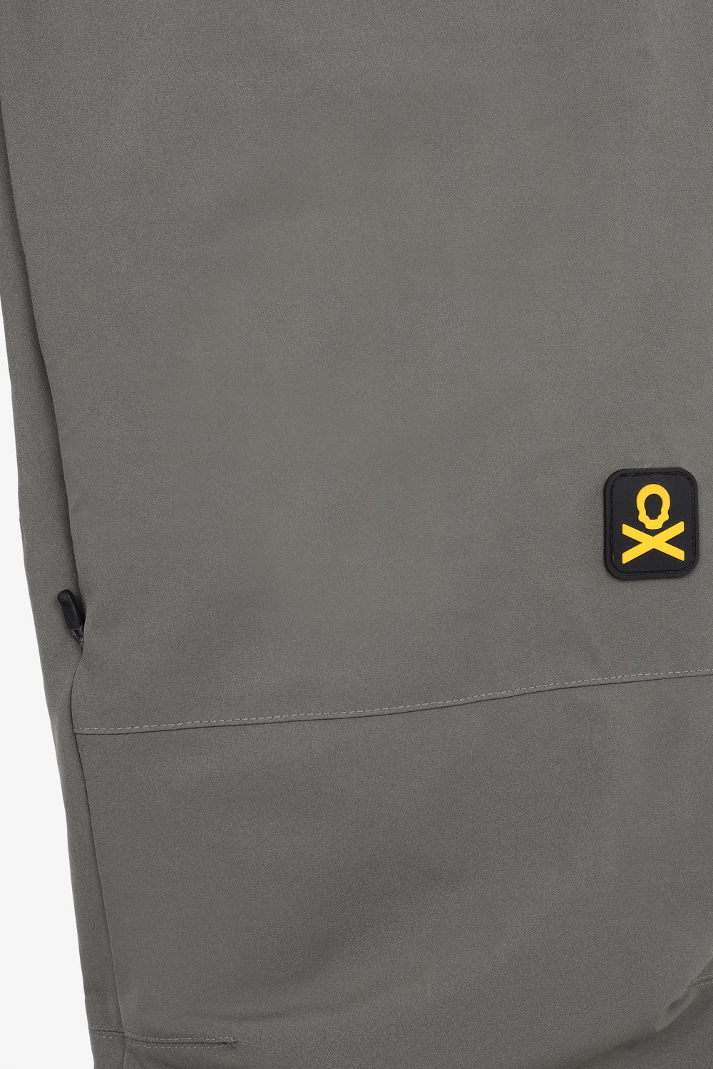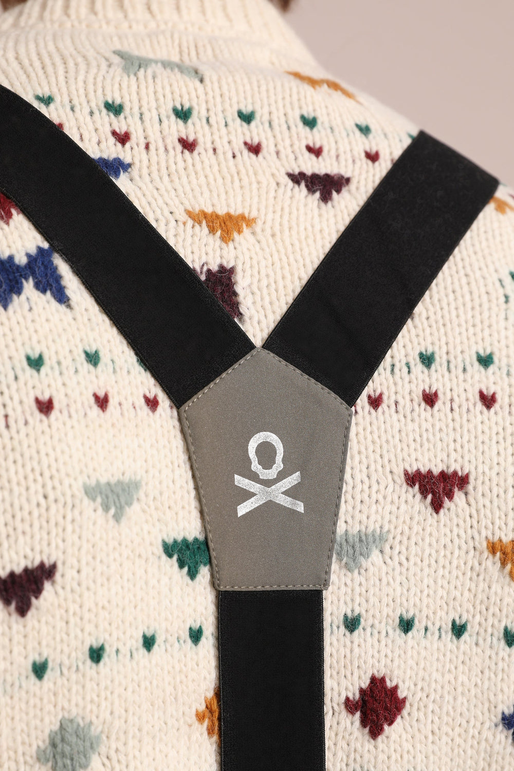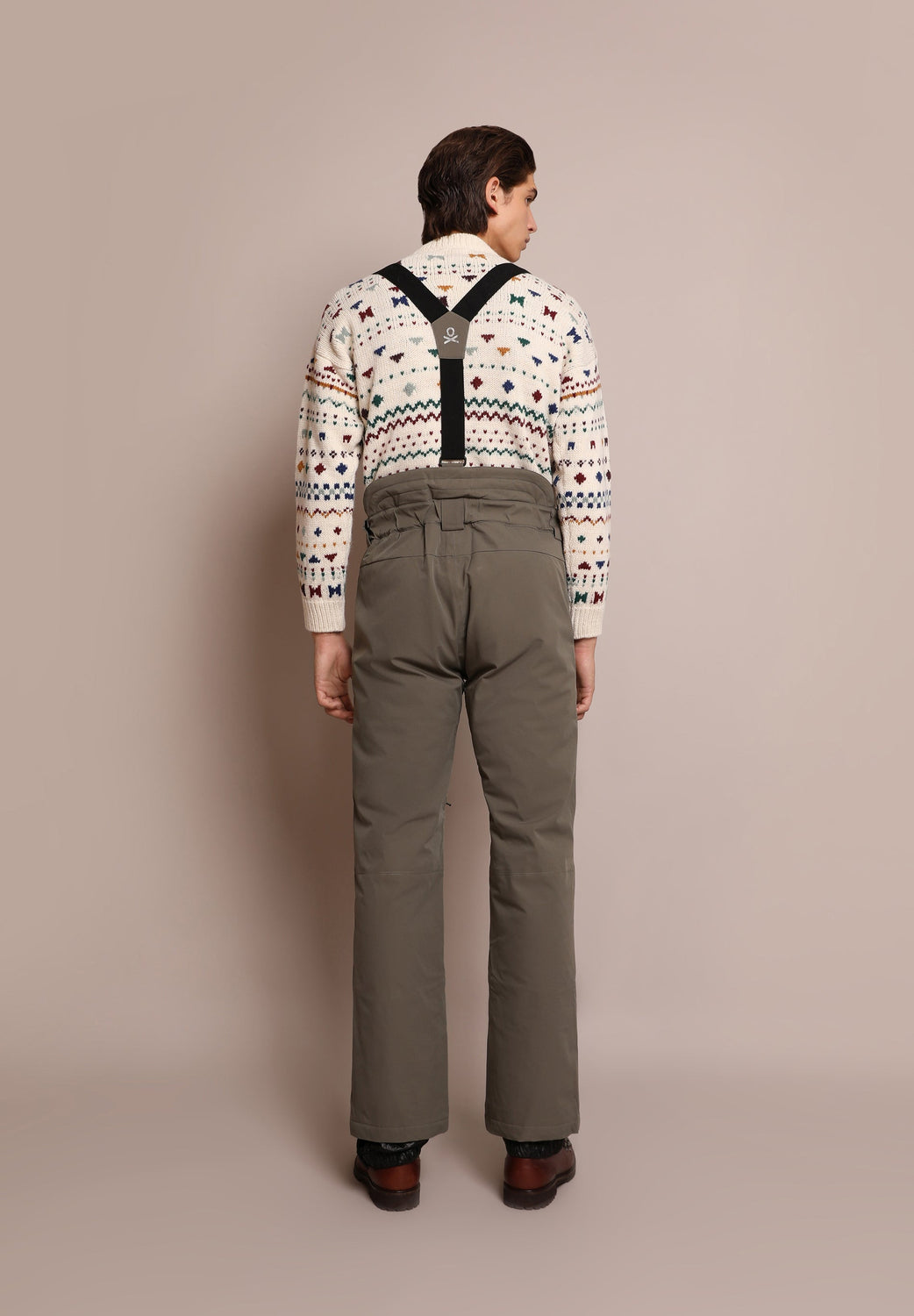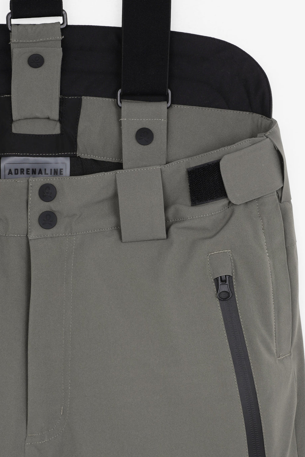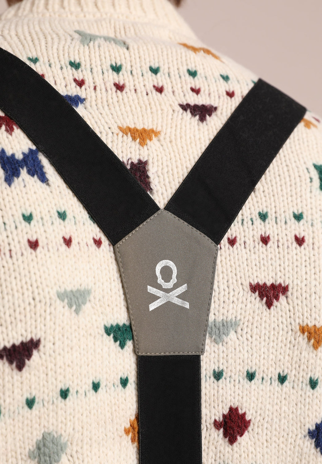 Ski trousers made of technical fabric. Regular fit cut with velcro waist adjusters. Padded back waist with higher panel for lumbar protection. Snap and zip fastening. Elasticated and adjustable shoulder straps. Side pockets with heat-sealed zips. Ventilation openings with zips. Elasticated bottom with Velcro fastening and snaps. Hook for attaching boot. Reflective skull detail.