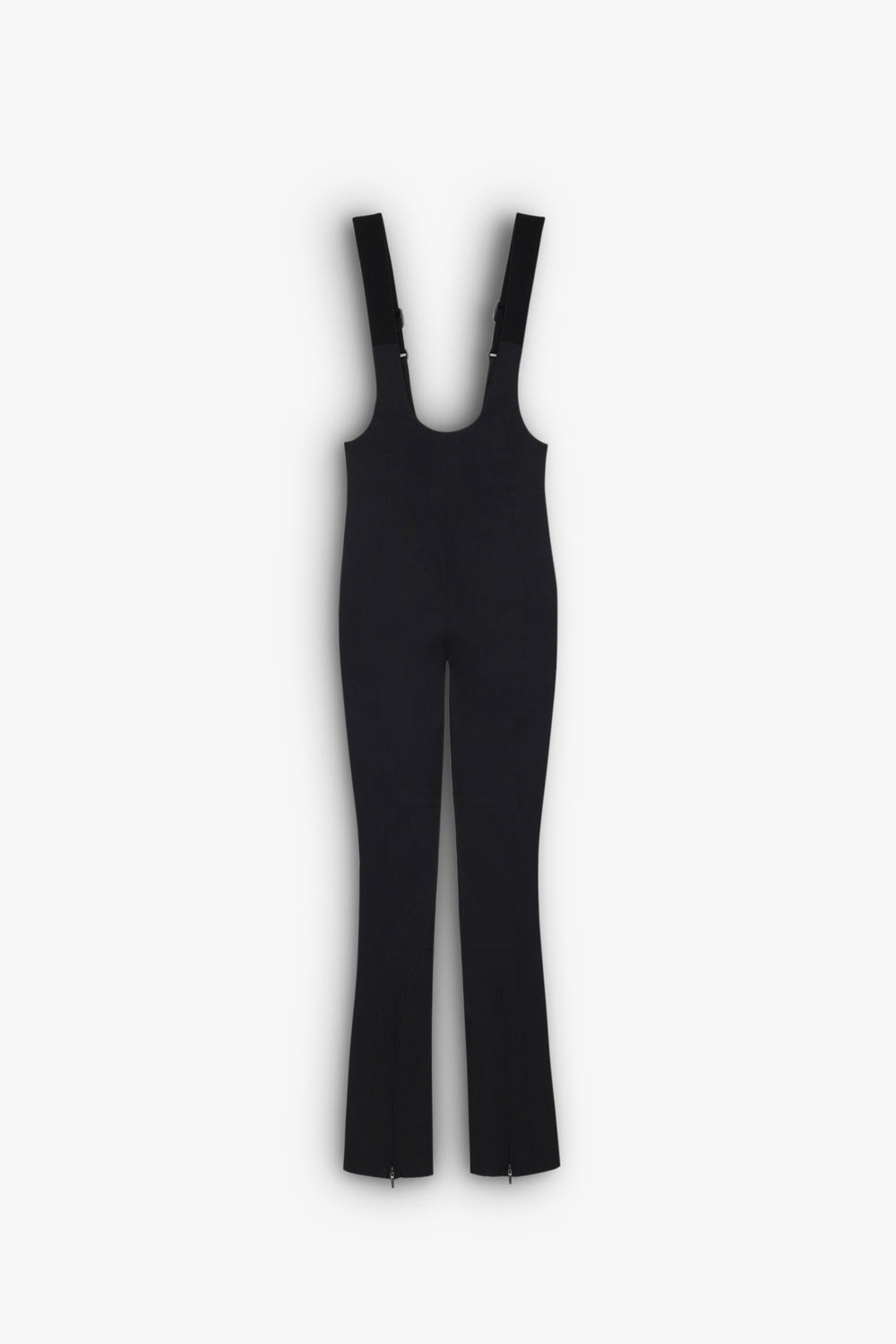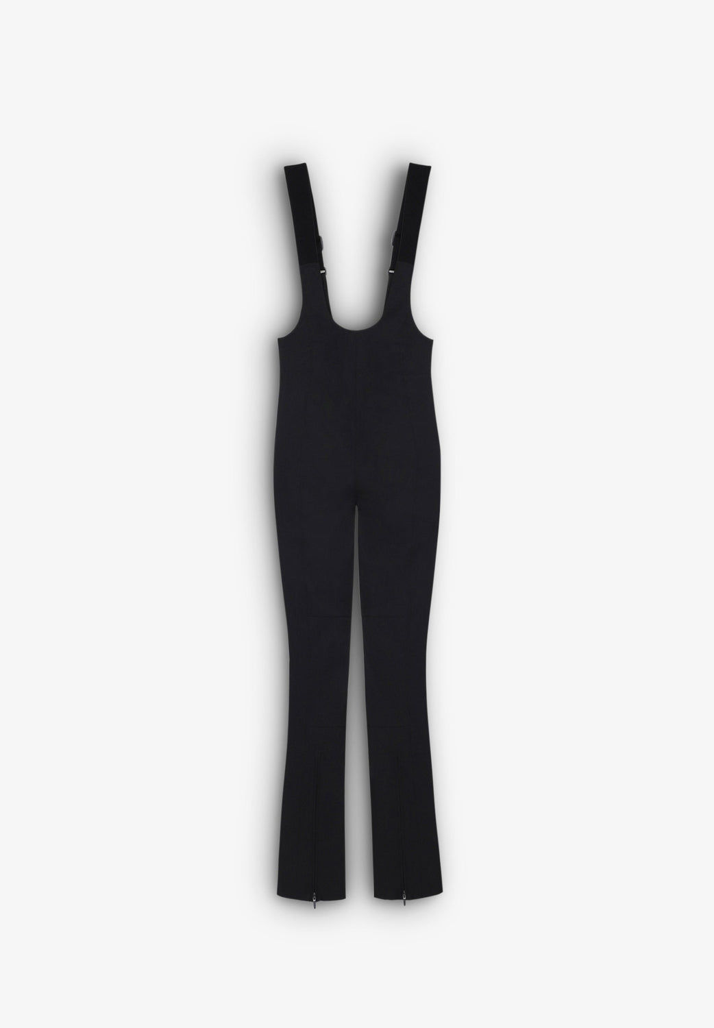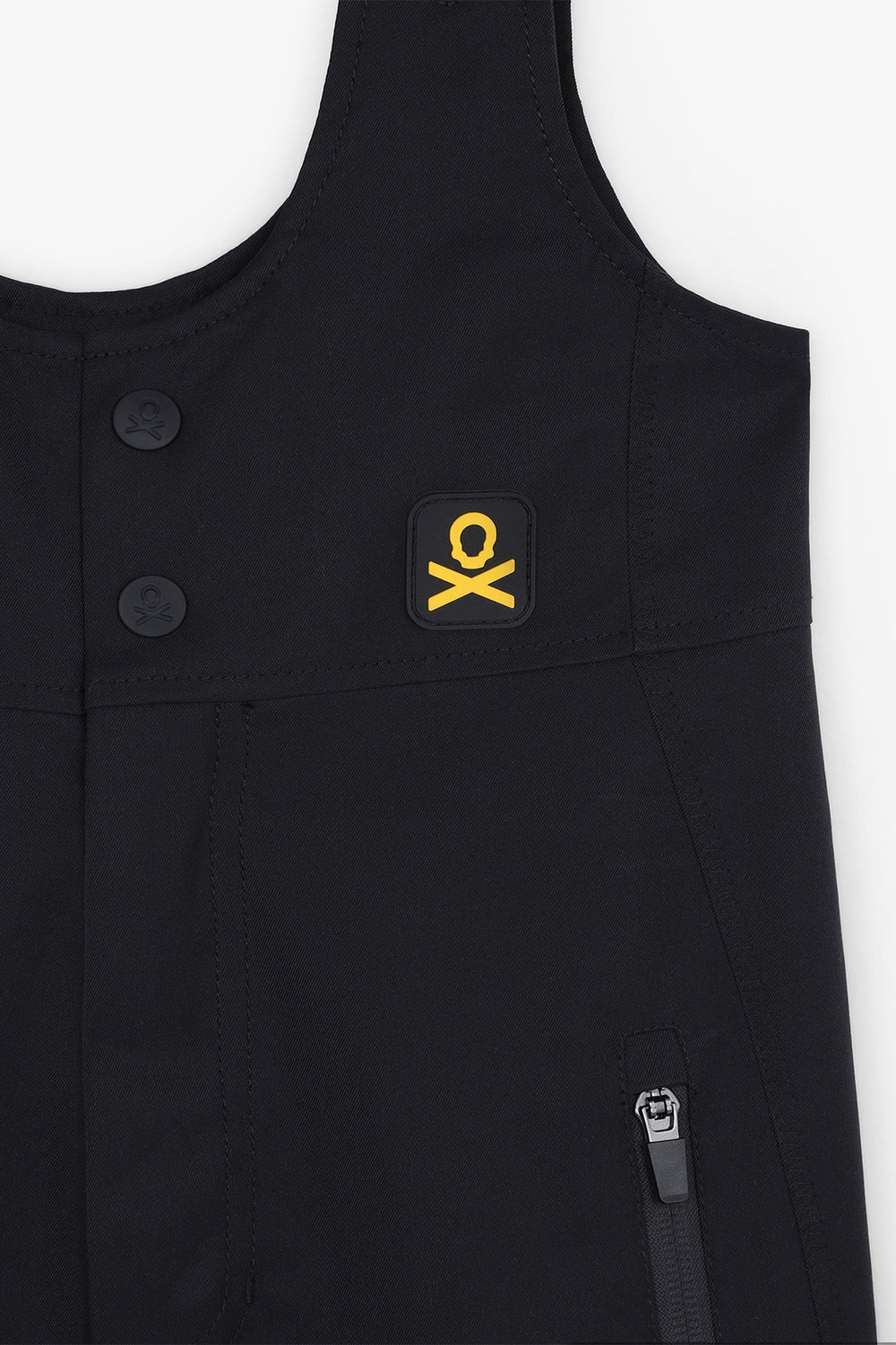 Ski overalls made of technical fabric. Slim fit with bootcut leg. Button and zip fastening. Elasticated and adjustable straps. Side zipped pockets. Thermosealed seams. Fleece lining. Metal hook for boots.