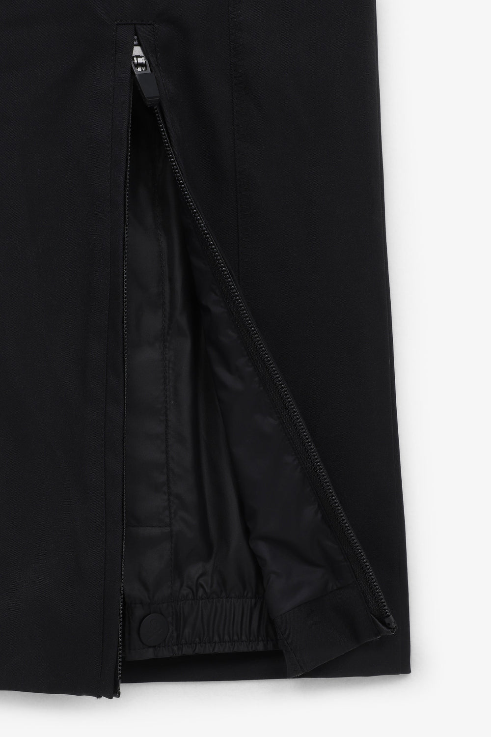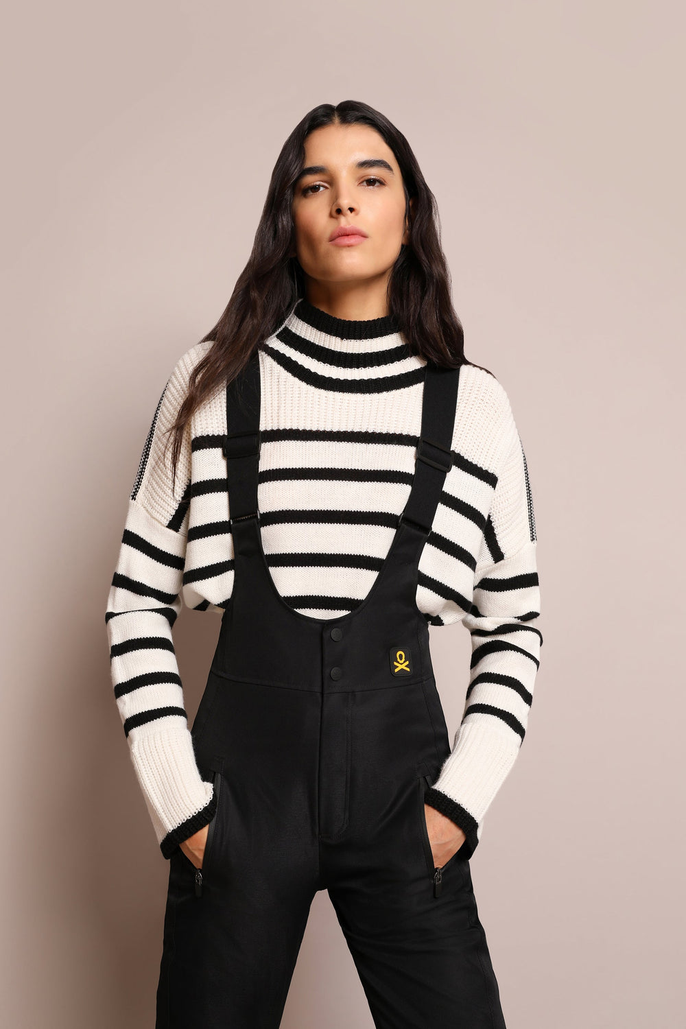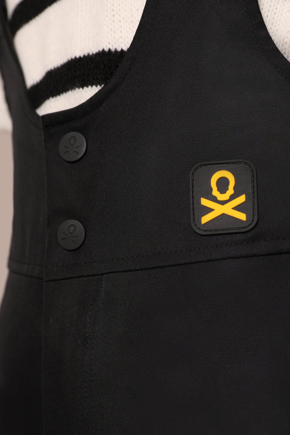 Ski overalls made of technical fabric. Slim fit with bootcut leg. Button and zip fastening. Elasticated and adjustable straps. Side zipped pockets. Thermosealed seams. Fleece lining. Metal hook for boots.