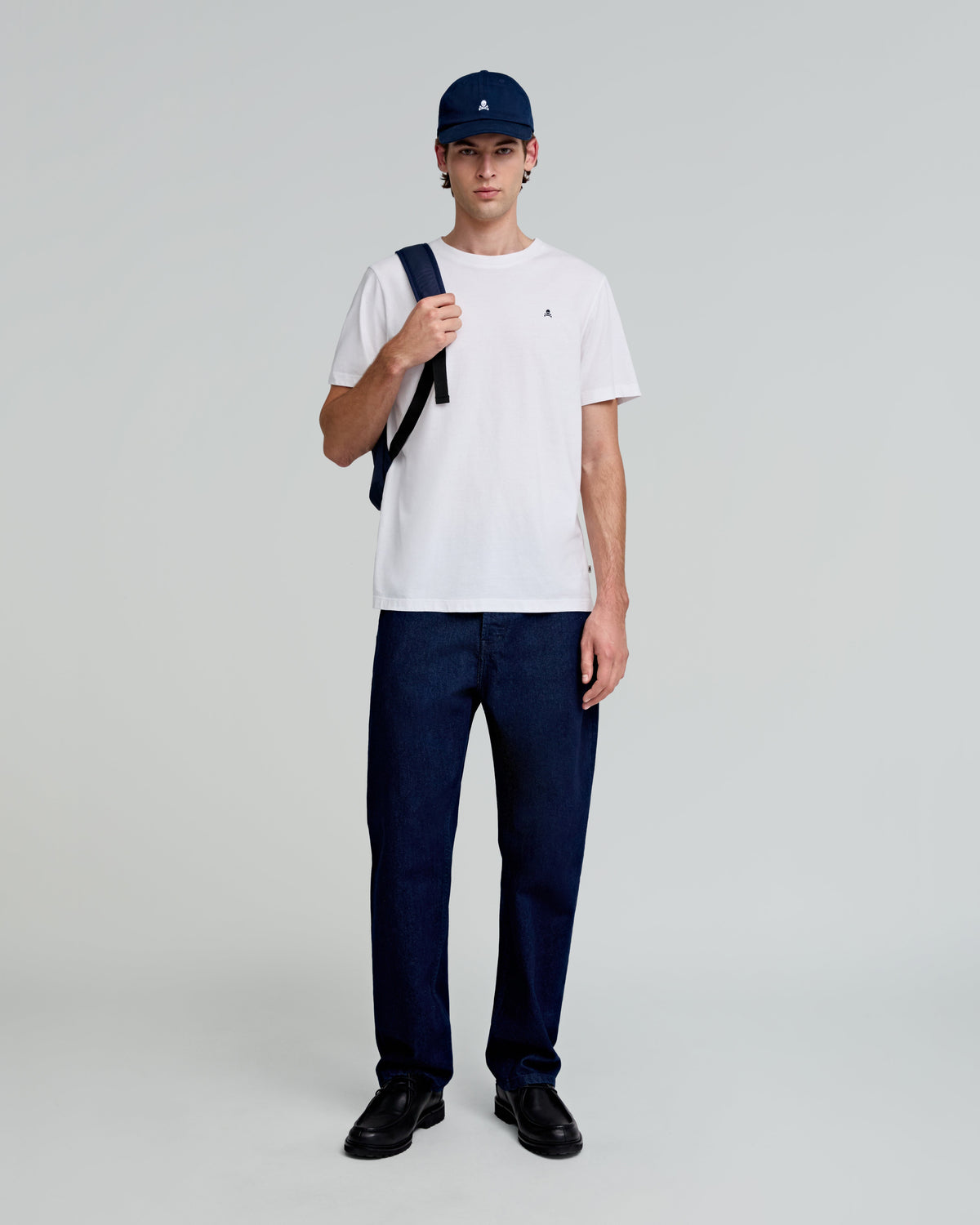 Cap with contrast embroidered skull detail. Made of 100% cotton. Adjustable back fastening.