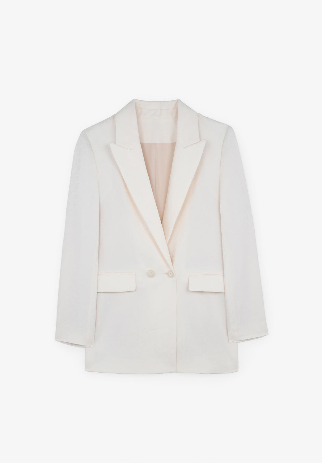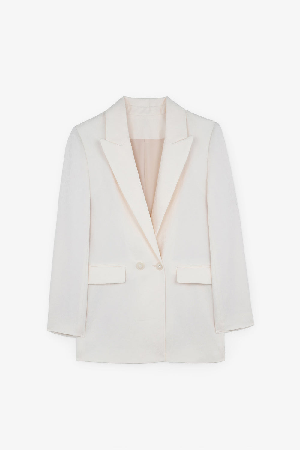 Blazer with jacquard, made of a loose-fitting fabric. Regular fit, peaked lapel collar and double-breasted button fastening. Long sleeves and side pocket with flap.
