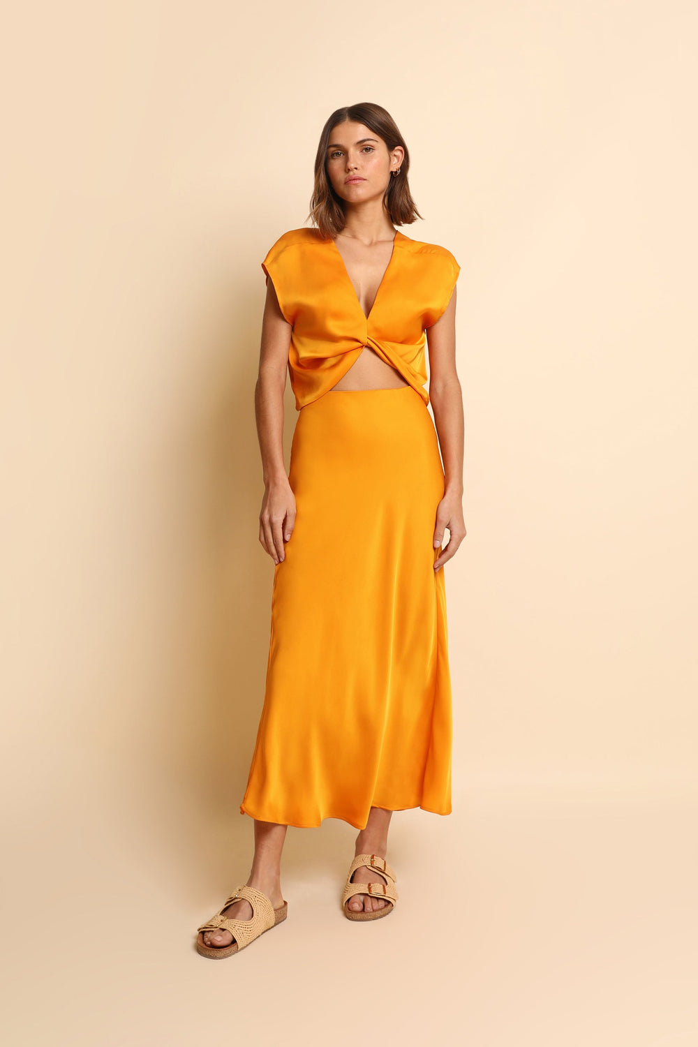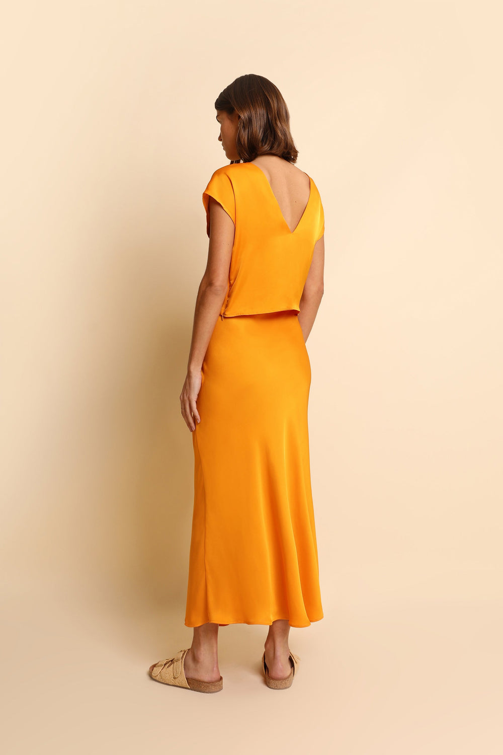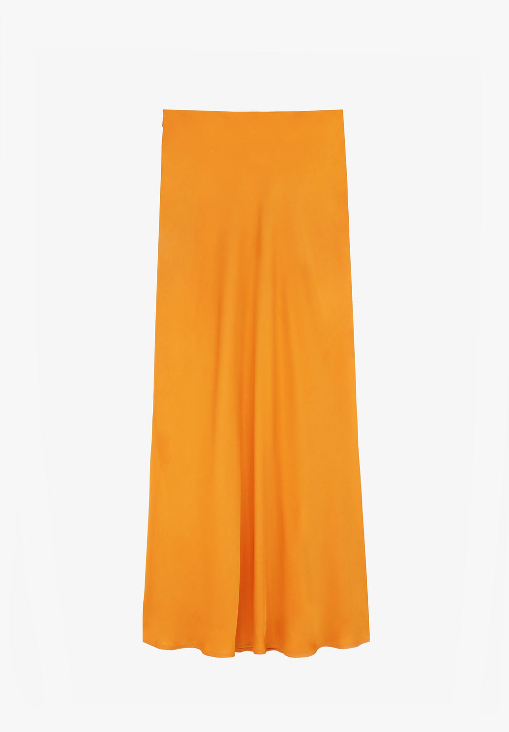 Satin midi skirt made from recycled polyester. Regular fit and zip fastening.