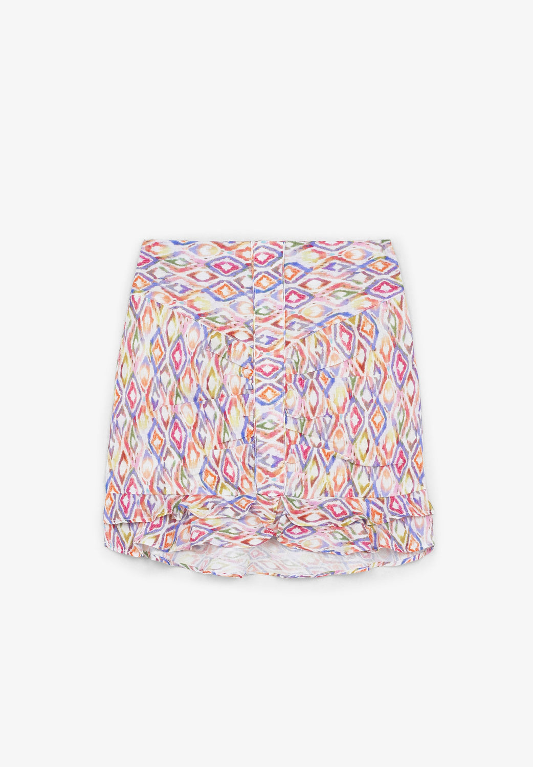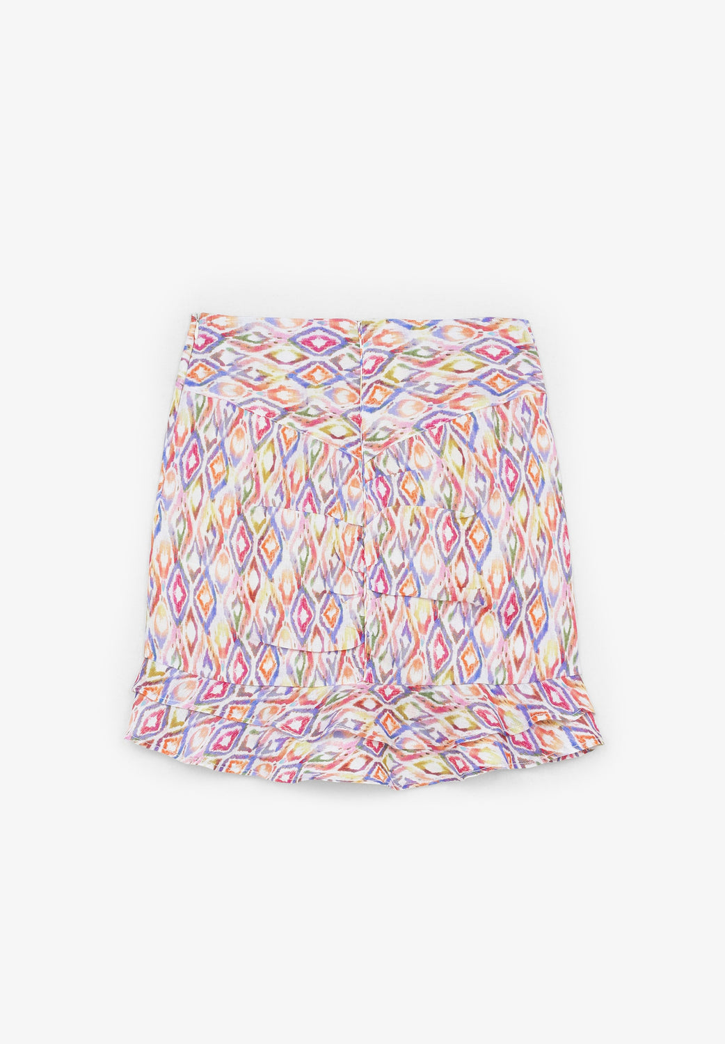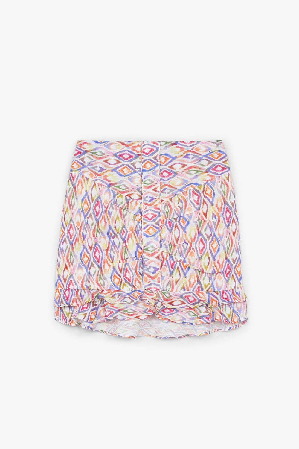 Skirt with ethic motif, made of 100% linen. Slim fit, zip fastening and ruffled hem.