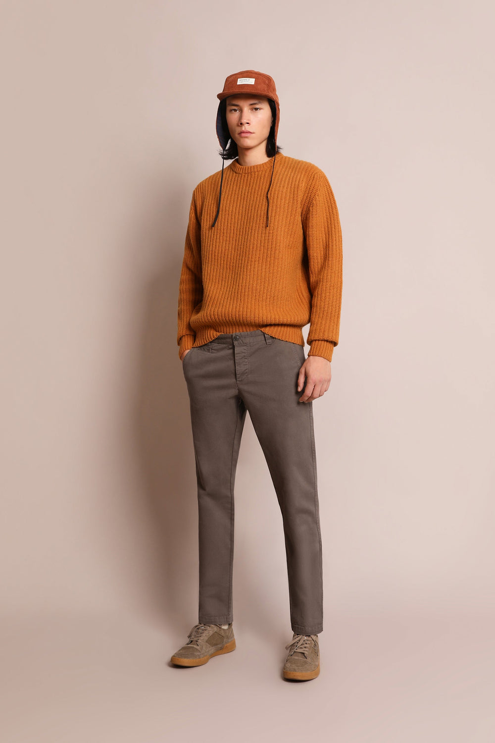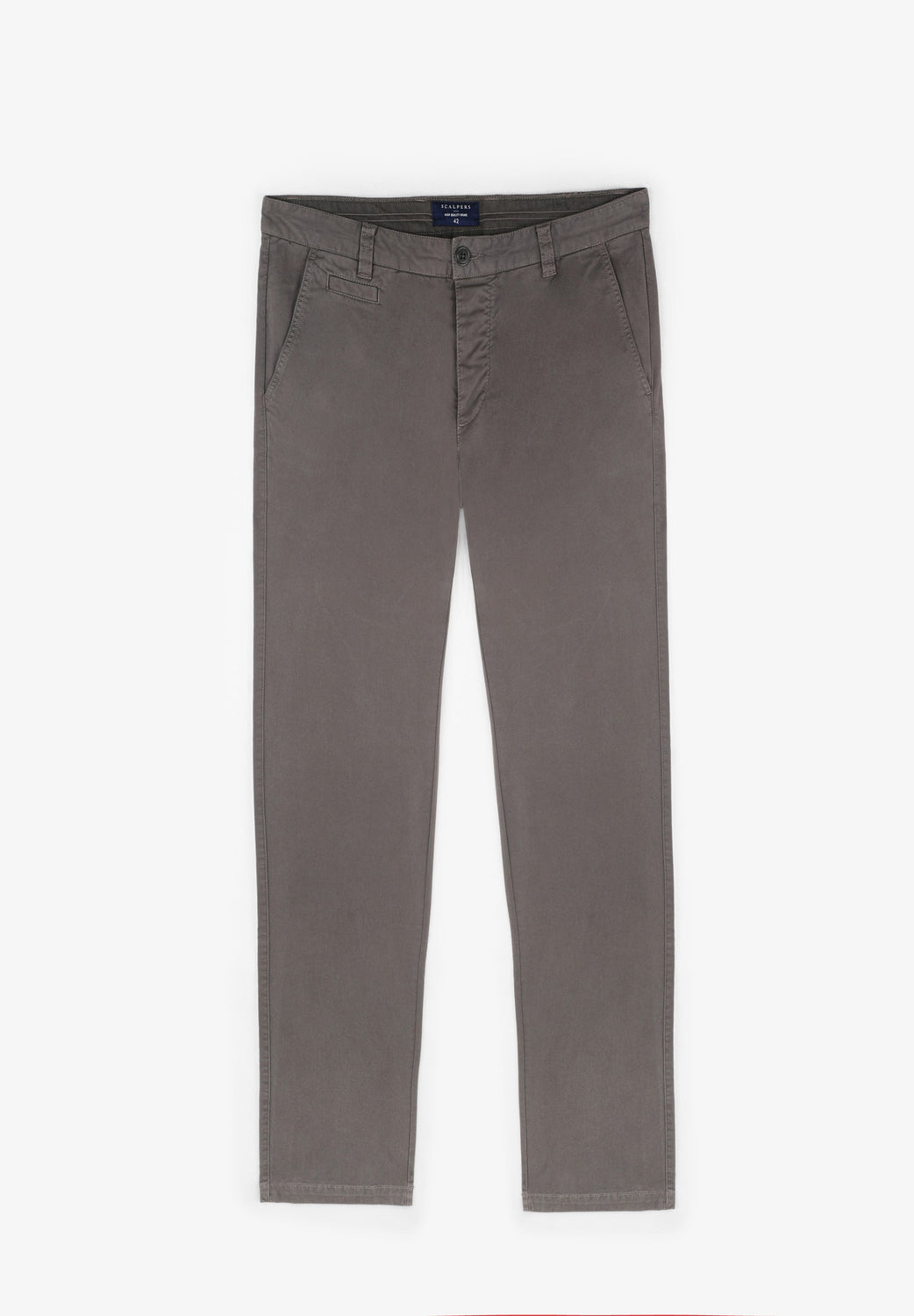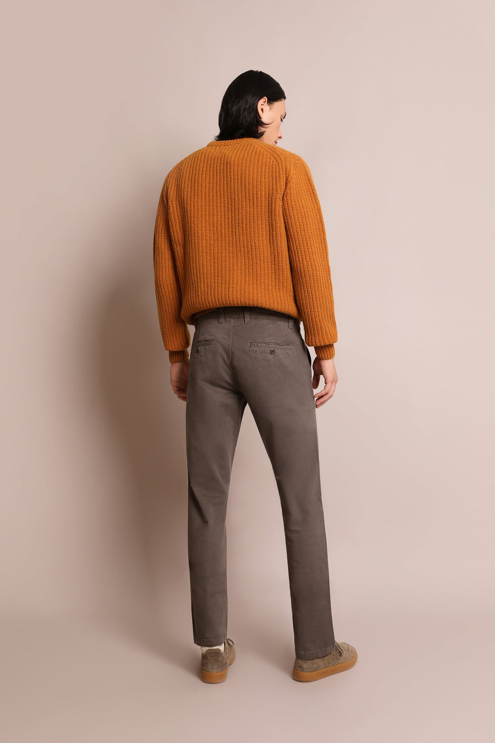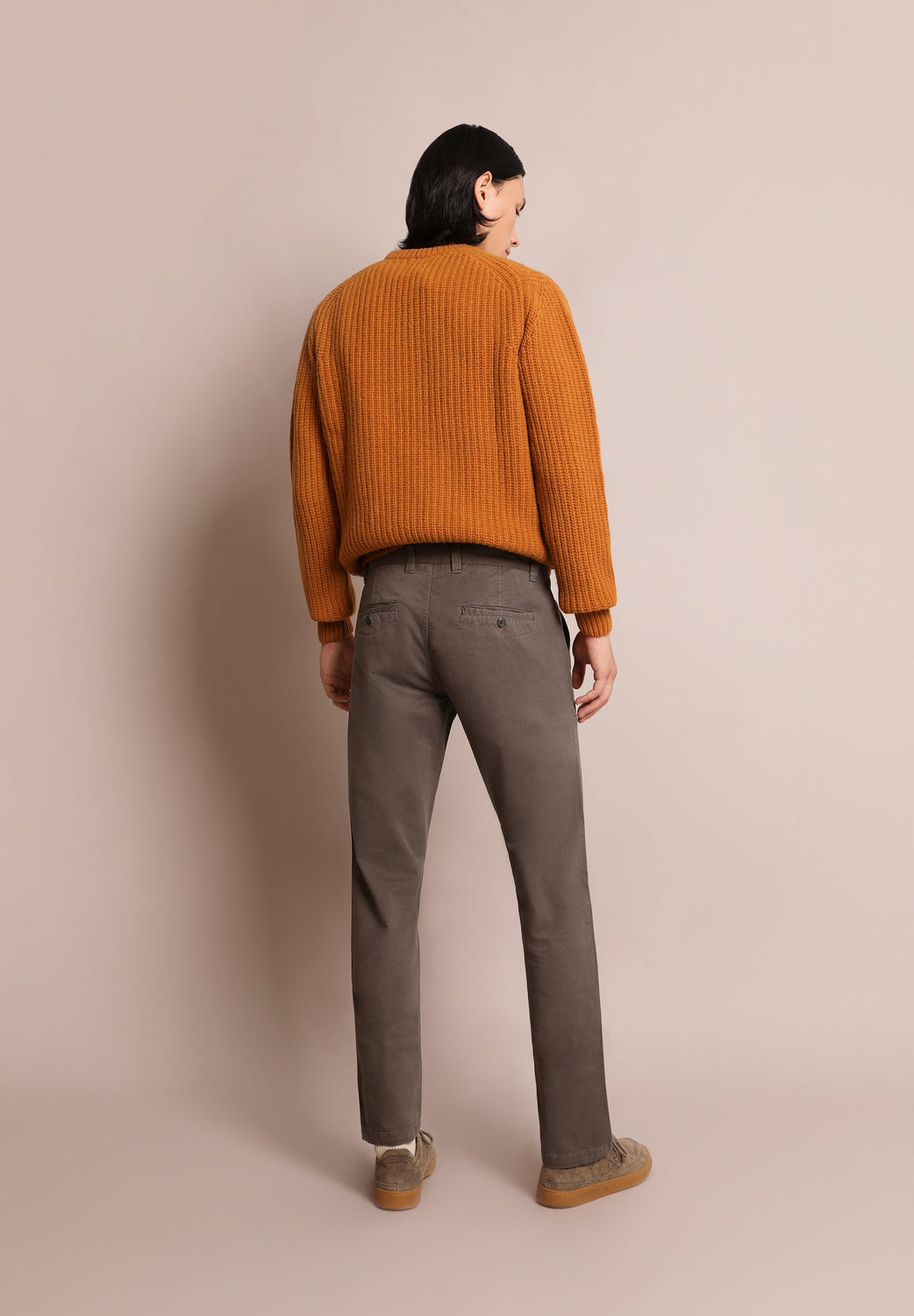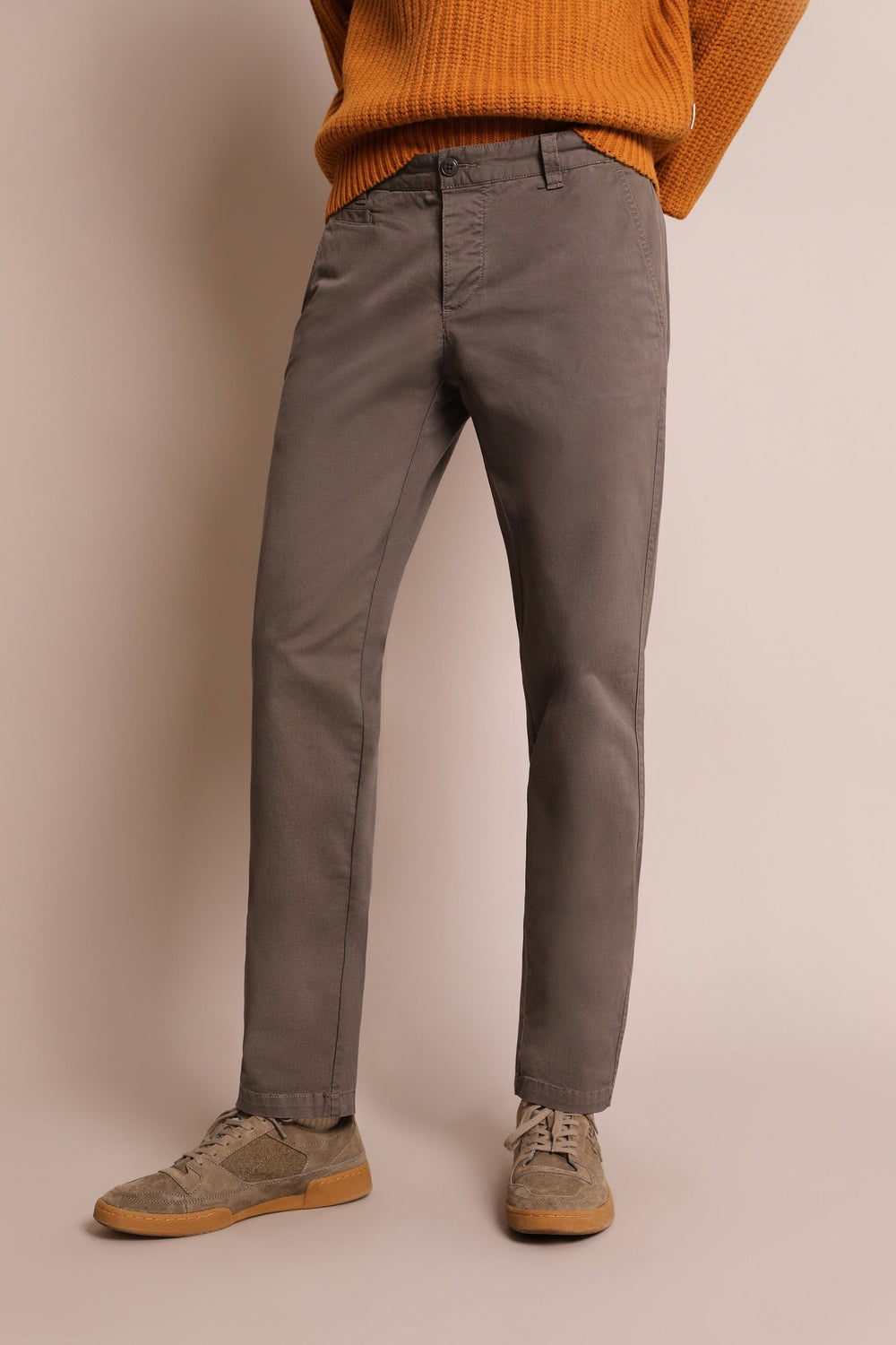 Chino trousers. Made from slightly stretchy BCI cotton, regular fit, button and zip fastening, side pockets and belt loops at the waist