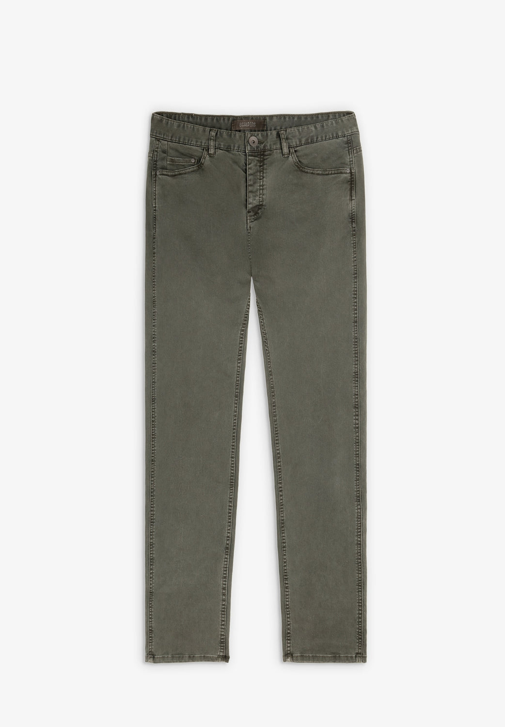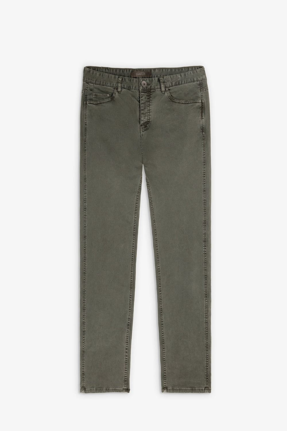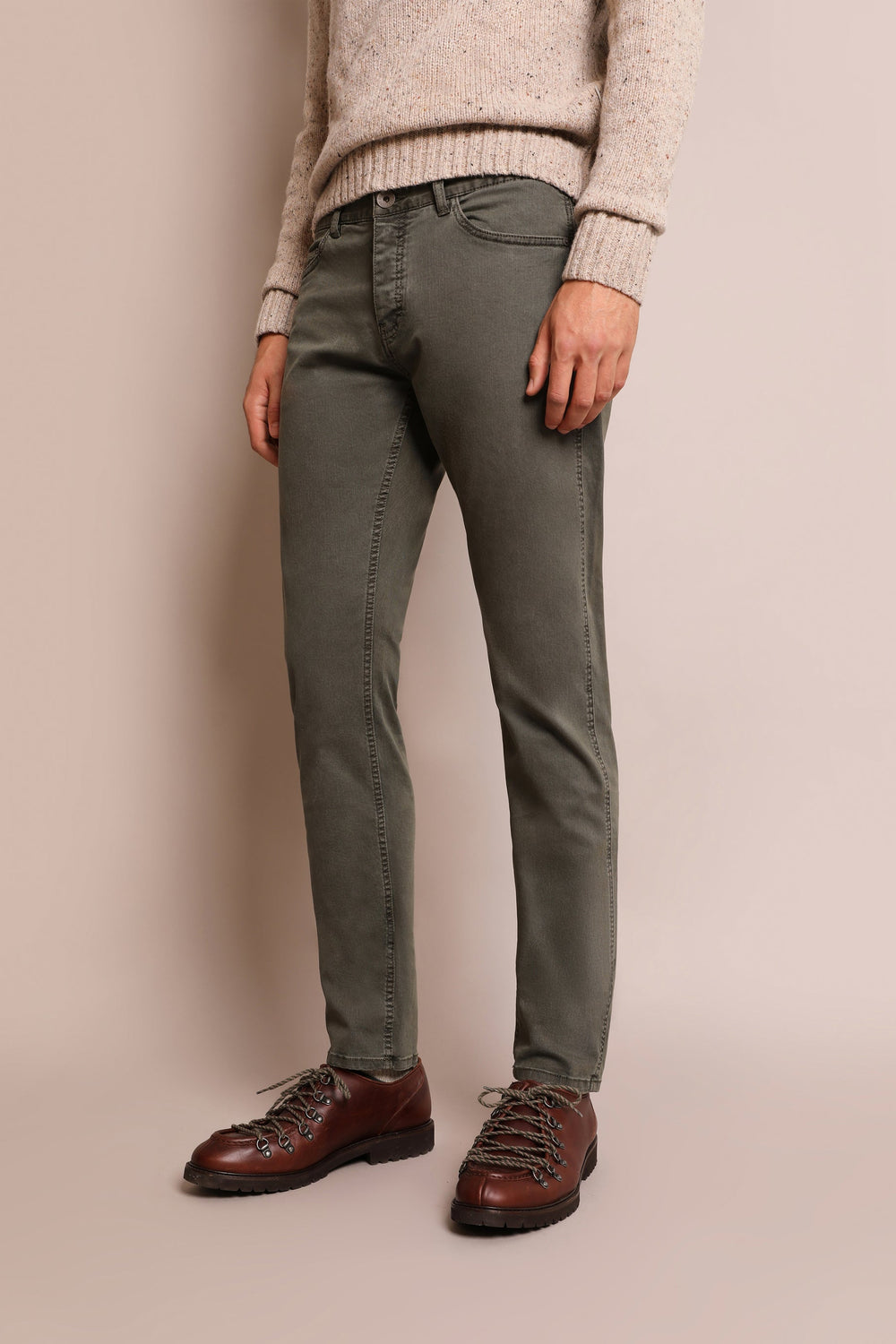 Five-pocket trousers. Made from slightly stretchy BCI cotton, regular fit, button and zip fastening, back and side pockets and belt loops at the waist