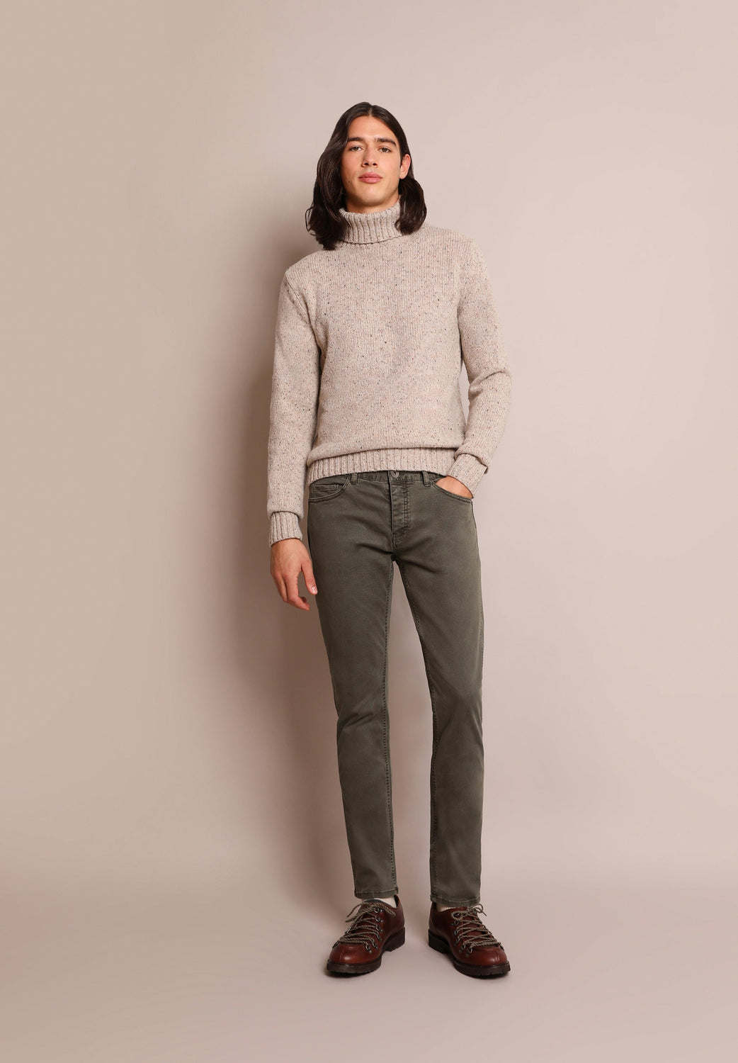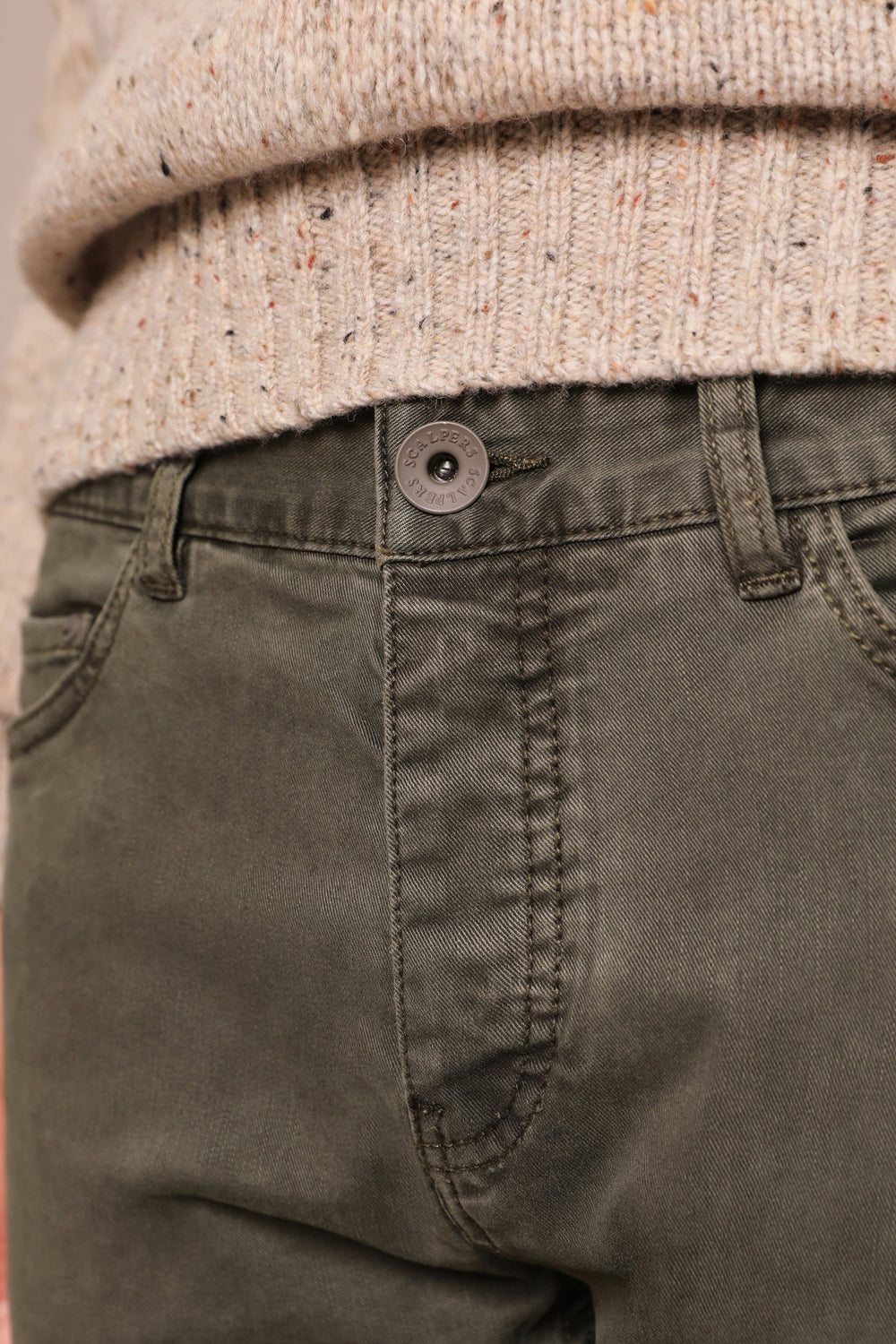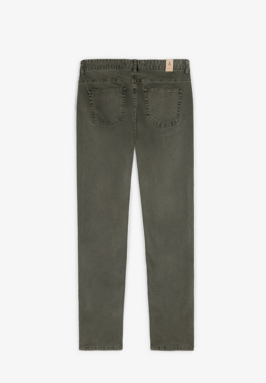 Five-pocket trousers. Made from slightly stretchy BCI cotton, regular fit, button and zip fastening, back and side pockets and belt loops at the waist