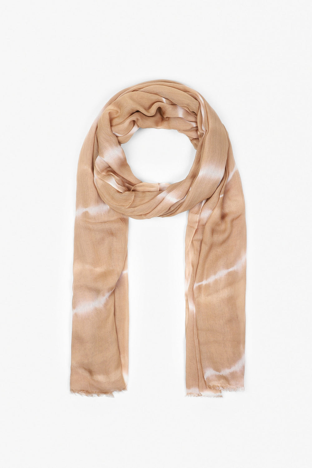 Tie-dye scarf. Made of a silk blend. Frayed hems.