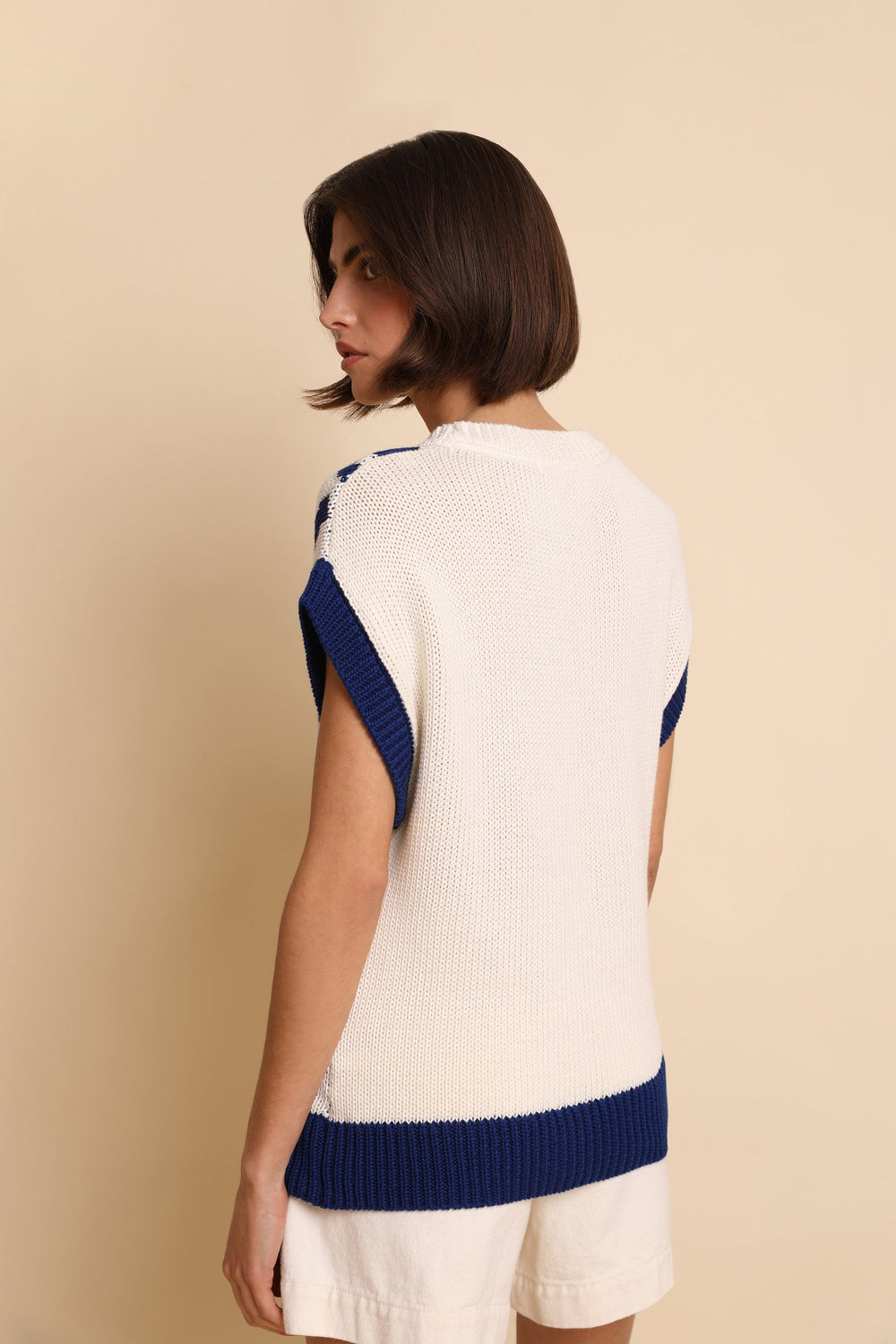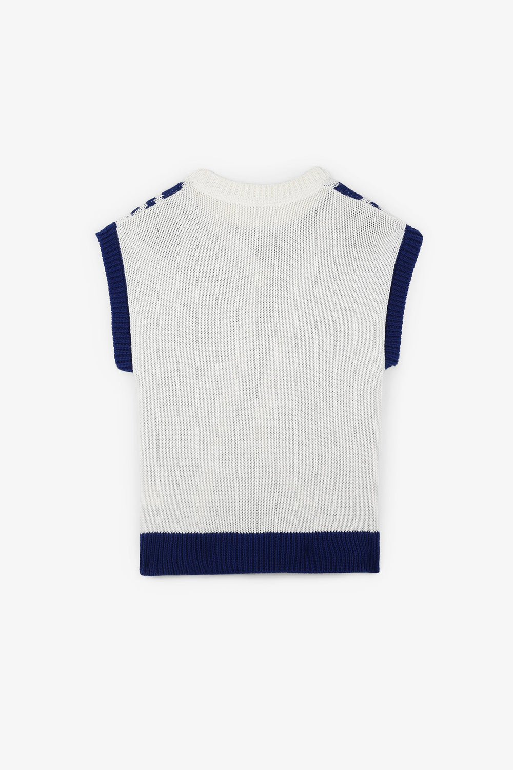 Knit vest with motif. Regular fit, round neck and sleeveless. Ribbed detail.