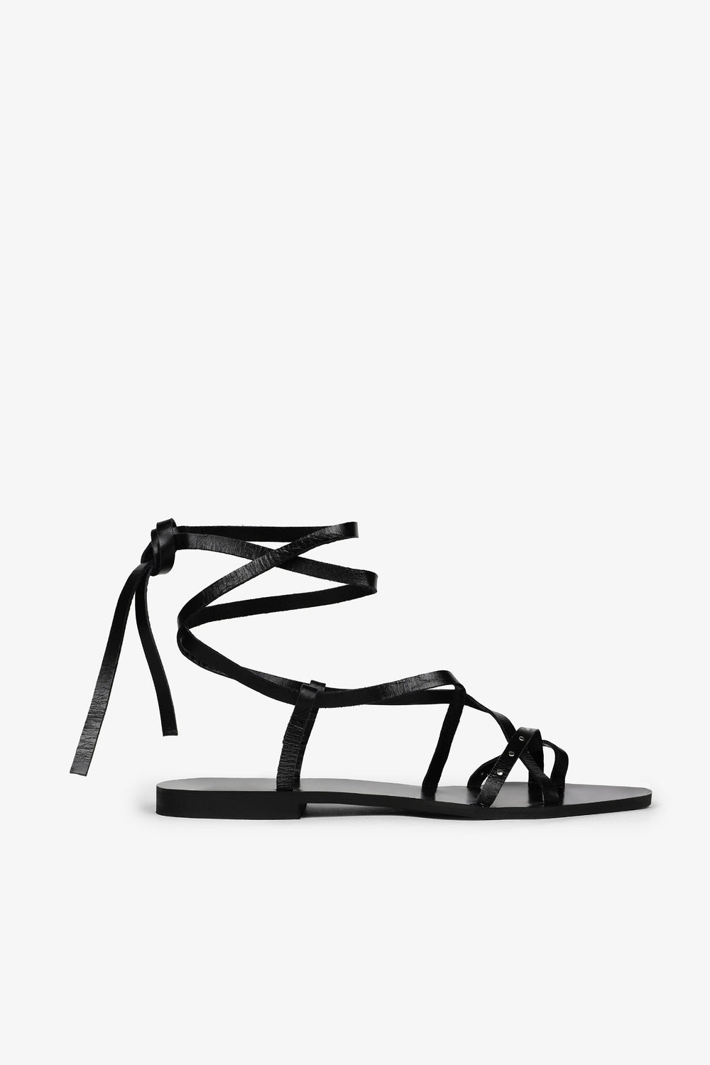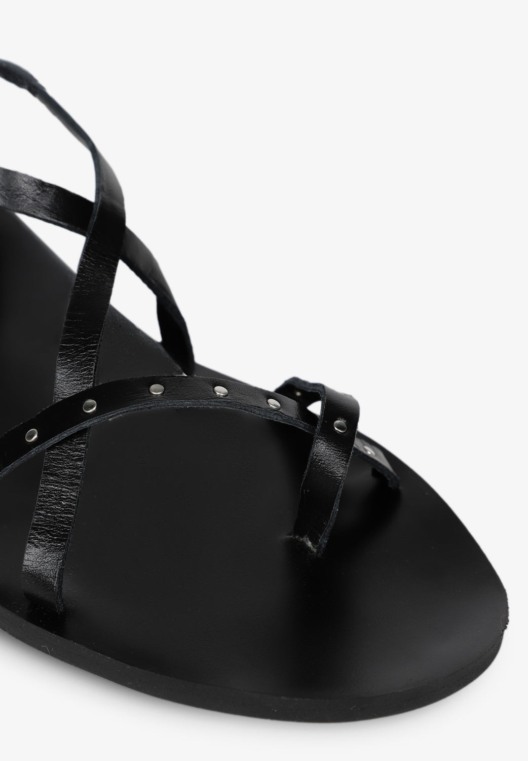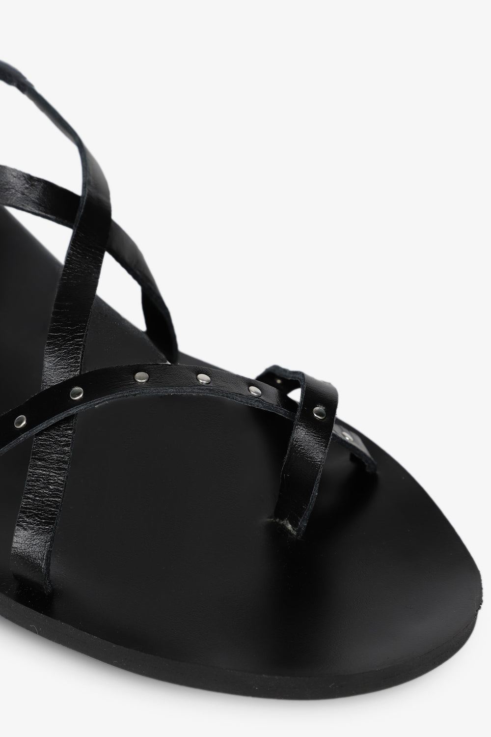 Strappy 100% leather sandals. Rubber sole and adjustable ankle straps. Metal stud detail.