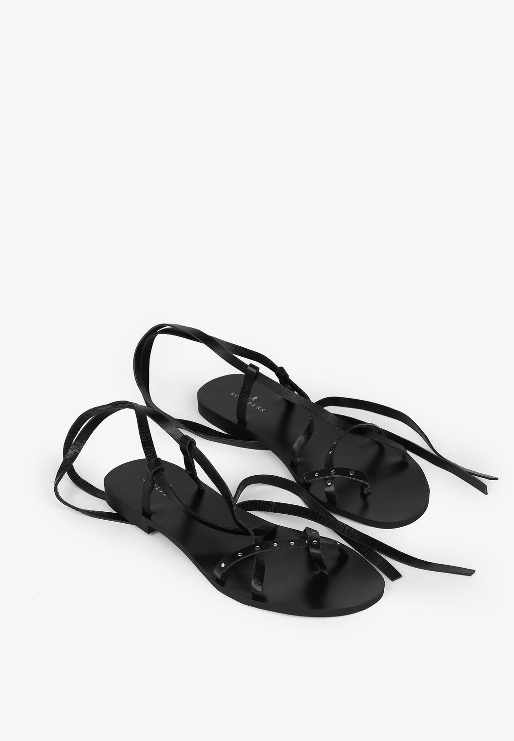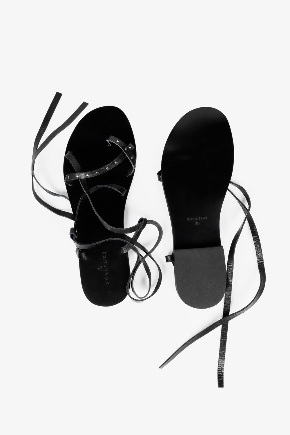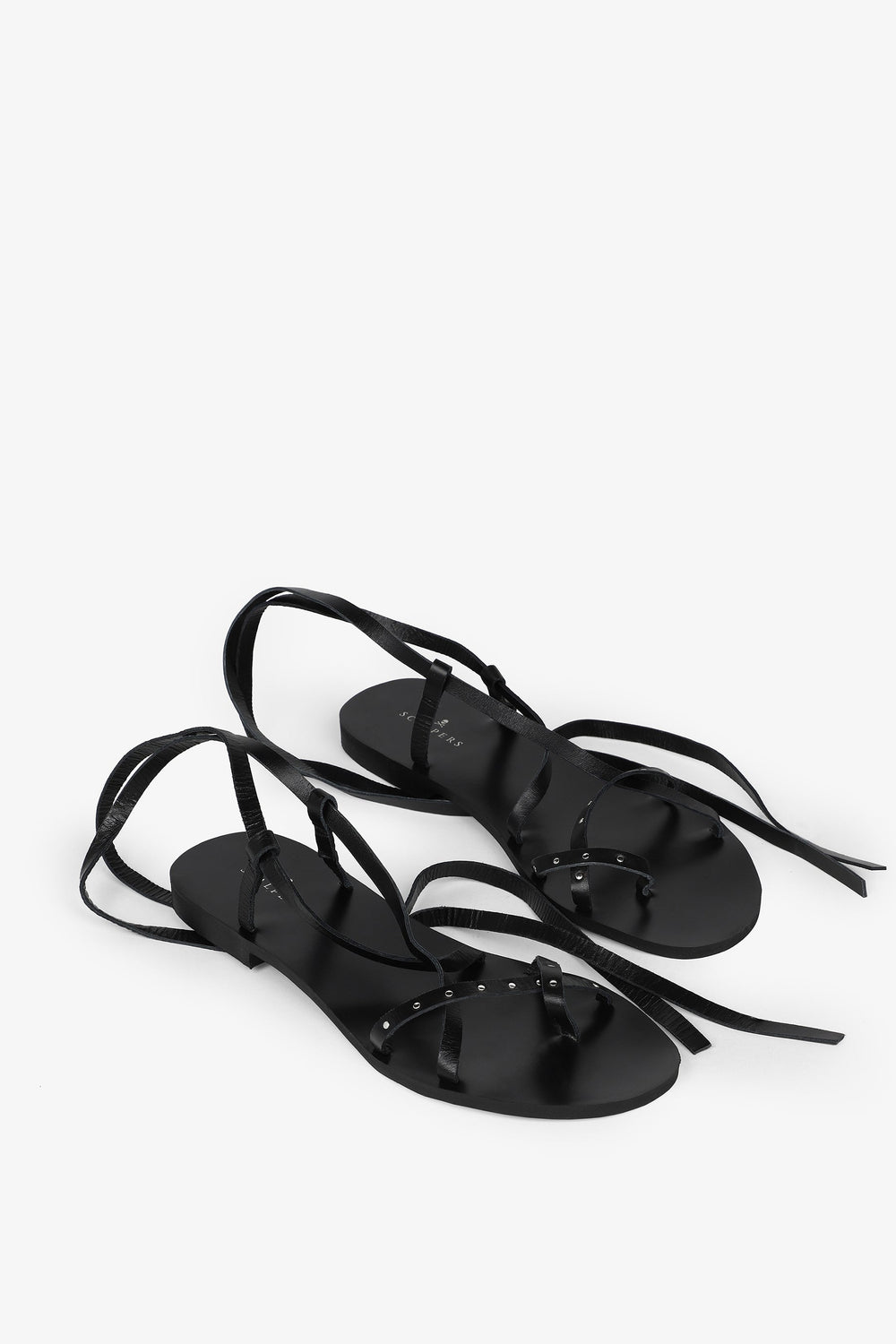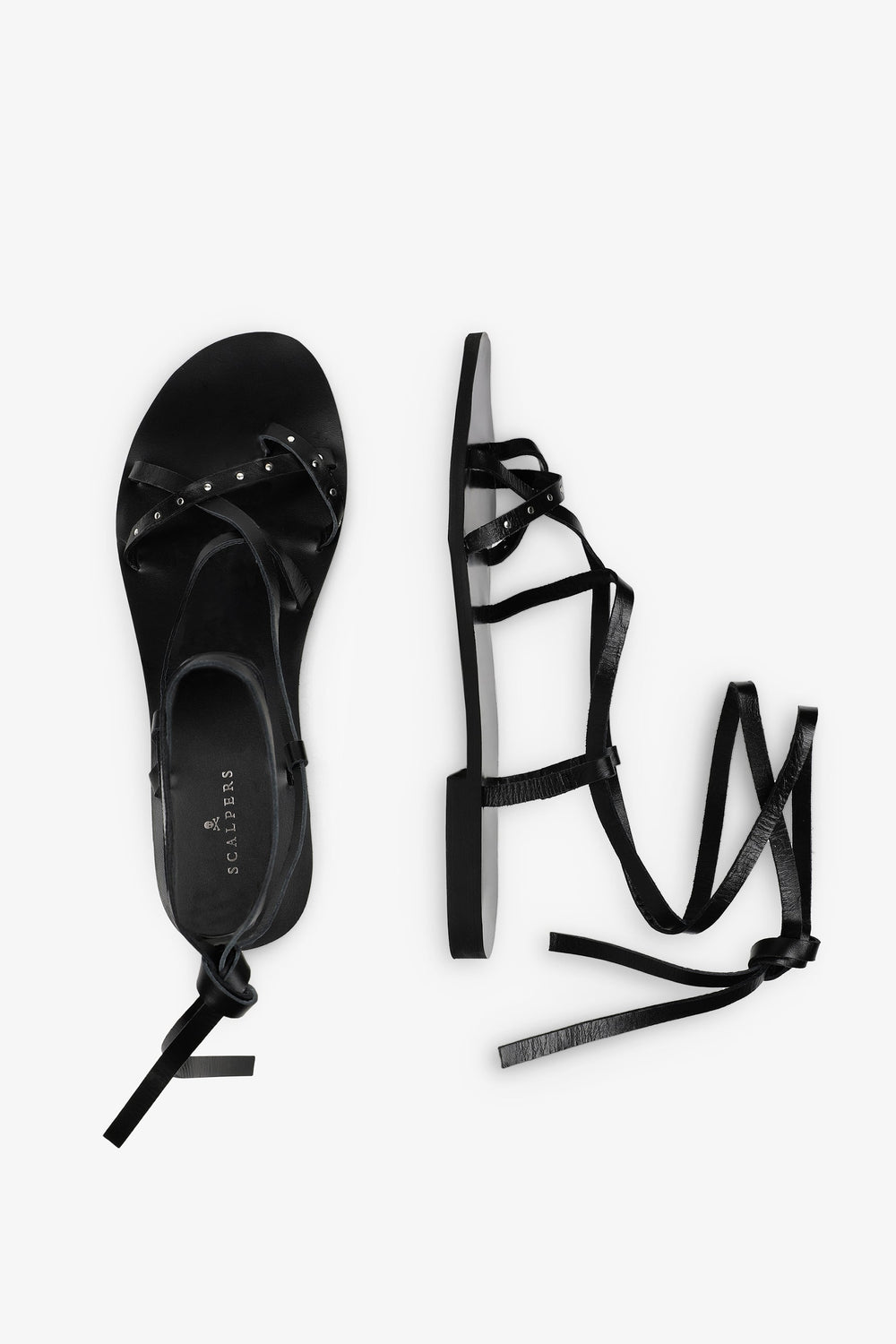 Strappy 100% leather sandals. Rubber sole and adjustable ankle straps. Metal stud detail.