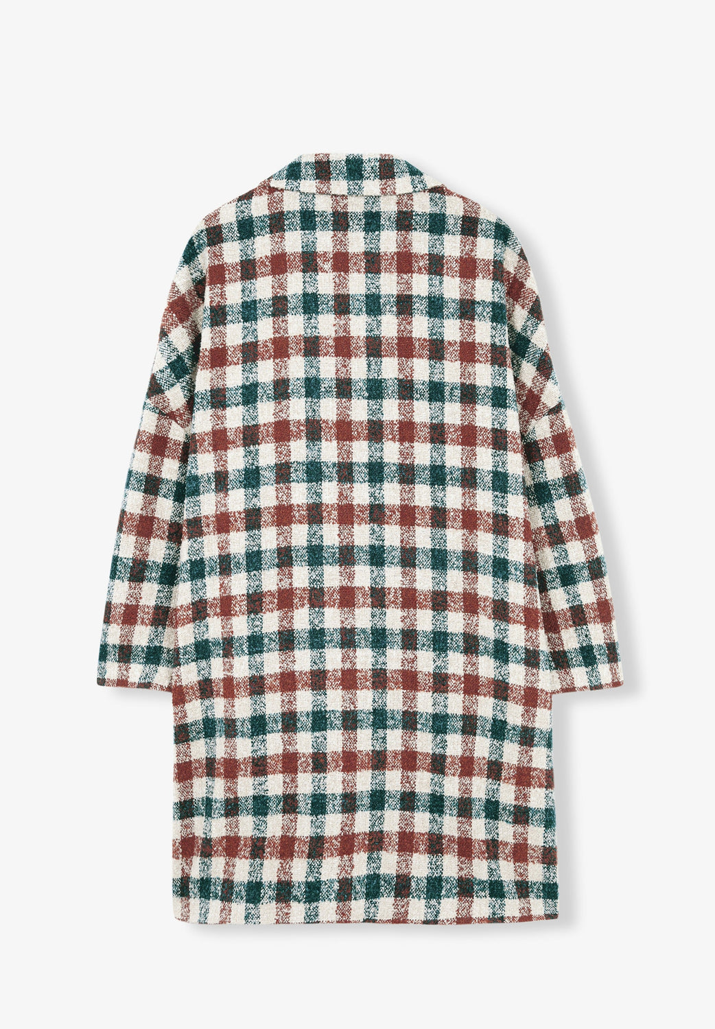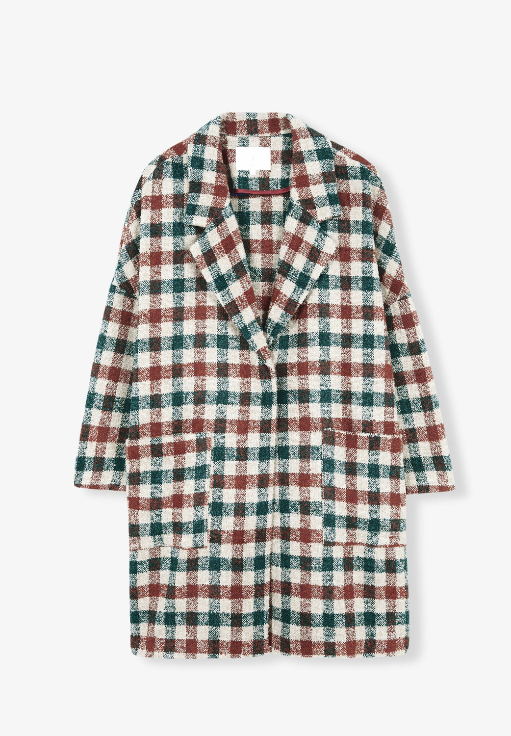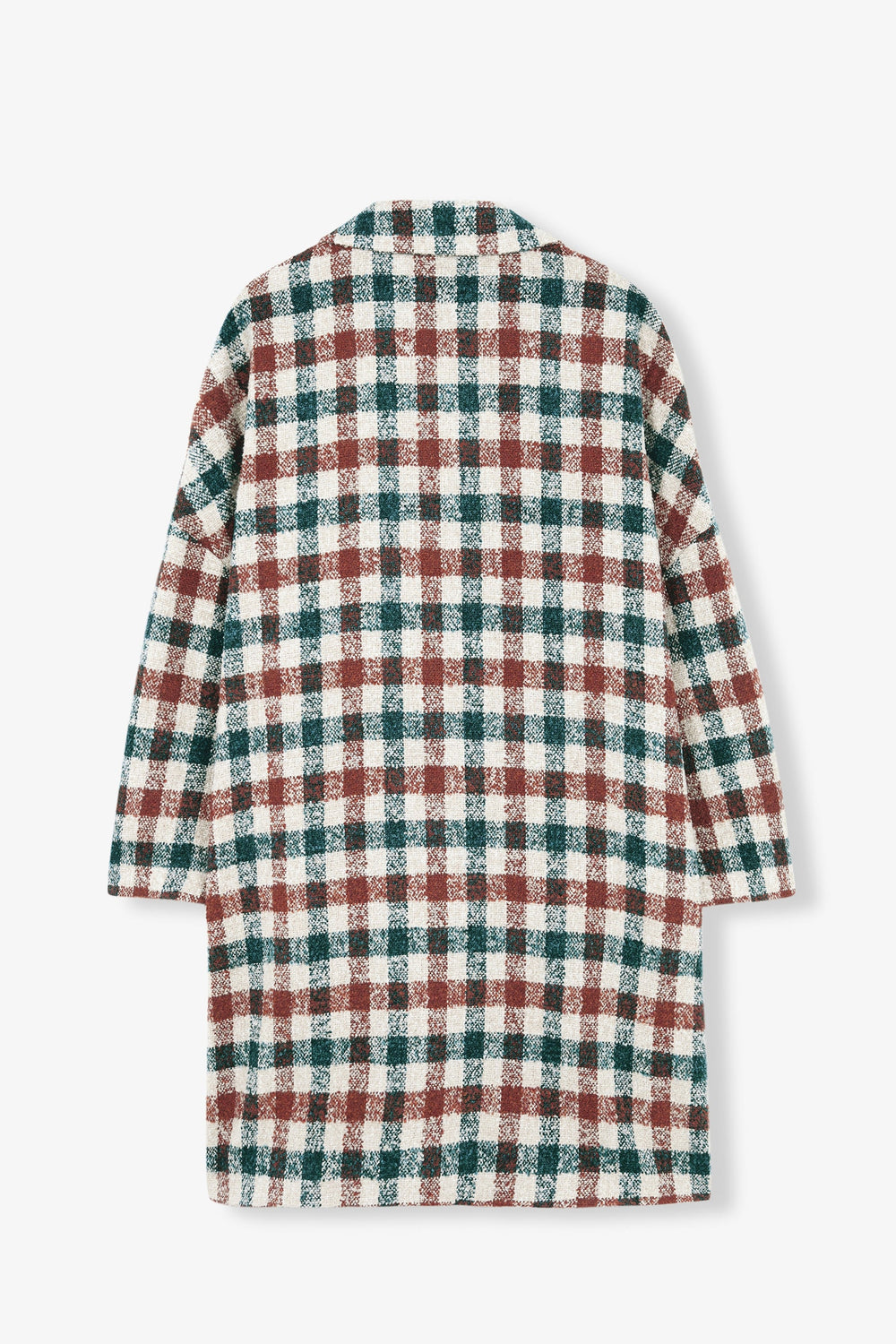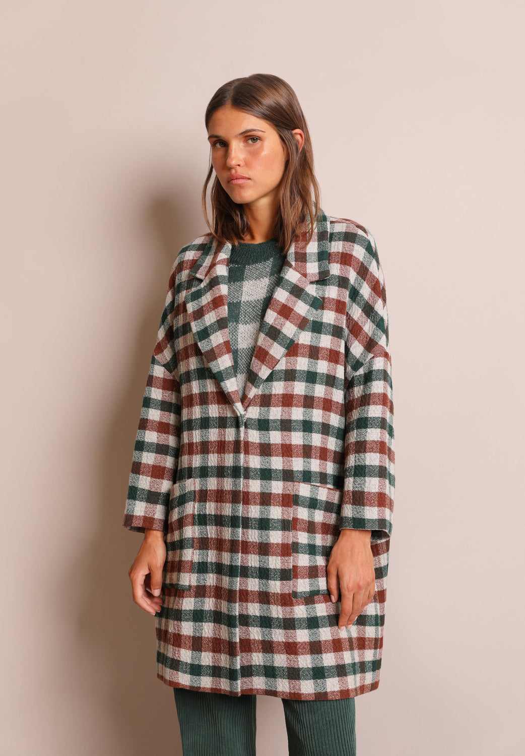 Check cloth midi coat made of a wool and cotton blend. Regular fit, notched lapel collar and snap button fastening. Long sleeves and patch pockets.
