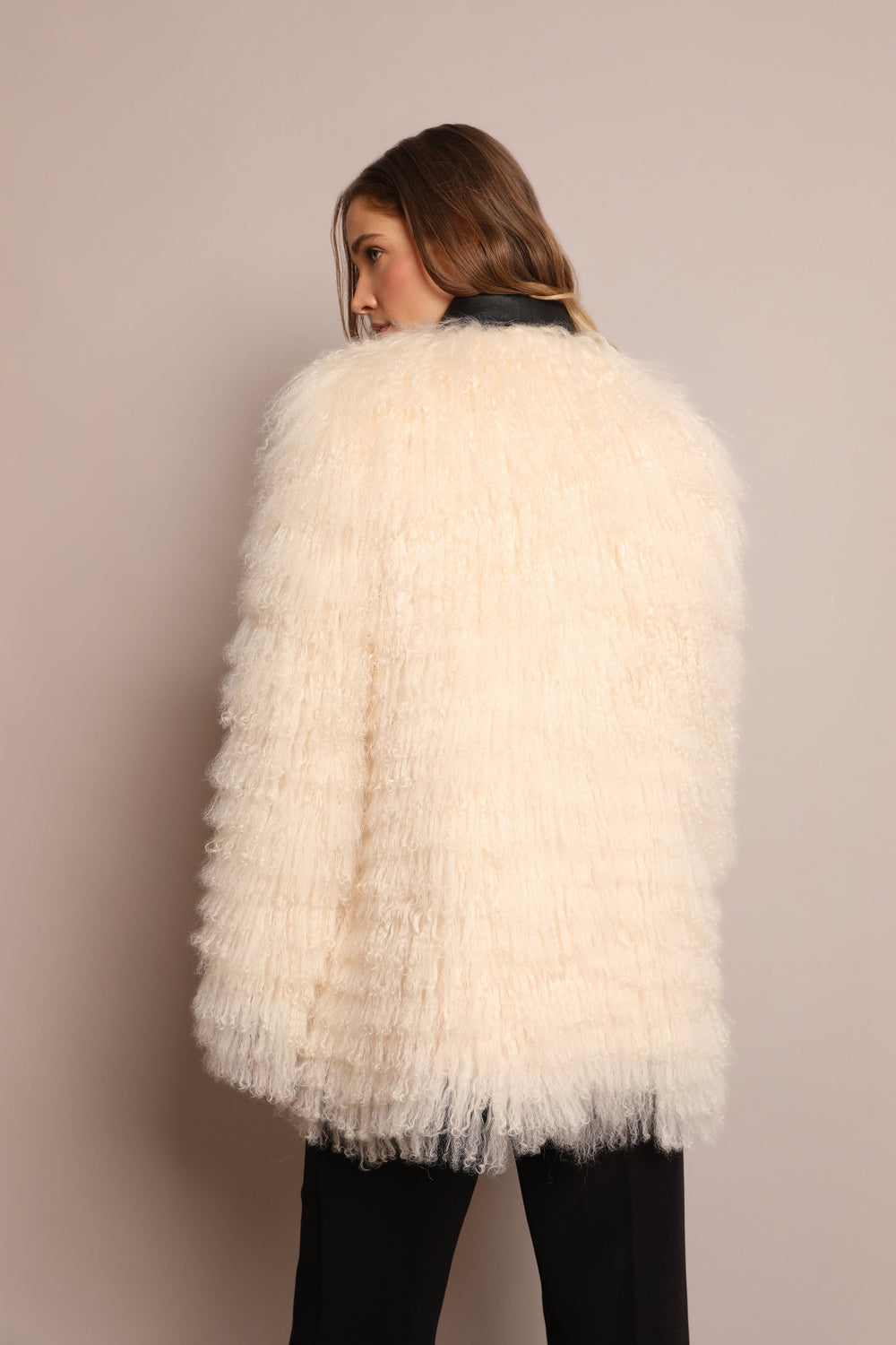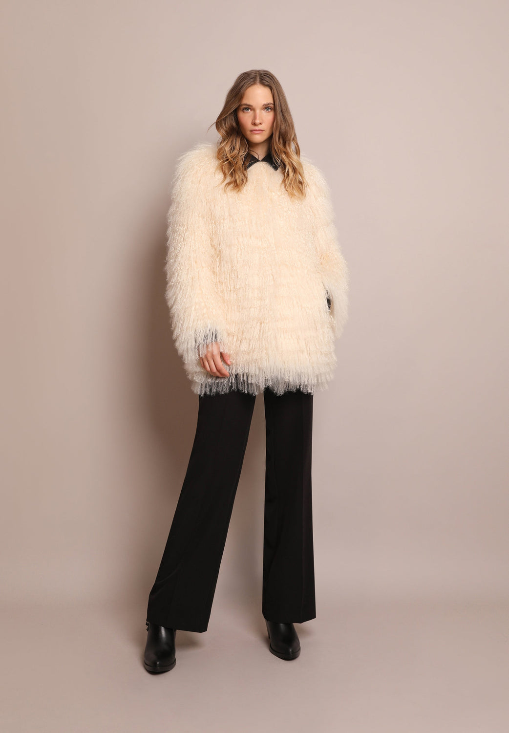 Premium fur coat made of 100% leather. Regular fit, round neck and long sleeves.