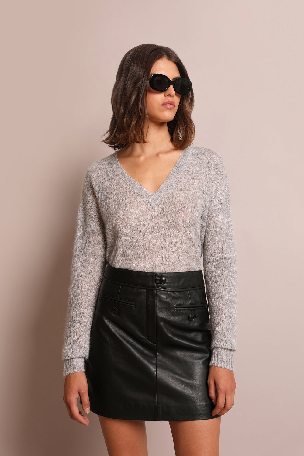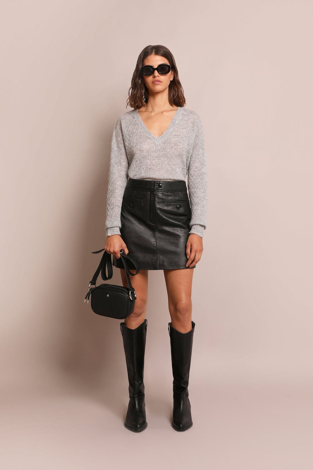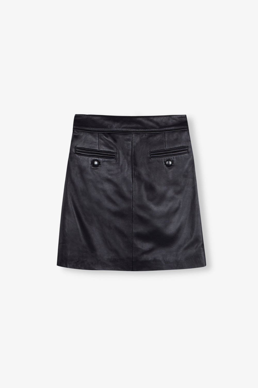 Mini skirt made of 100% leather. Regular fit, button and zip fastening and front pockets.