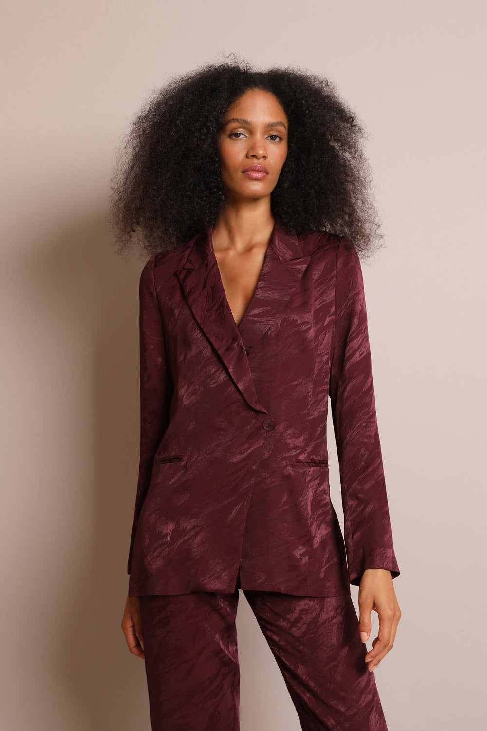 Blazer made from loose-fitting jacquard fabric. Regular fit, lapel collar and double-breasted button fastening. Jetted pockets and long sleeves.