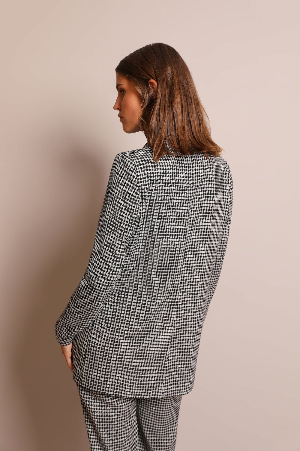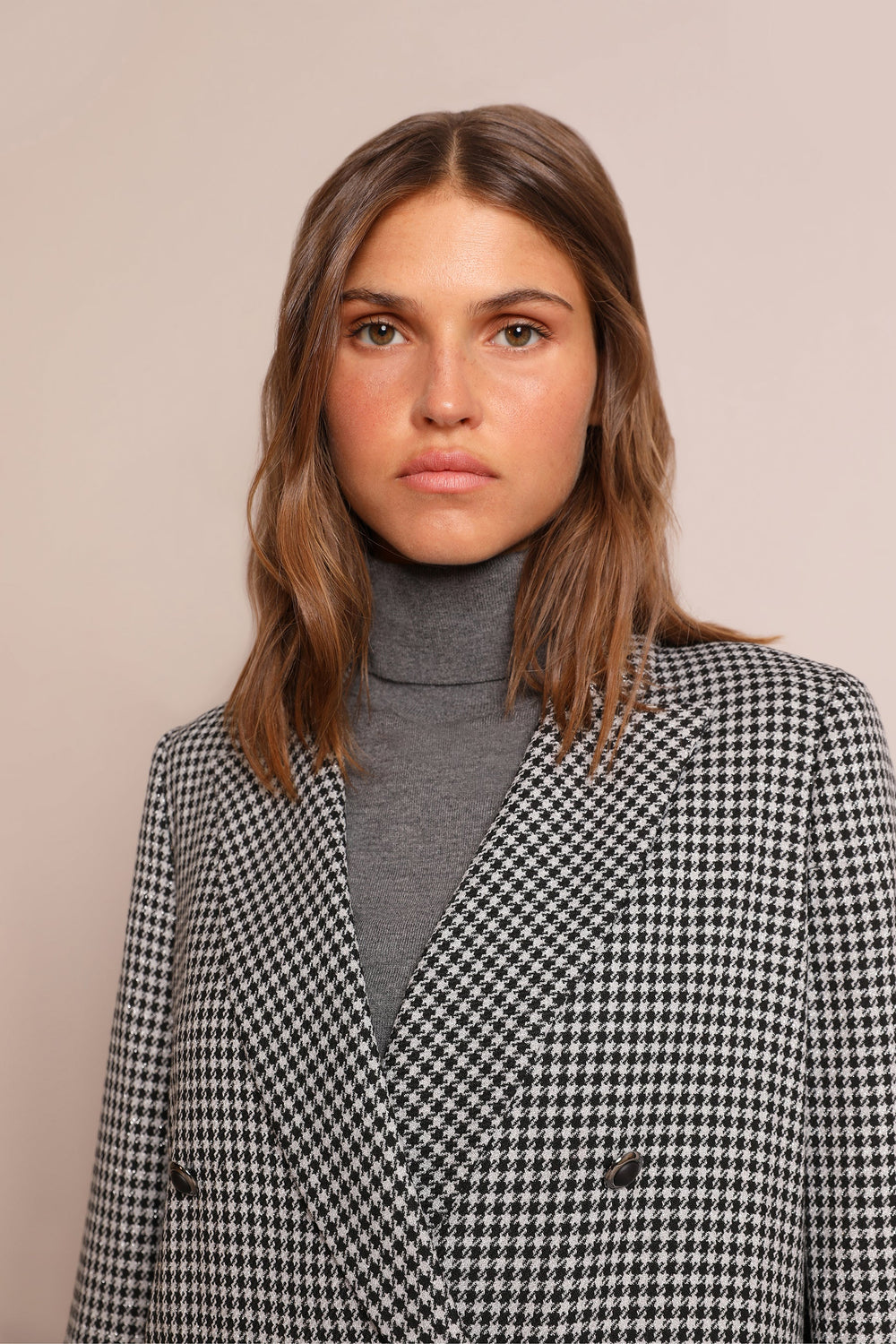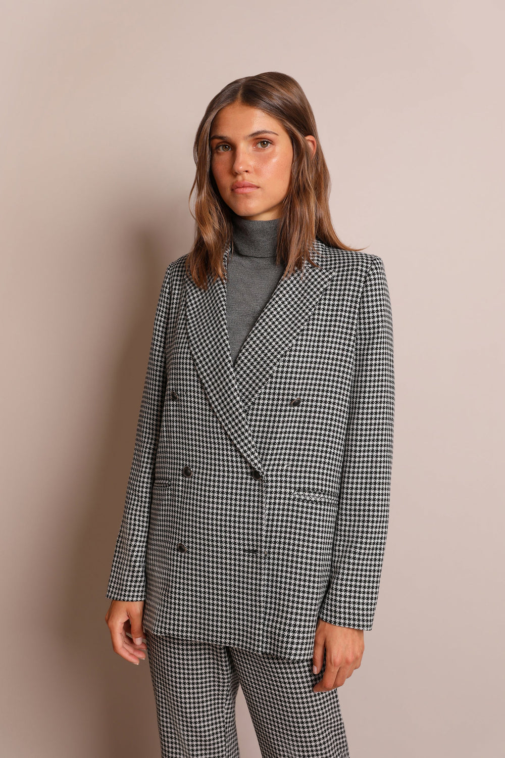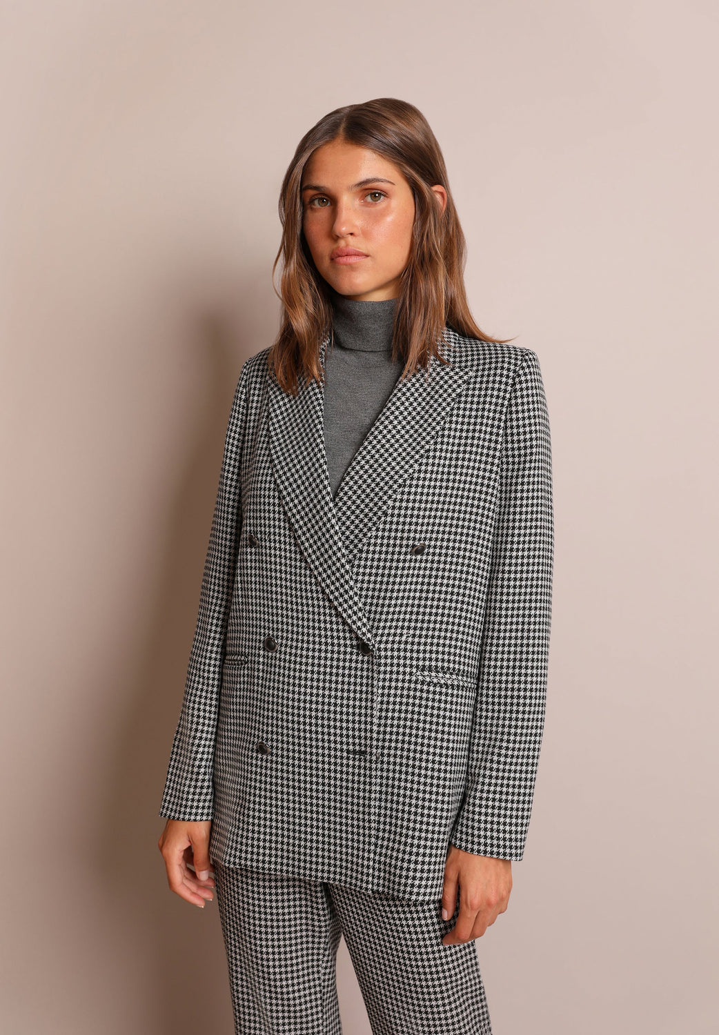 DOUBLE-BREASTED BLAZER WITH METALLIC CHECK PRINT