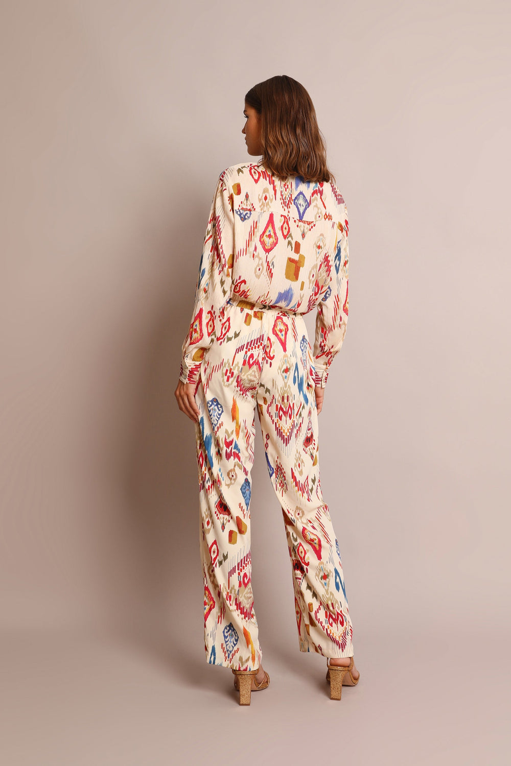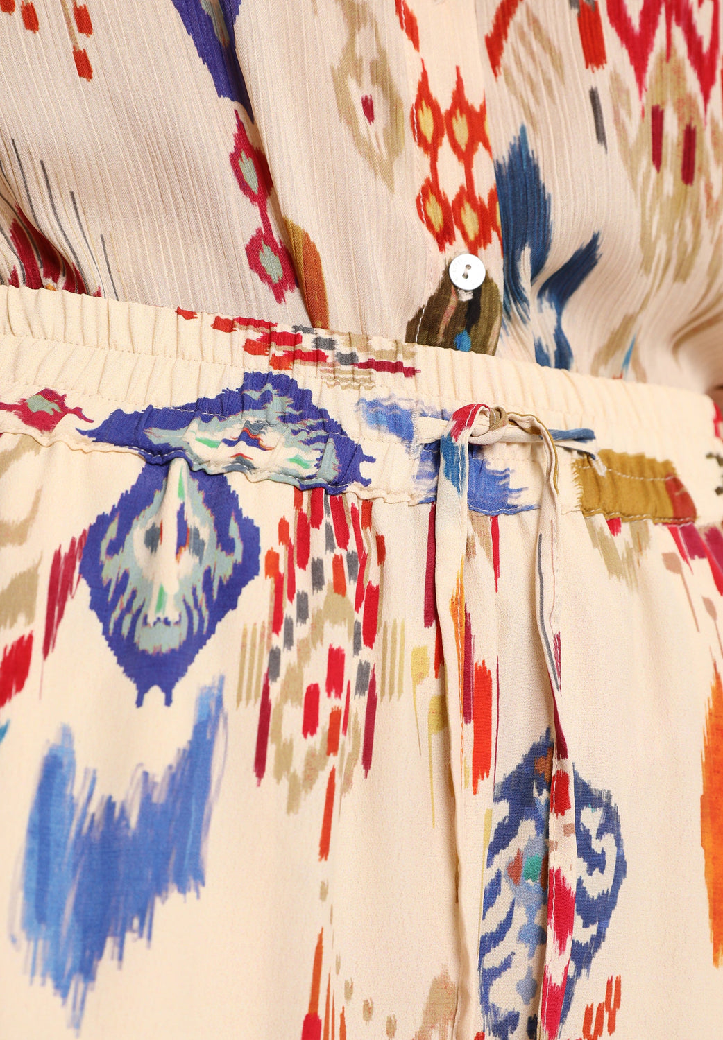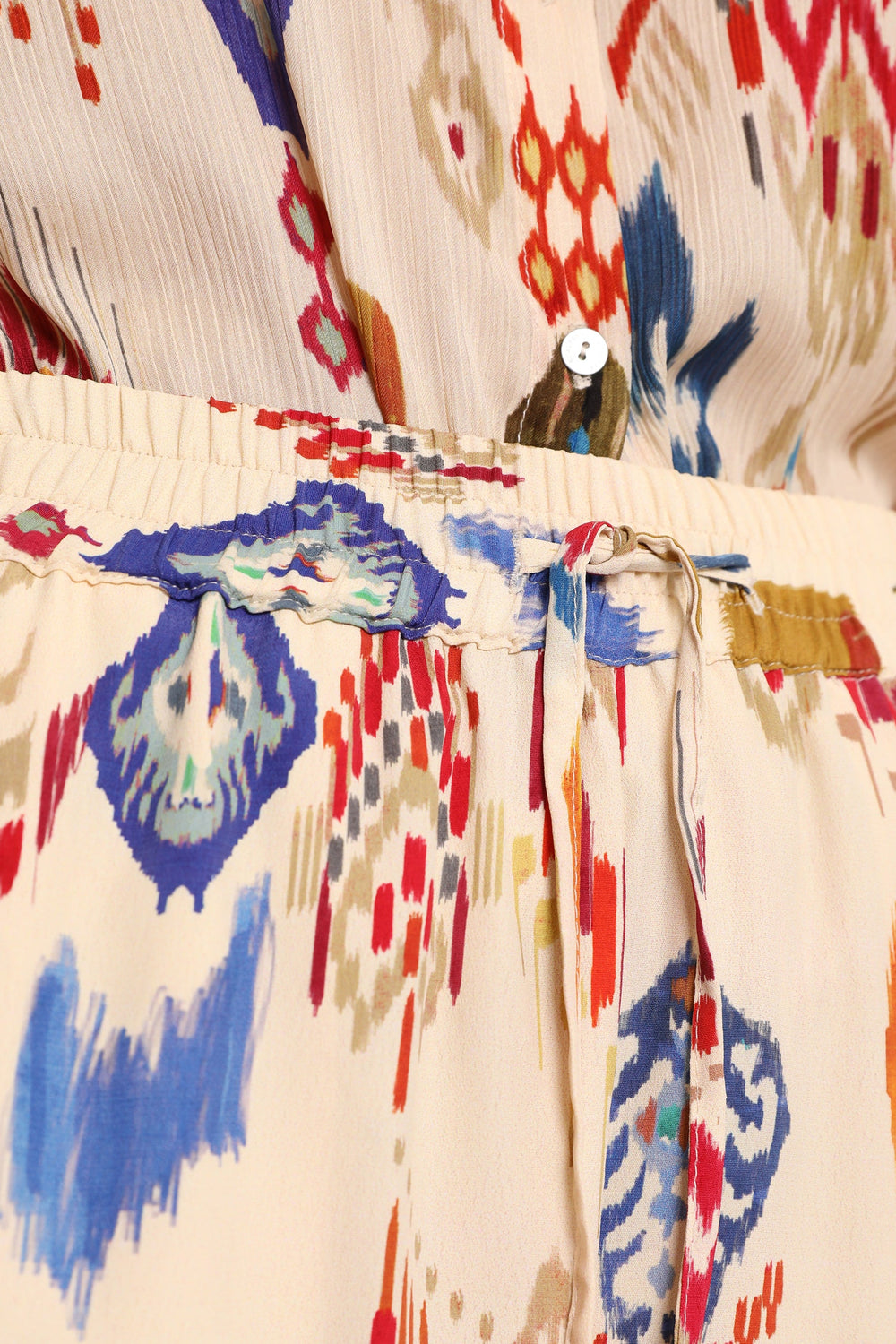 Printed trousers. Made from loose-fitting fabric, regular fit, side pockets, elasticated waistband and bow fastening.