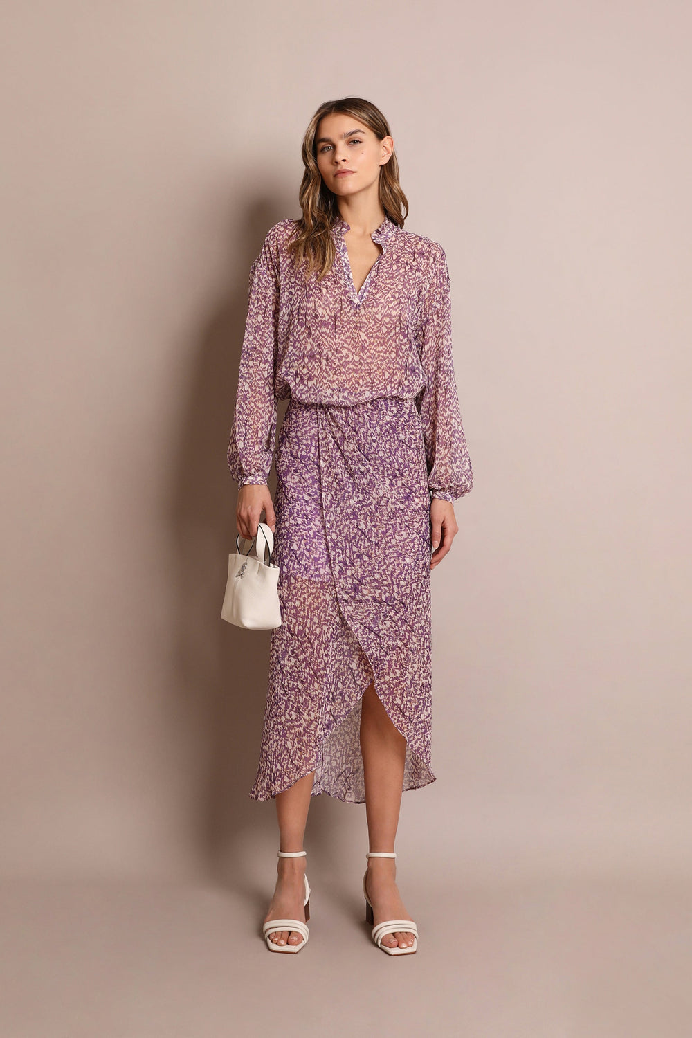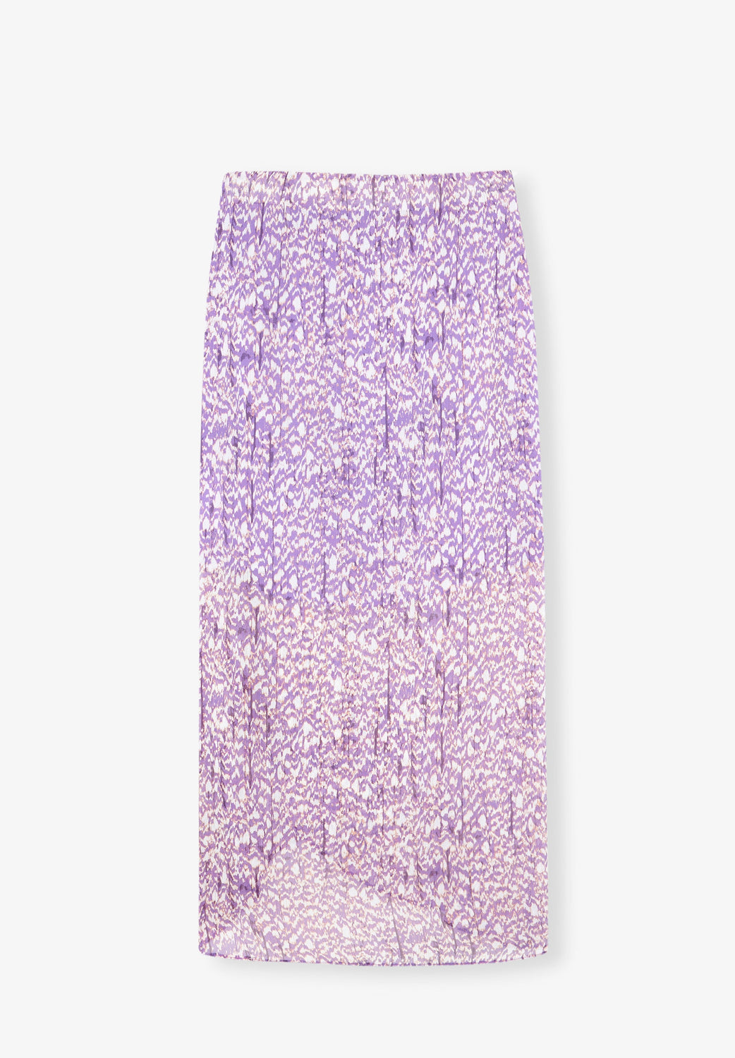 Skirt with metallic print. Made from flowing fabric with metallic thread, sarong-effect cut, higher at the front and midi length, with mini cut lining in more opaque fabric.