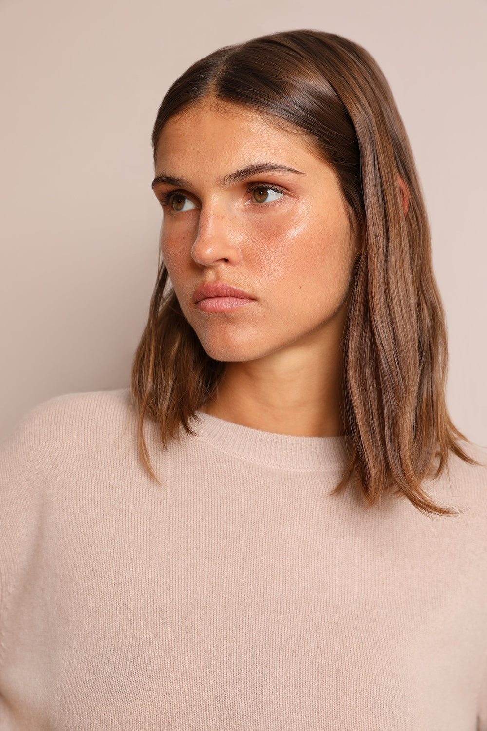 Plain sweater made of 100% cashmere. Regular fit, round neck and long sleeves.