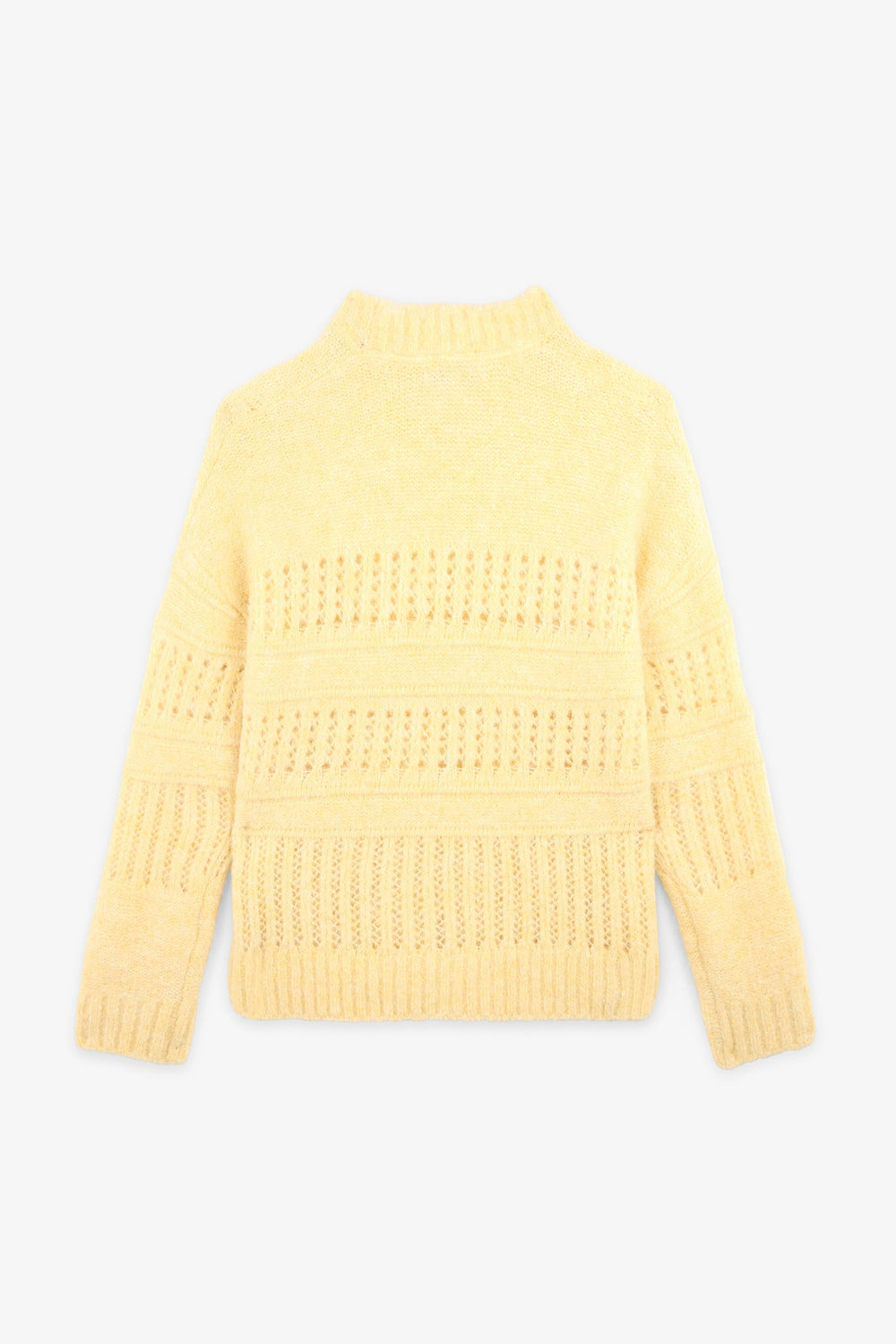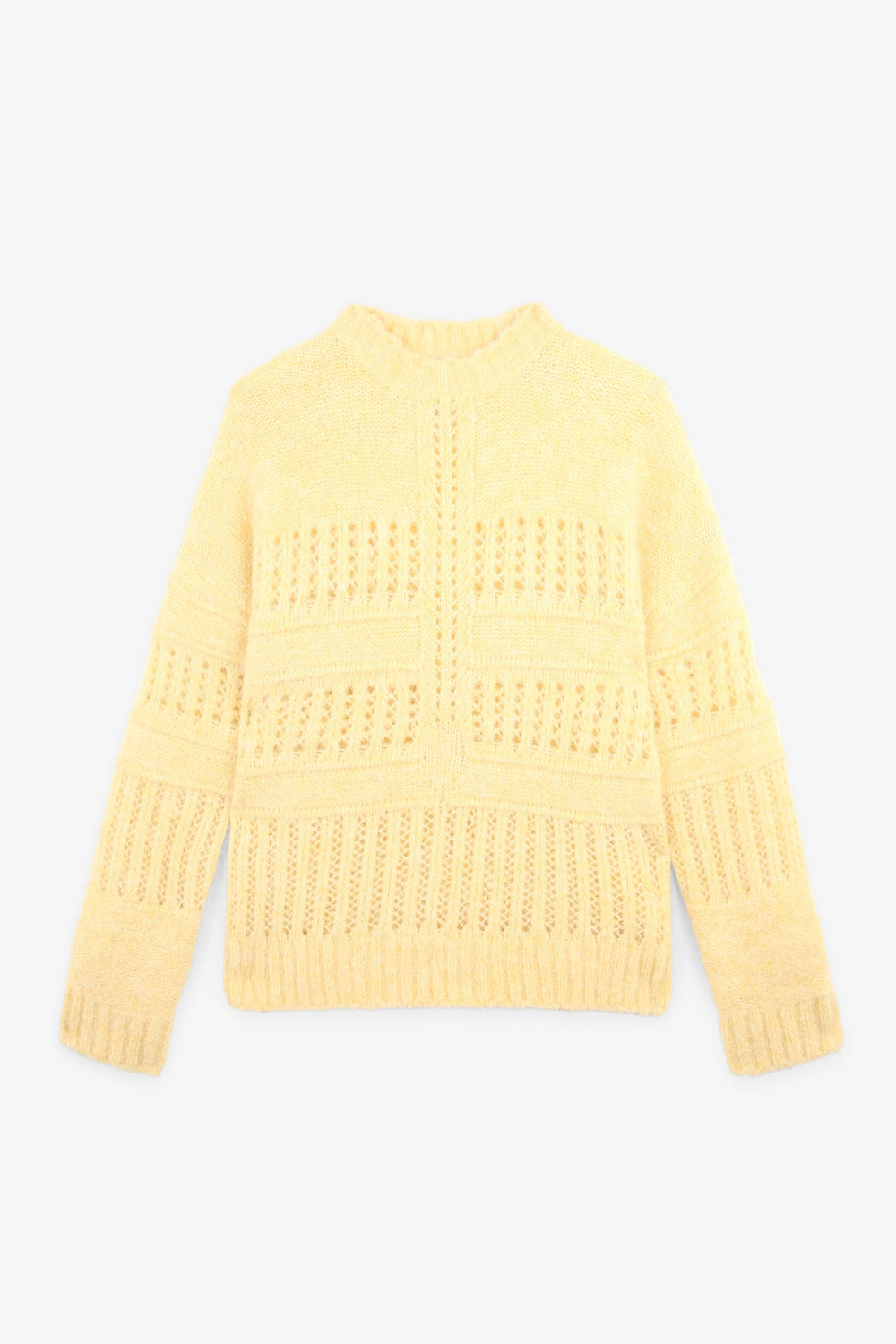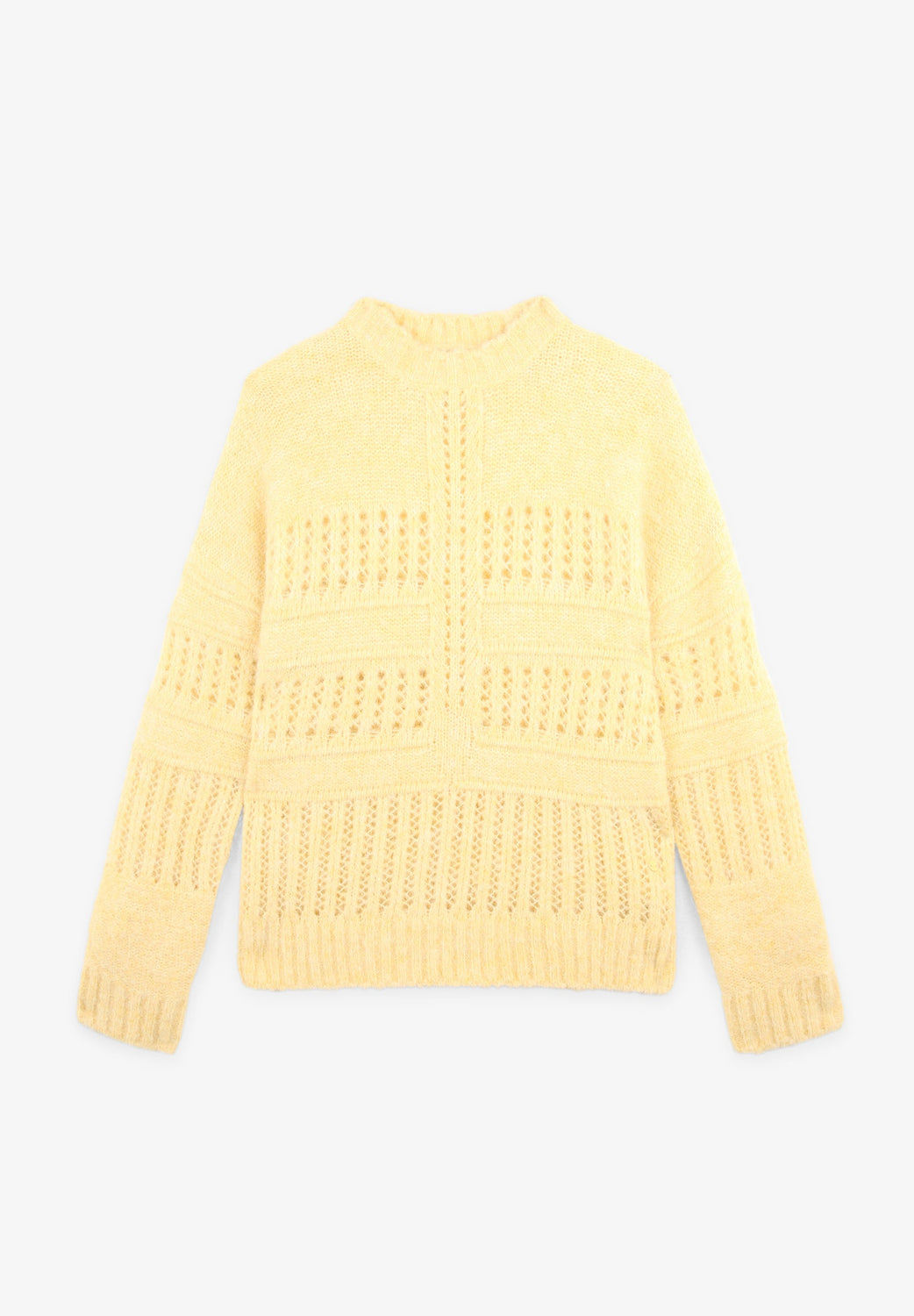 Die-cut sweater made of a wool, alpaca and recycled polyester blend. Regular fit, round neck and long sleeves.