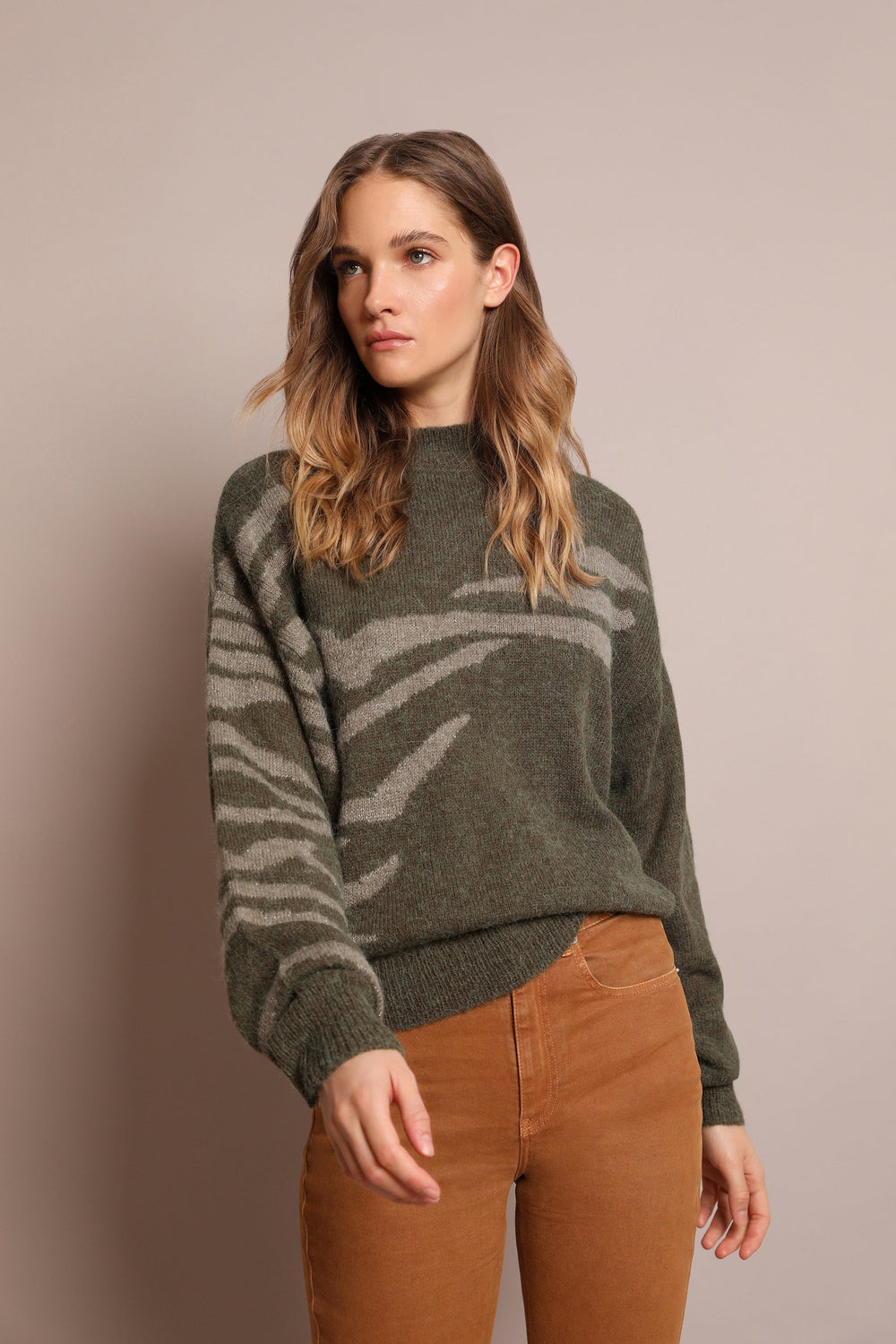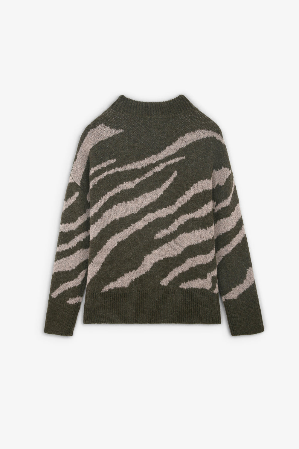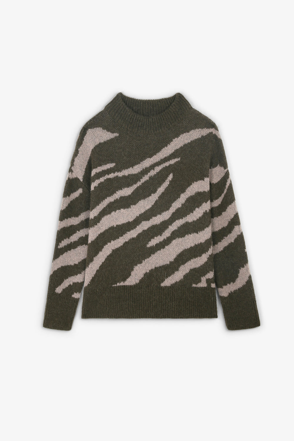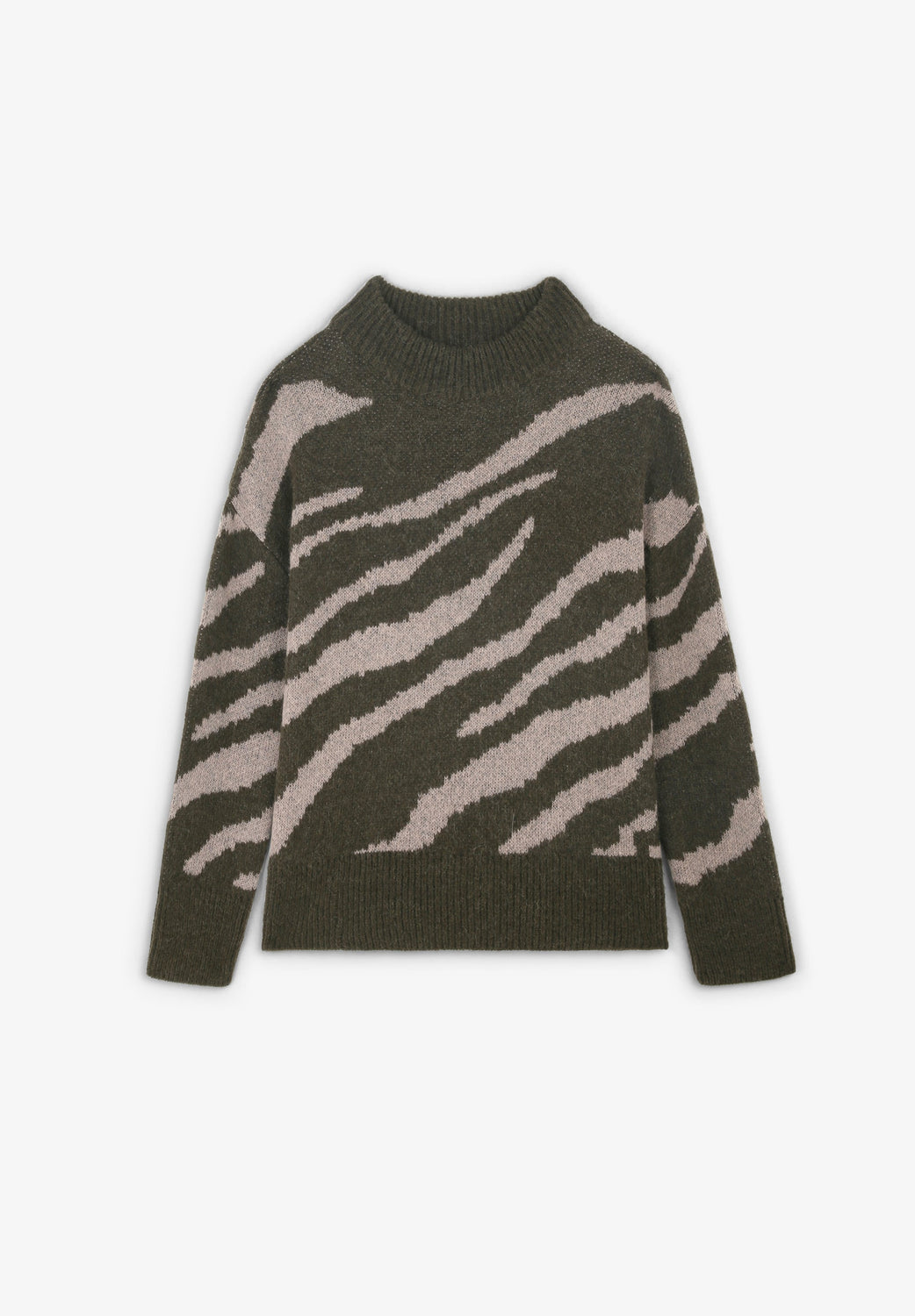 Knit sweater with animal print embellishment made from an alpaca blend. Regular fit, slightly high collar and long sleeves.