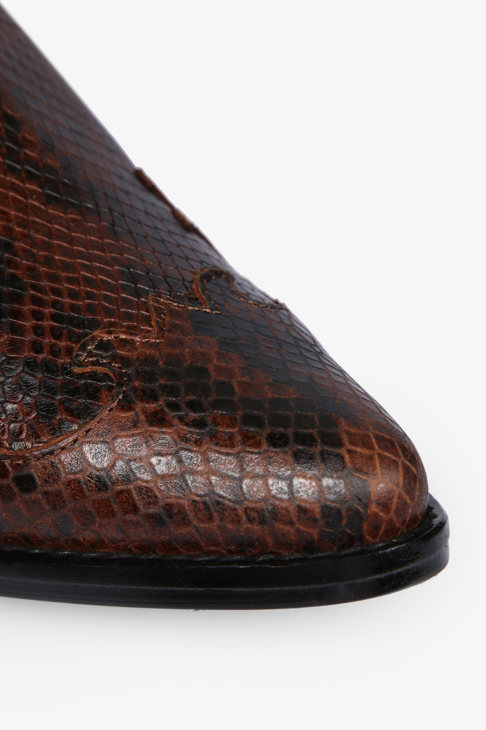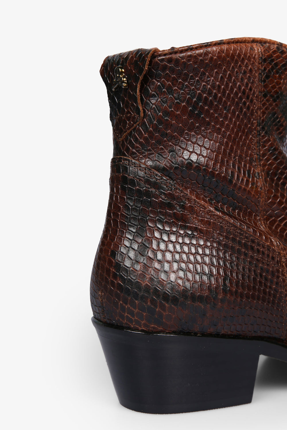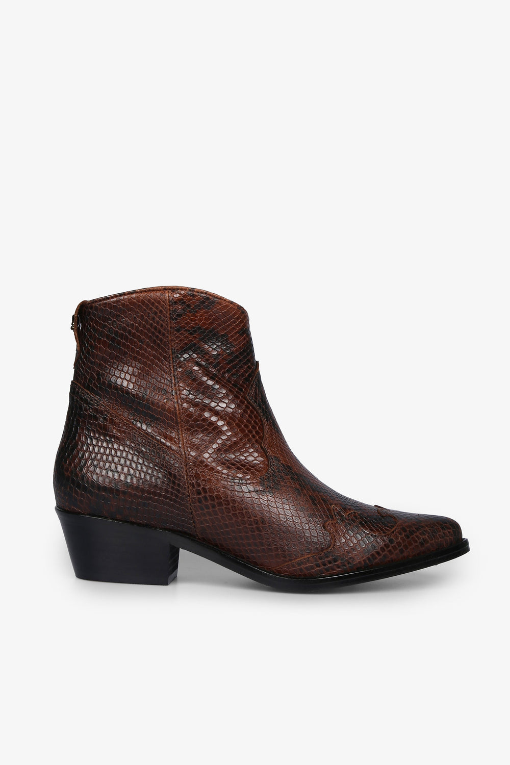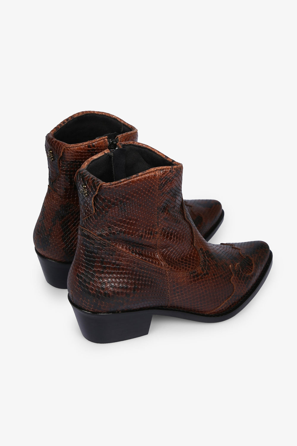 Cowboy ankle boots, made from 100% cowhide leather, zip fastening on the inside, pointed toe and topstitching detail.