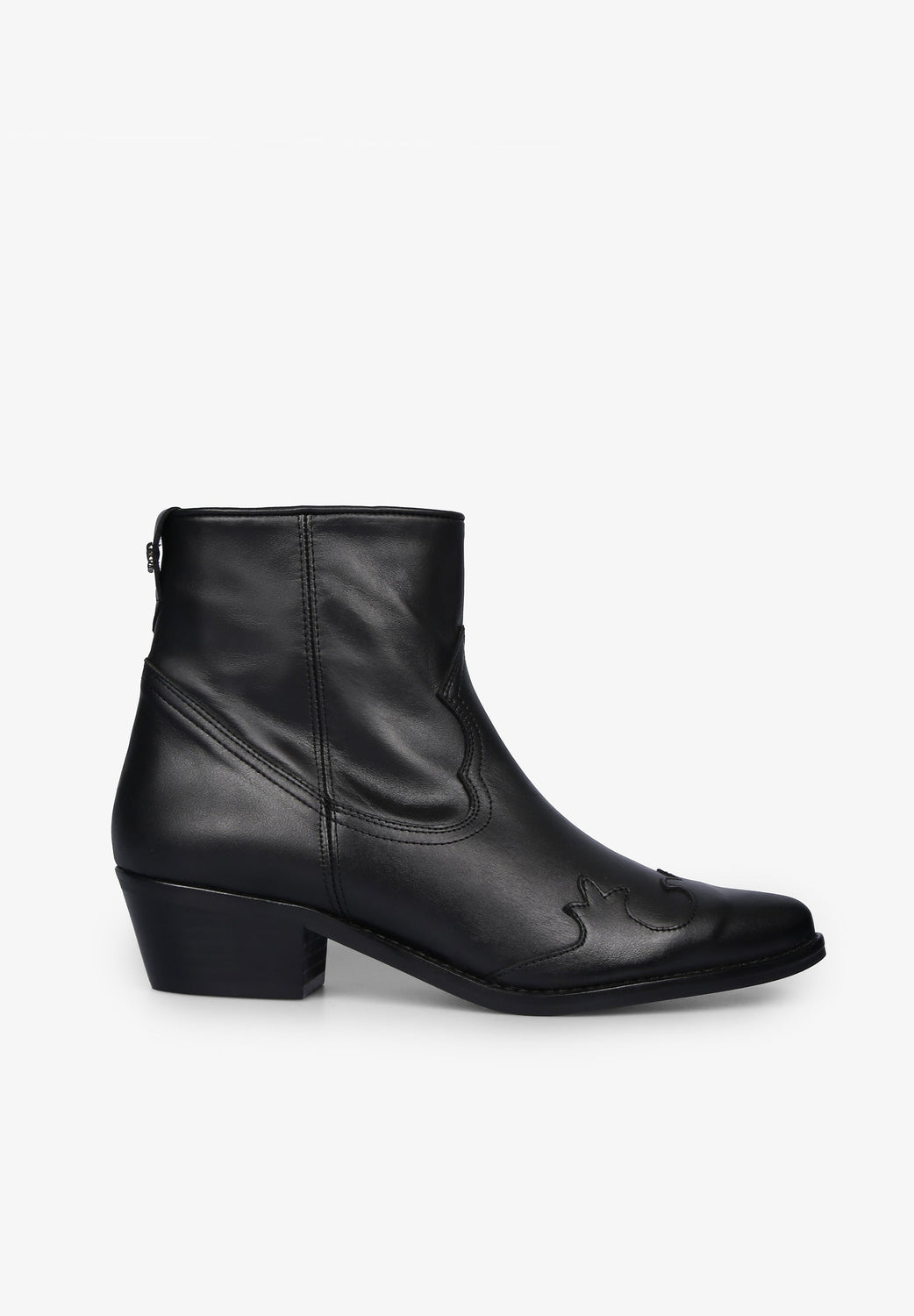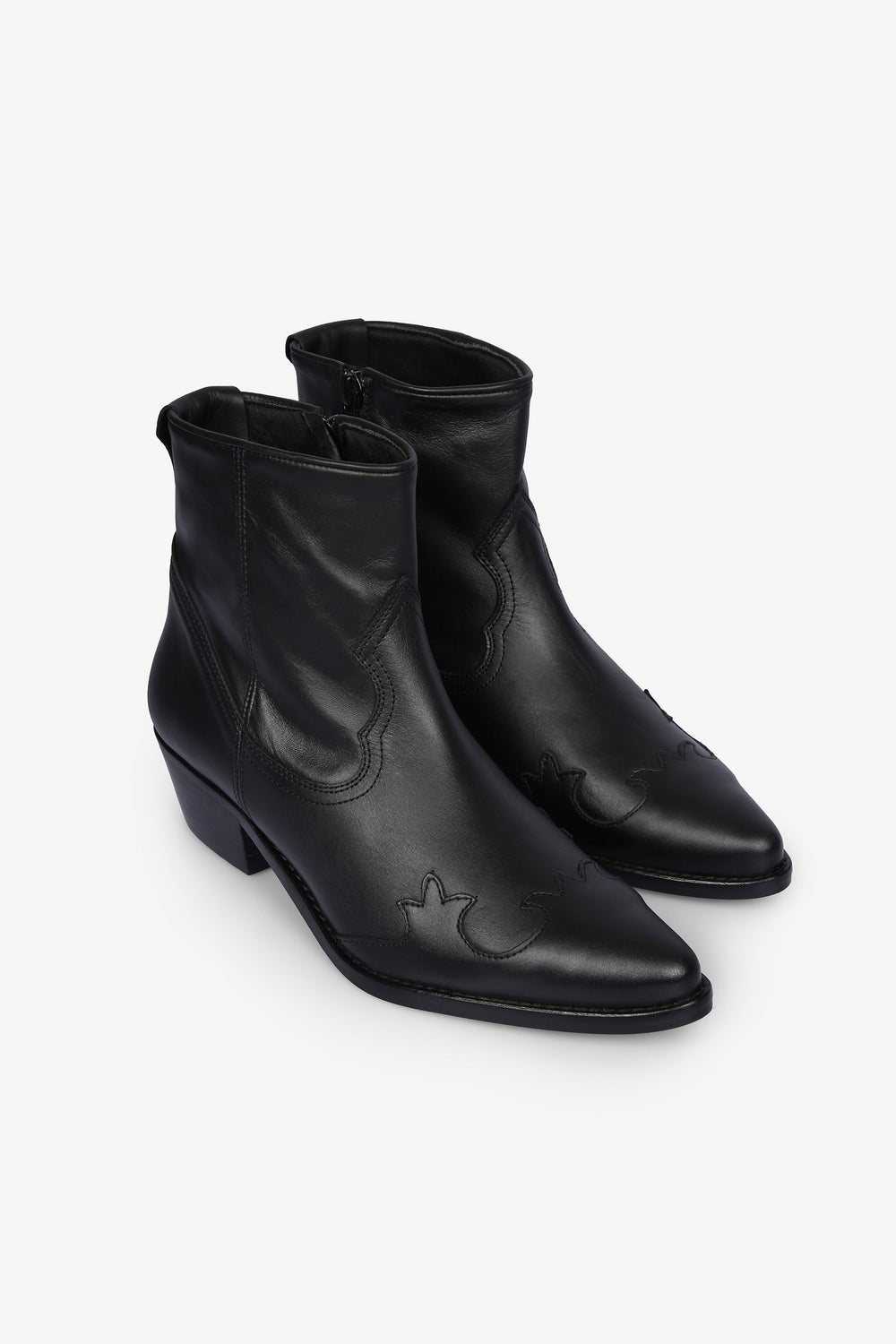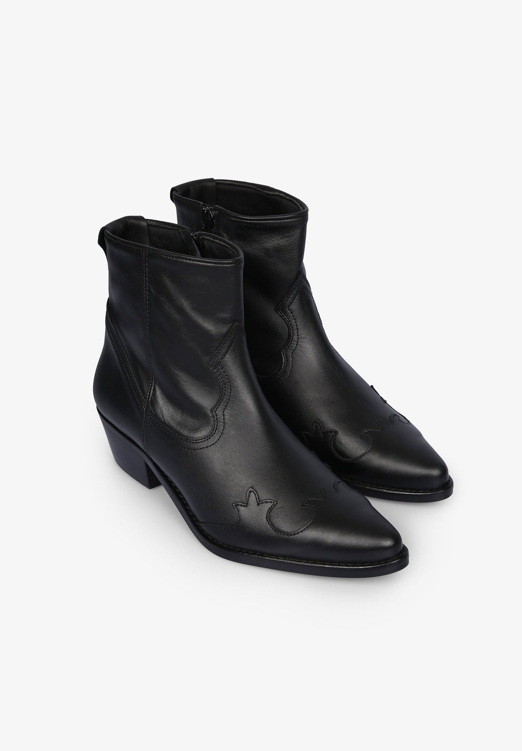 Cowboy ankle boots, made from 100% cowhide leather, zip fastening on the inside, pointed toe and stitching and stud detailing.