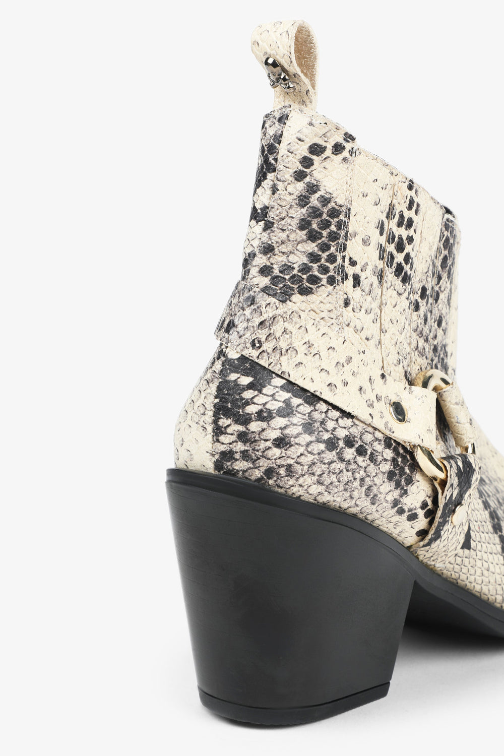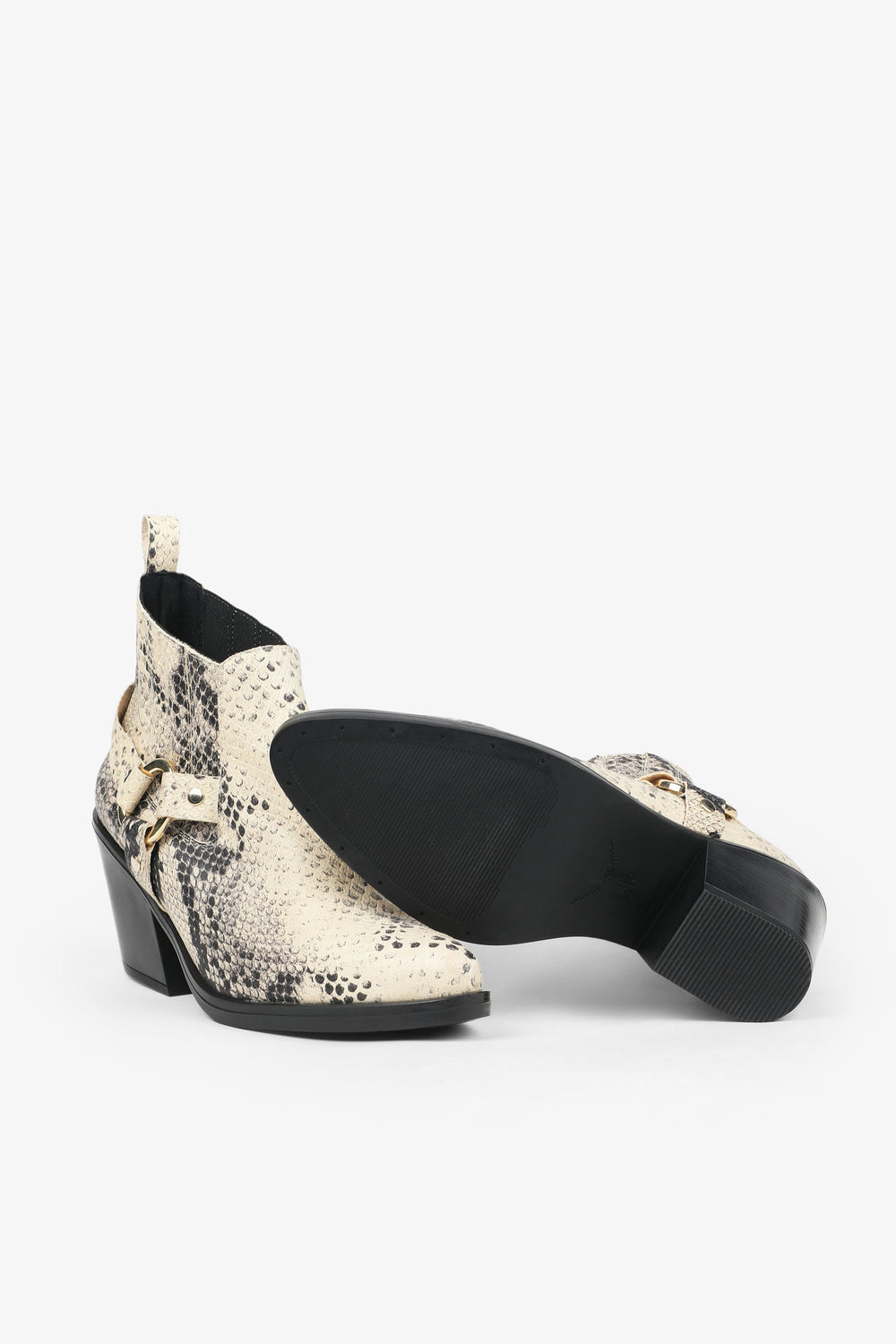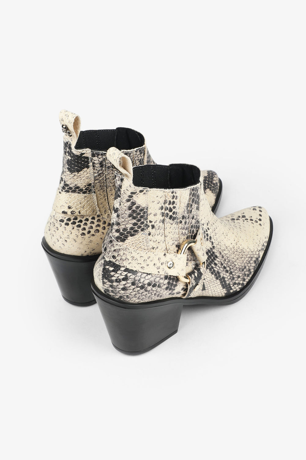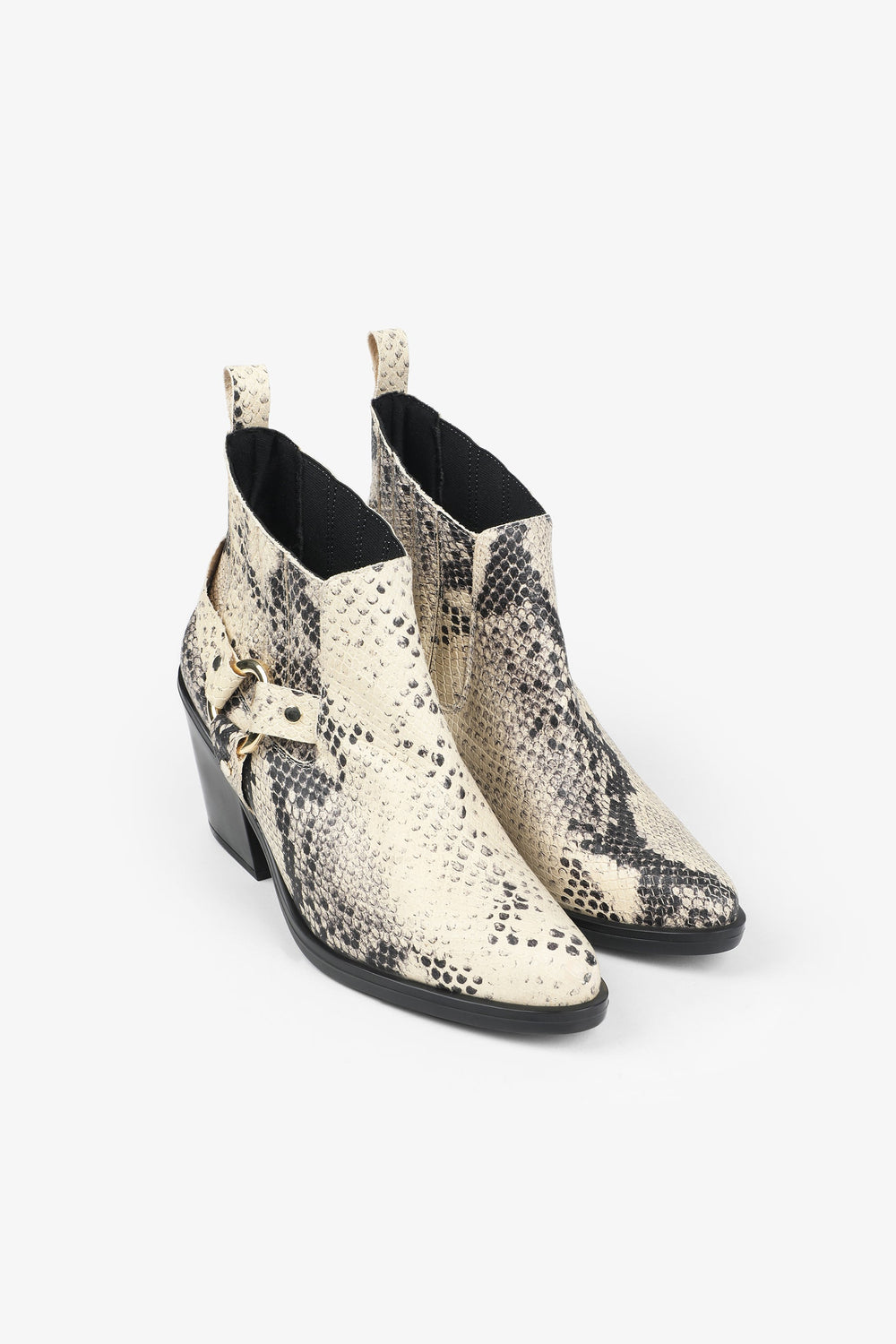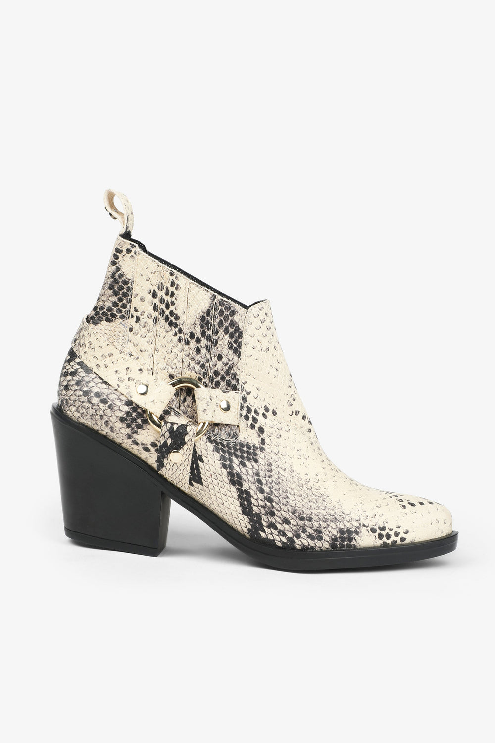 Ankle boots with D-ring. Made of 100% leather, elastic fastening, rounded toe and metallic D-ring on the side. Heel height: 8 cm / Leg height: 10.5 cm