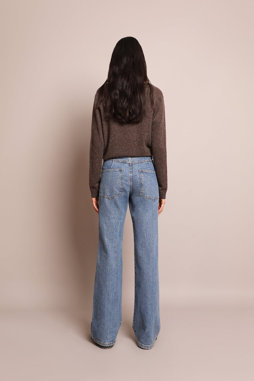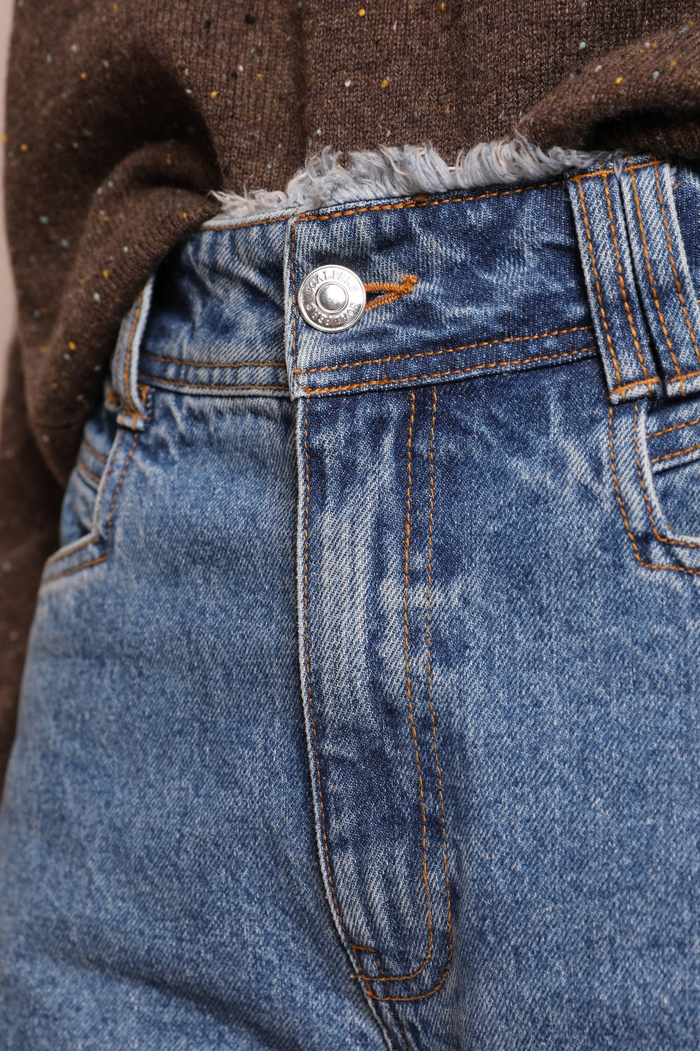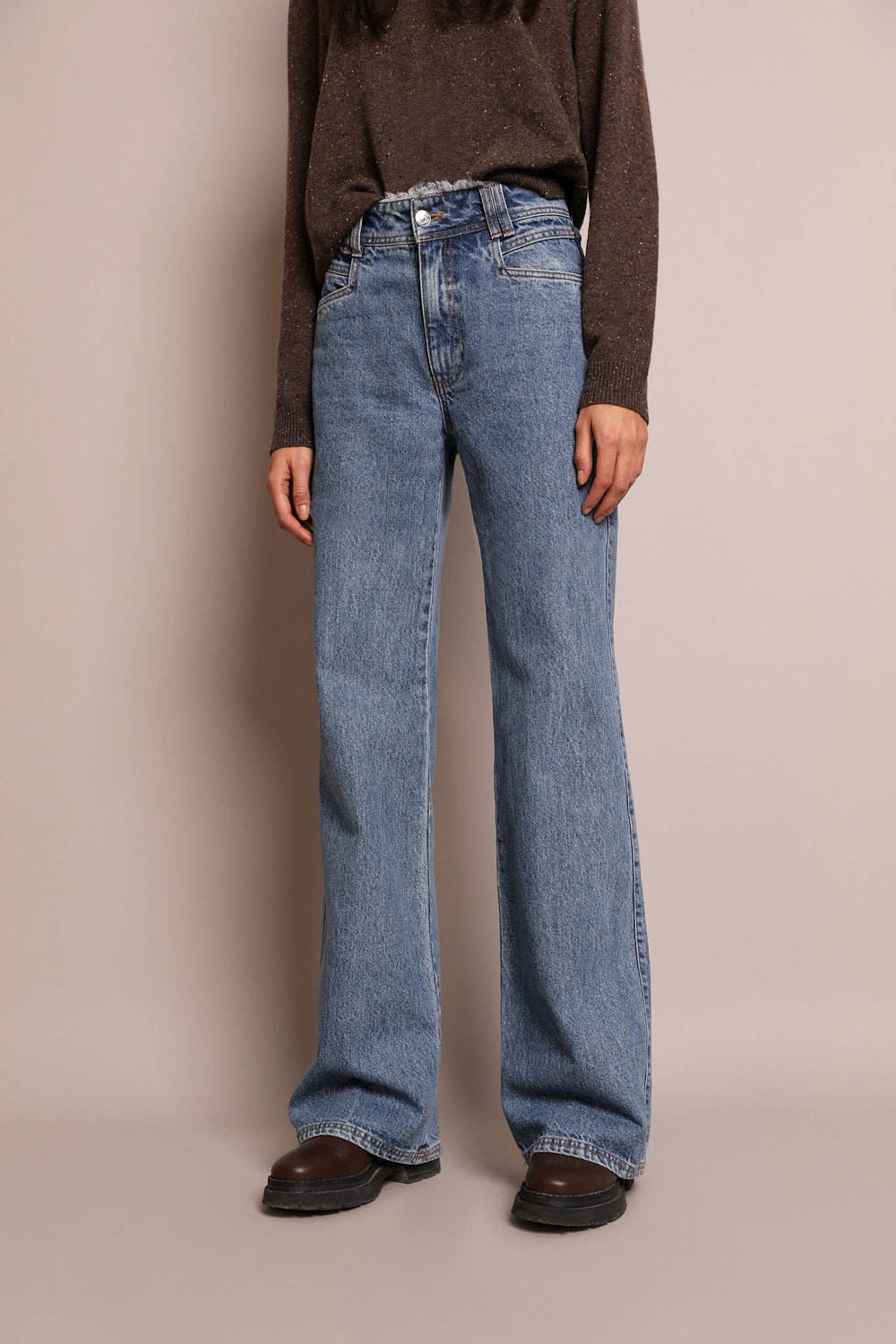 Full length jeans made from slightly stretchy BCI cotton. Regular fit with a high waist, zip fly and top button fastening and side and back pockets. Double belt loops at the waist and frayed edge waist detail.