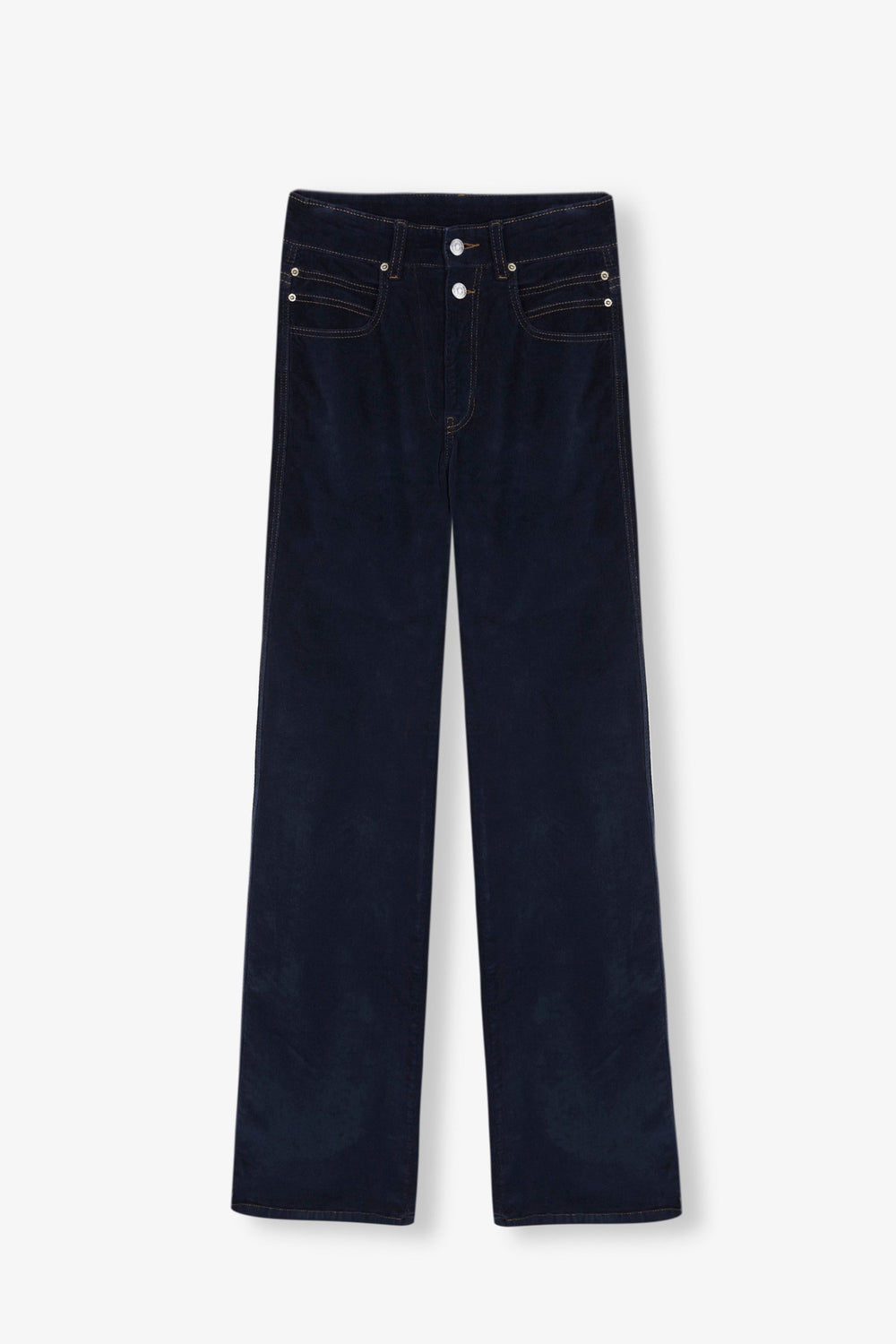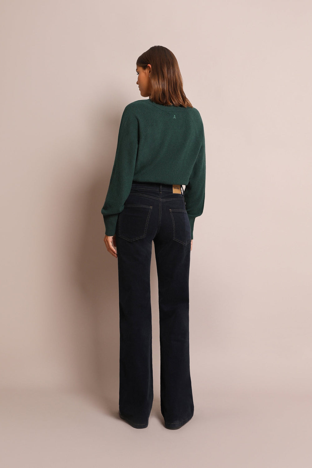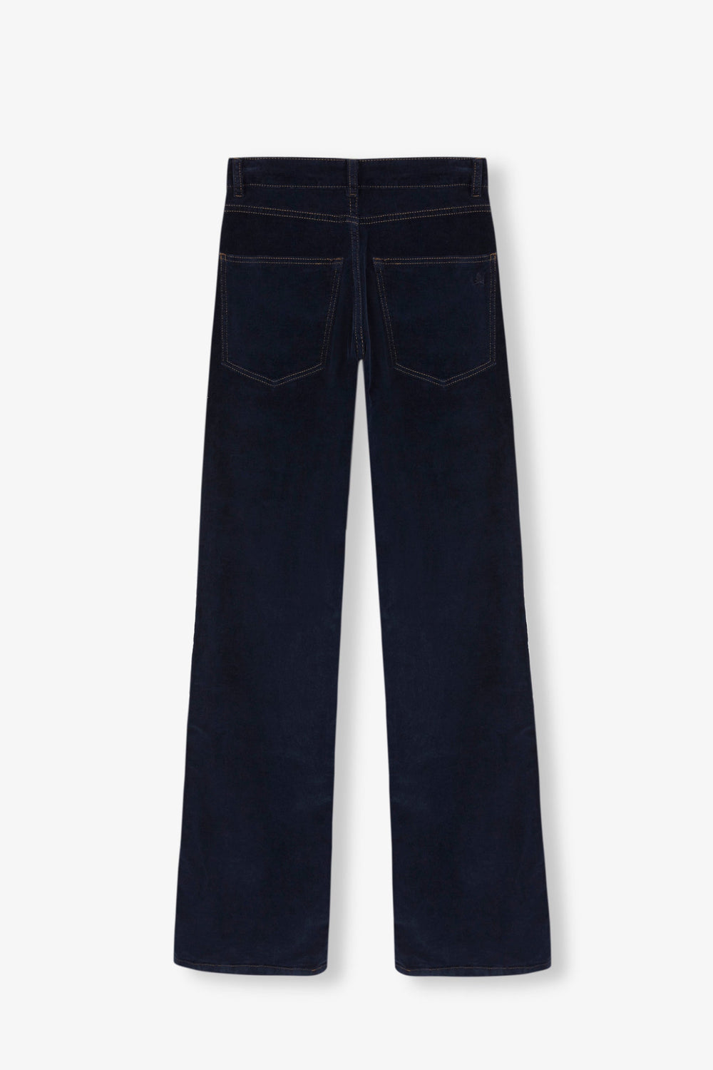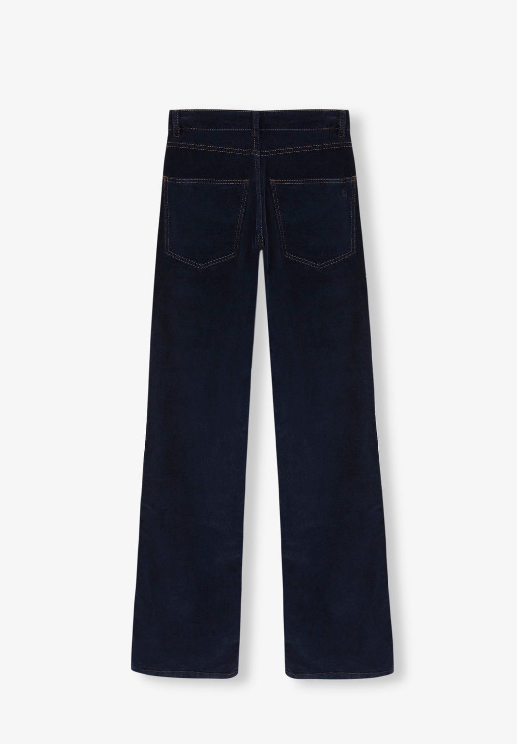 Flared trousers made of slightly stretch cotton fabric. Regular fit with high waist, zip and button fastening and side and back pockets.