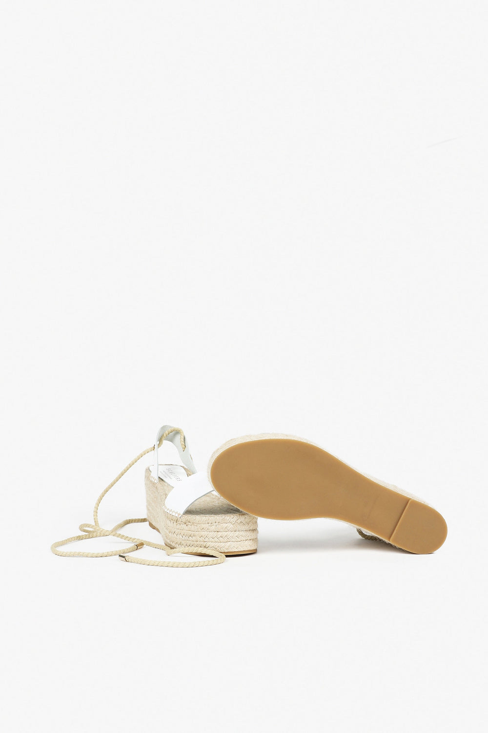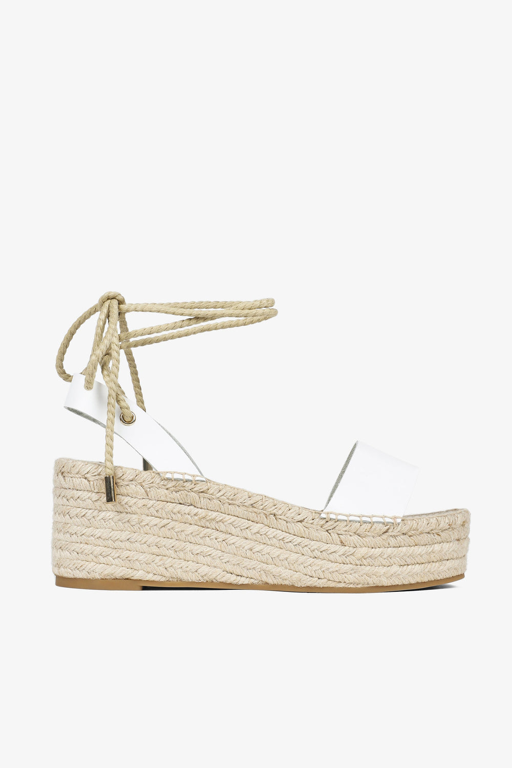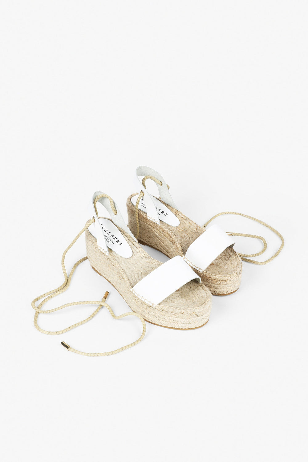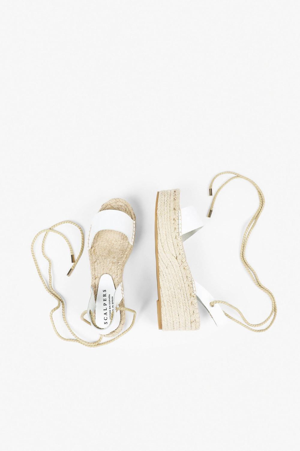 Wedge espadrilles made of jute and leather. Rubber sole and front platform.