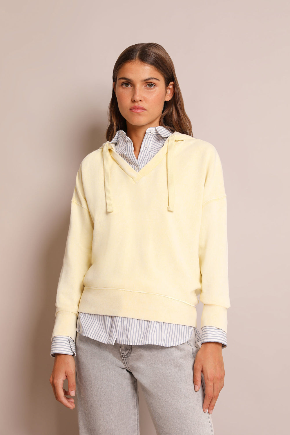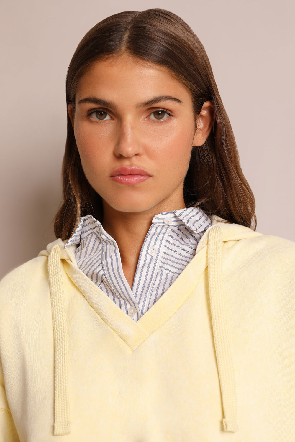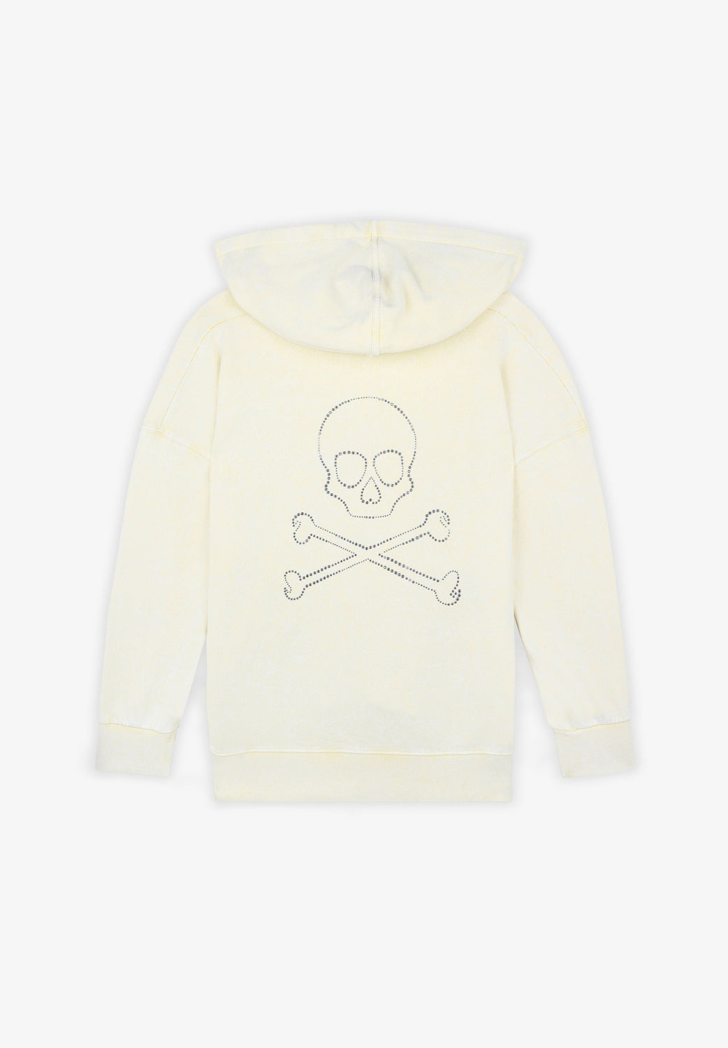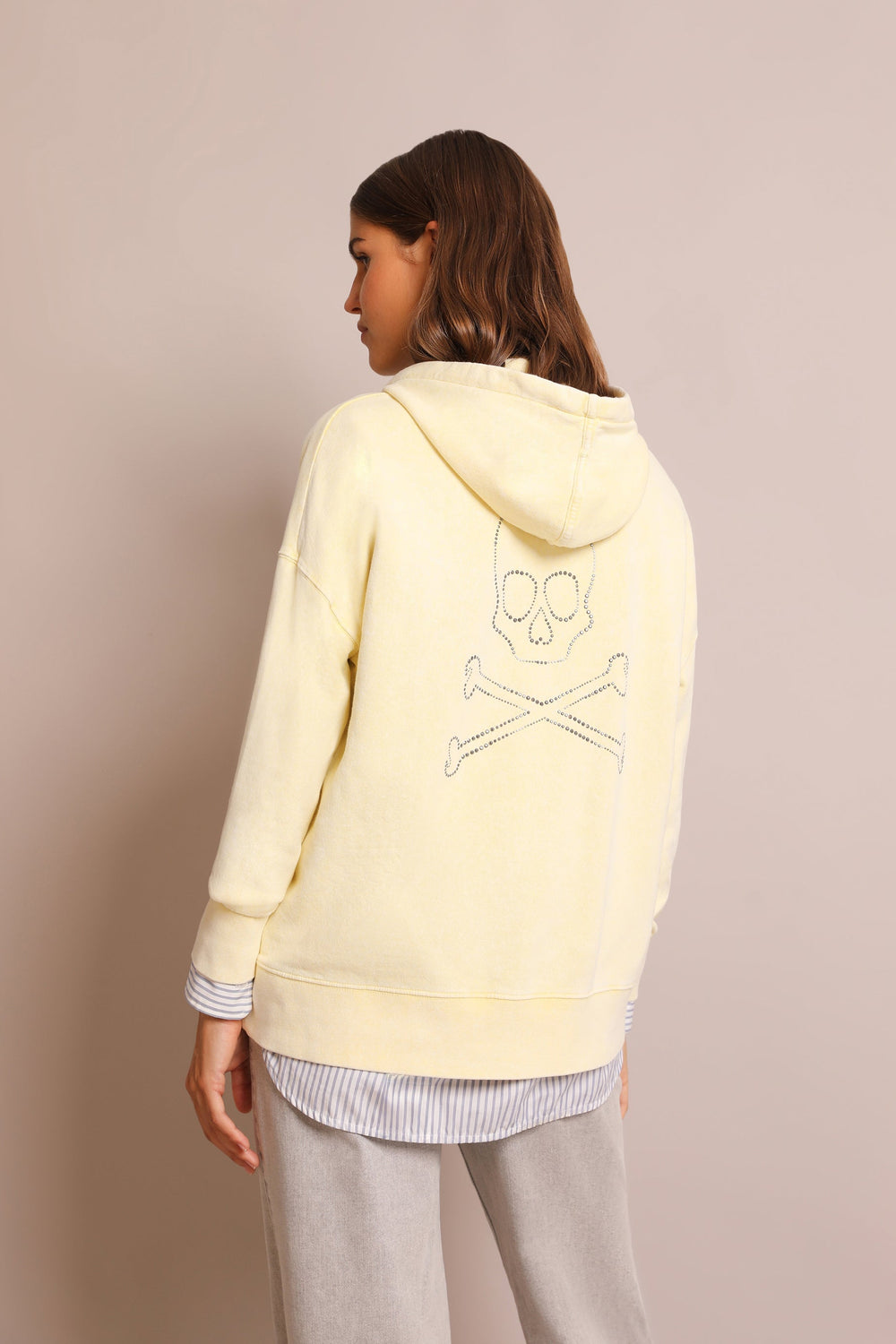 Sweatshirt with hood detail. Made from 100% cotton, regular fit, ribbed collar with hood and rhinestone skull on the back
