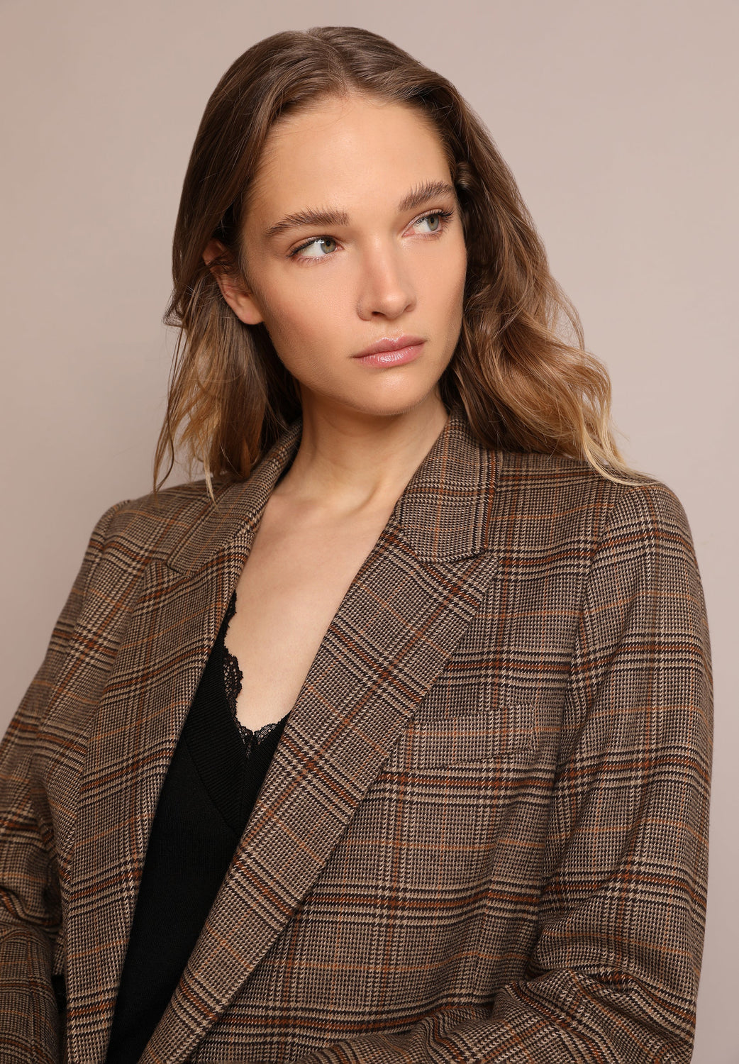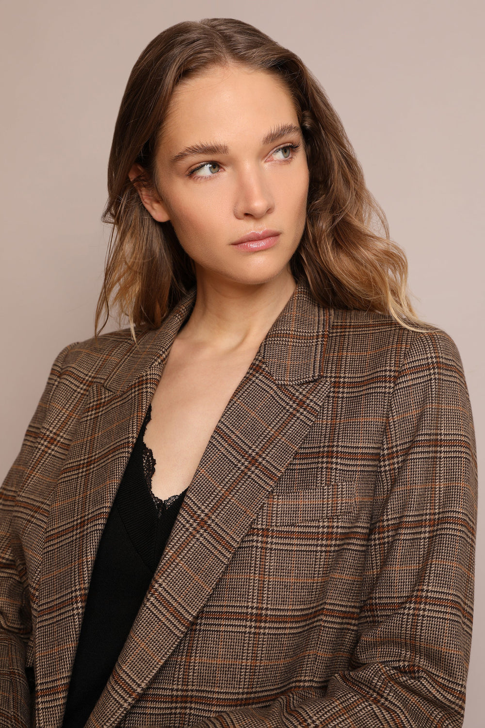 Cropped check blazer in a slightly stretchy fabric. Regular fit, collar with lapels and crossover fastening. Long sleeves.