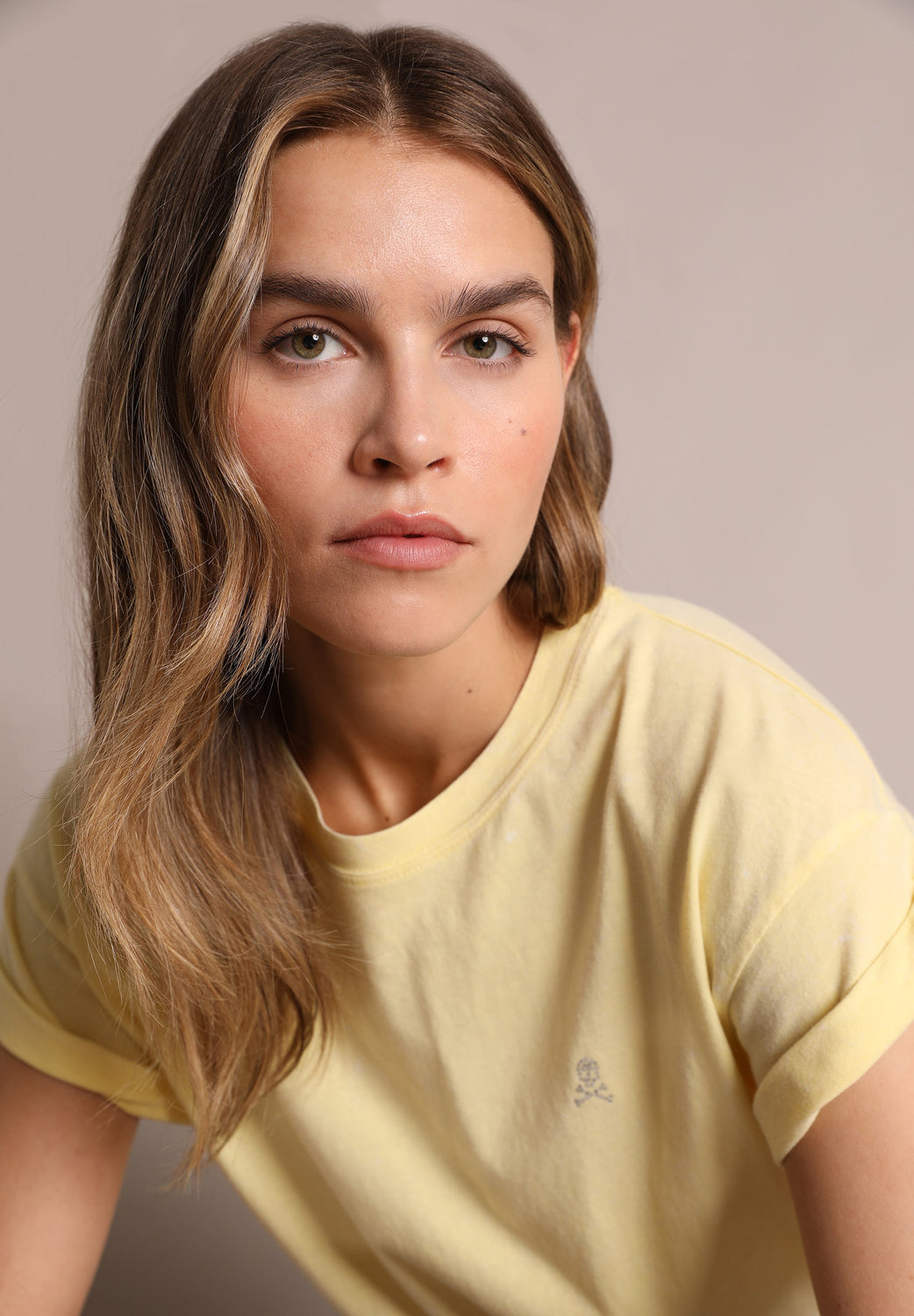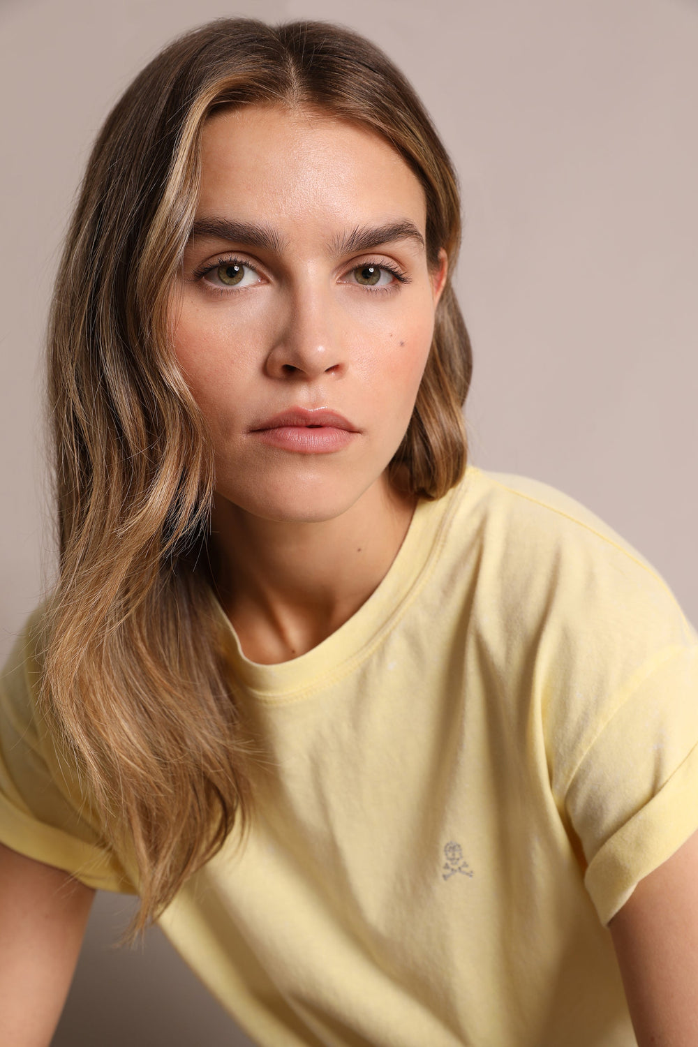 T-shirt with mini rhinestone skull on the chest made from 100% organic faded cotton. Regular fit, round neck and short sleeves.