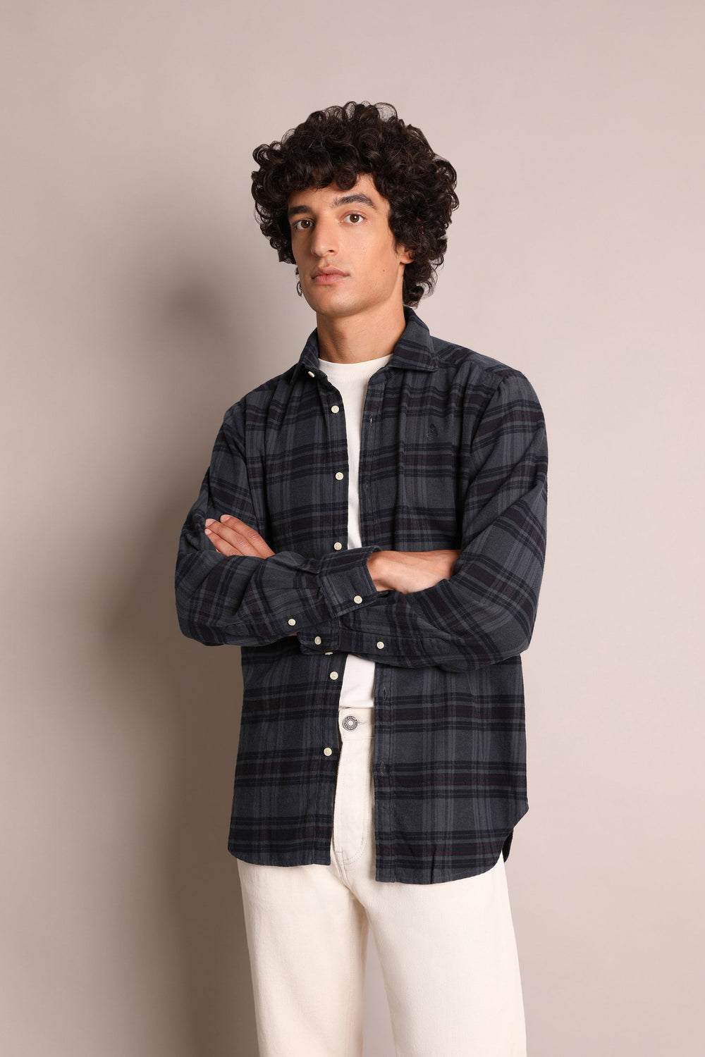 Plaid check shirt made from 100% cotton. Regular fit, cutaway collar and button fastening. Long sleeves with buttoned cuffs.
