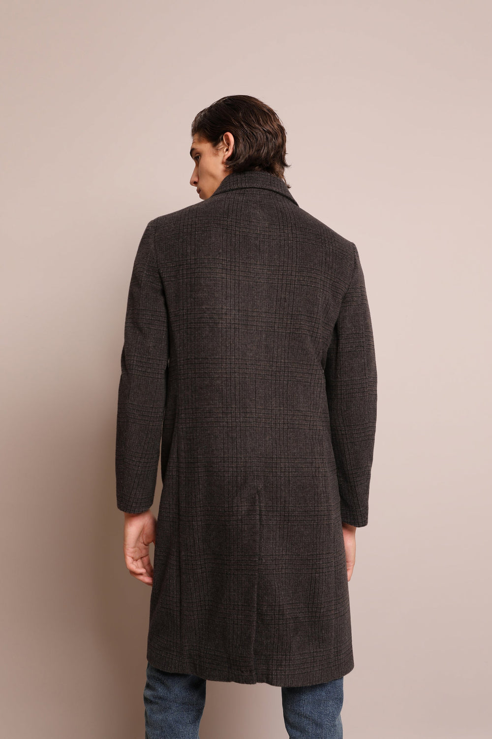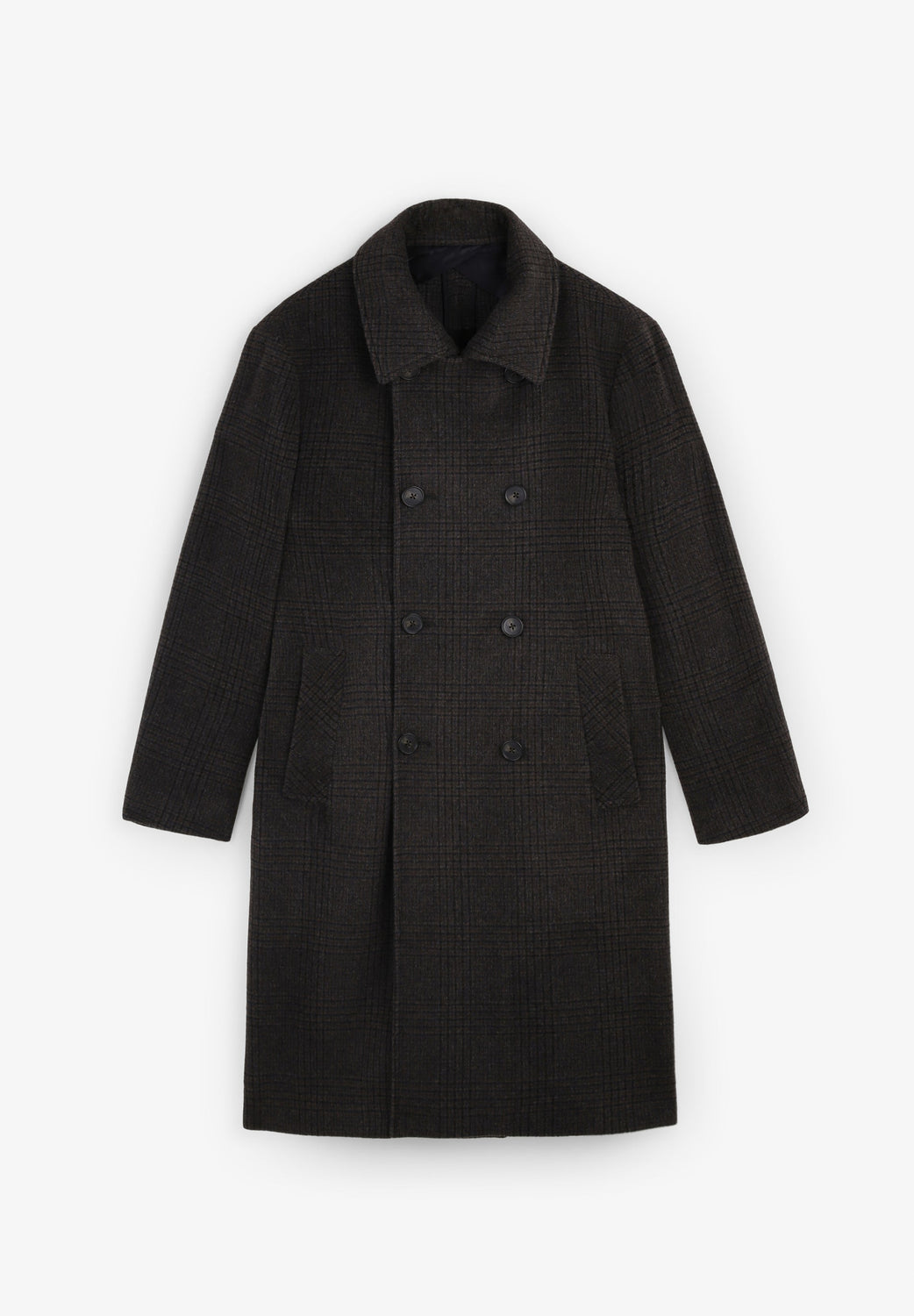 Check coat made of a wool blend. Regular fit, classic collar and button fastening. Long sleeves and side pockets.