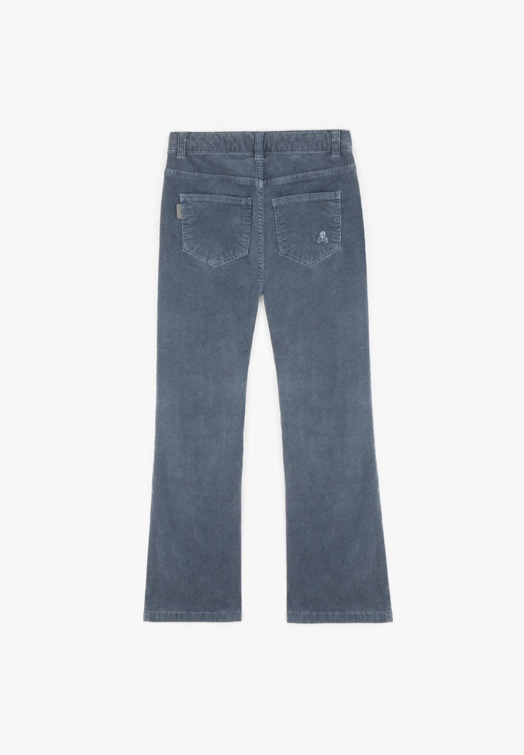 Flare corduroy trousers in slightly stretchy BCI cotton. Regular fit, button fastening and side and back pockets. Belt loops at the waist and embroidered logo on the pocket.