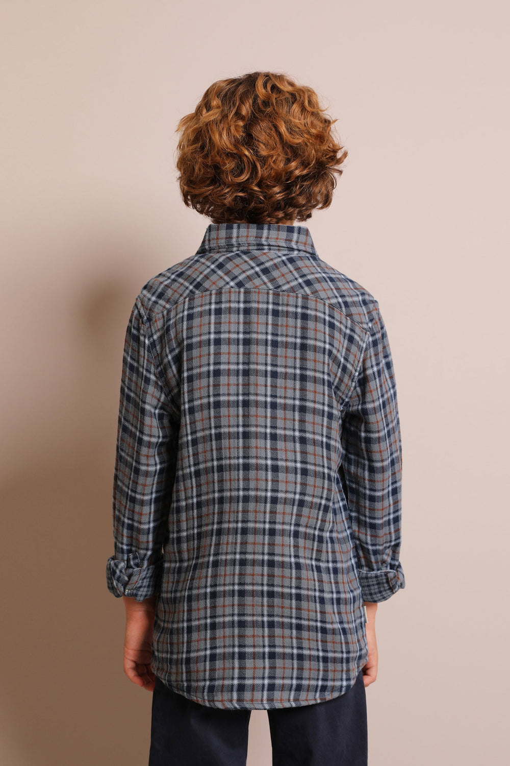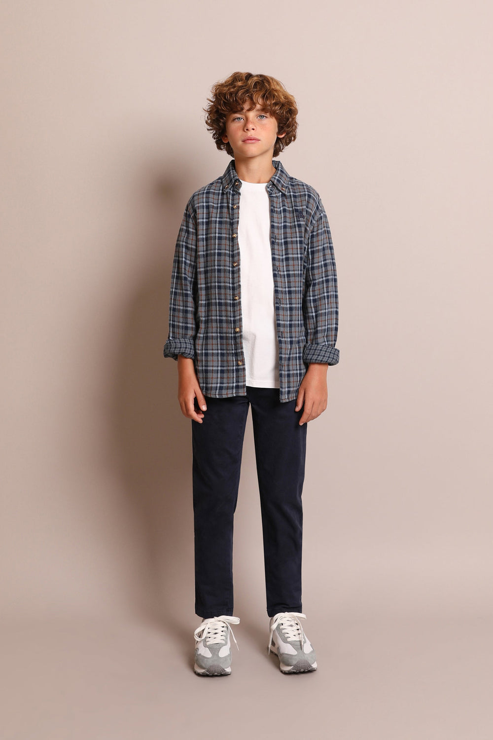 Check shirt. Made of cotton blend fabric, regular fit, contrast button fastening, button-down collar, long sleeves with buttoned cuffs and turn back detail featuring a different check pattern and matching embroidered skull detail on the chest