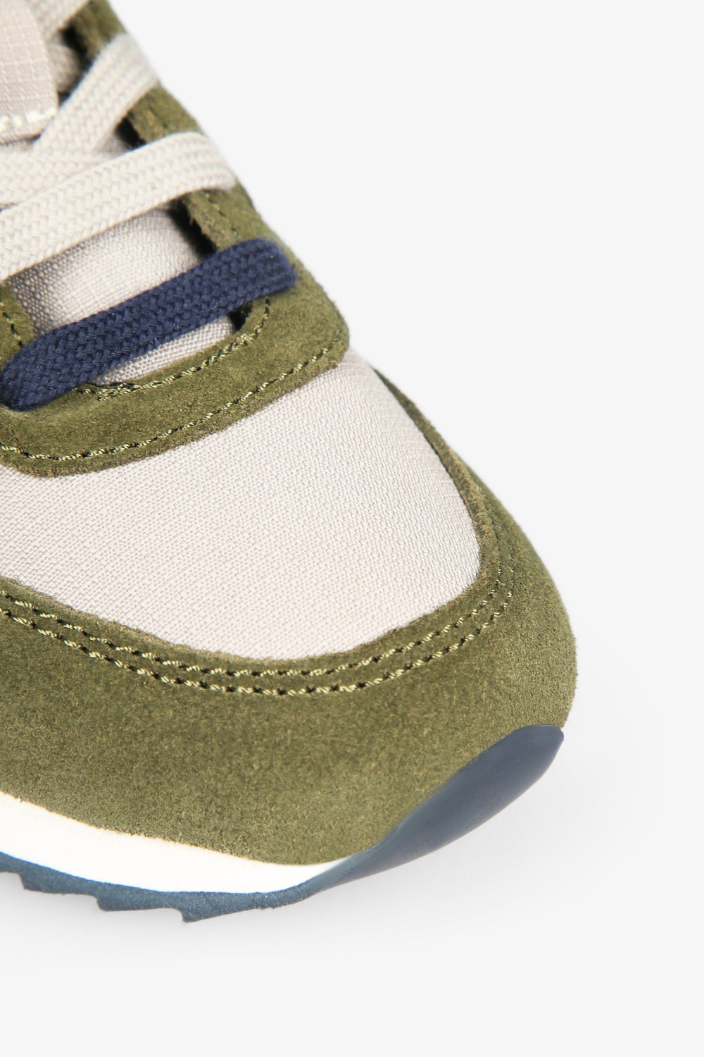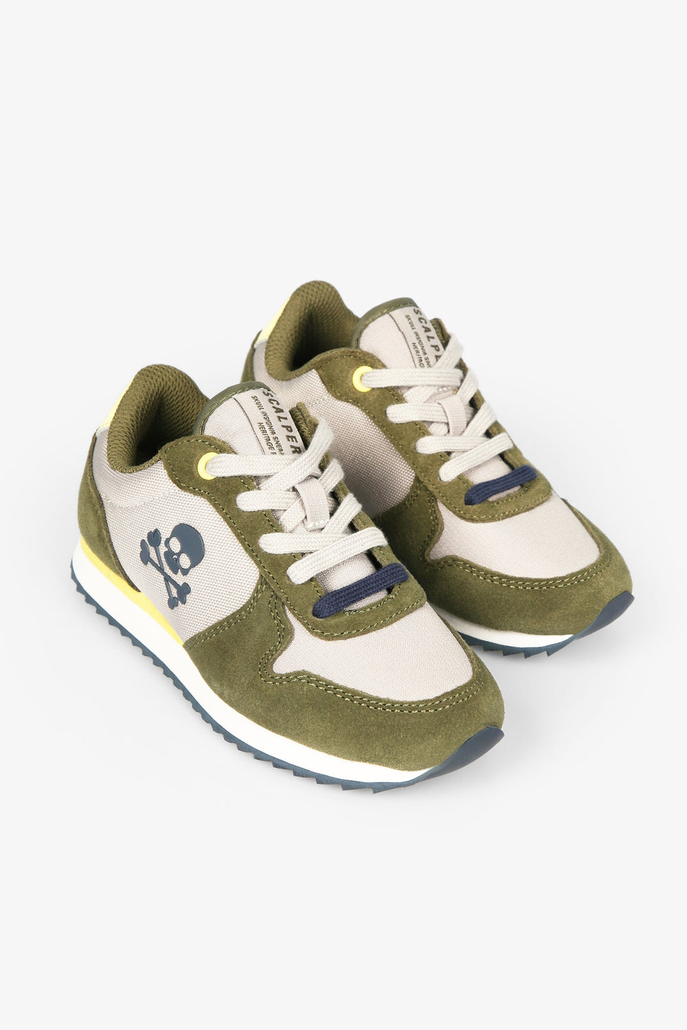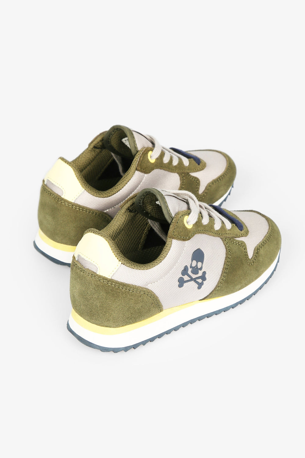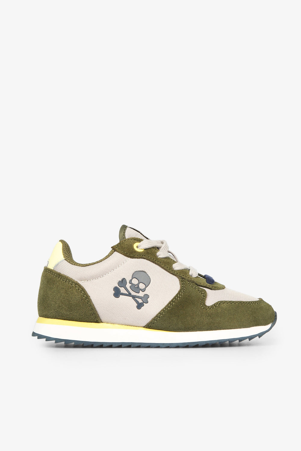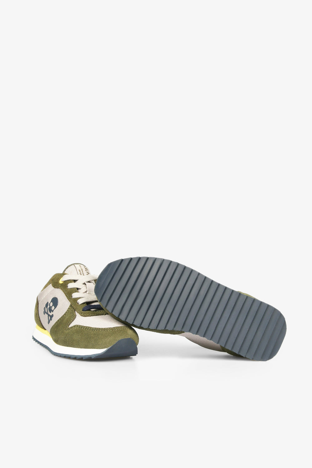 Sneakers with contrast skulls on the sides made from leather and finished in split leather. Contrast lace-up fastening and contrast rubber sole.