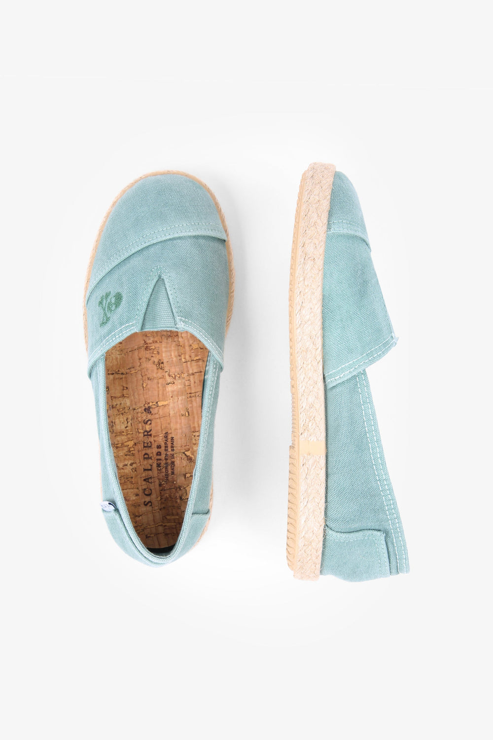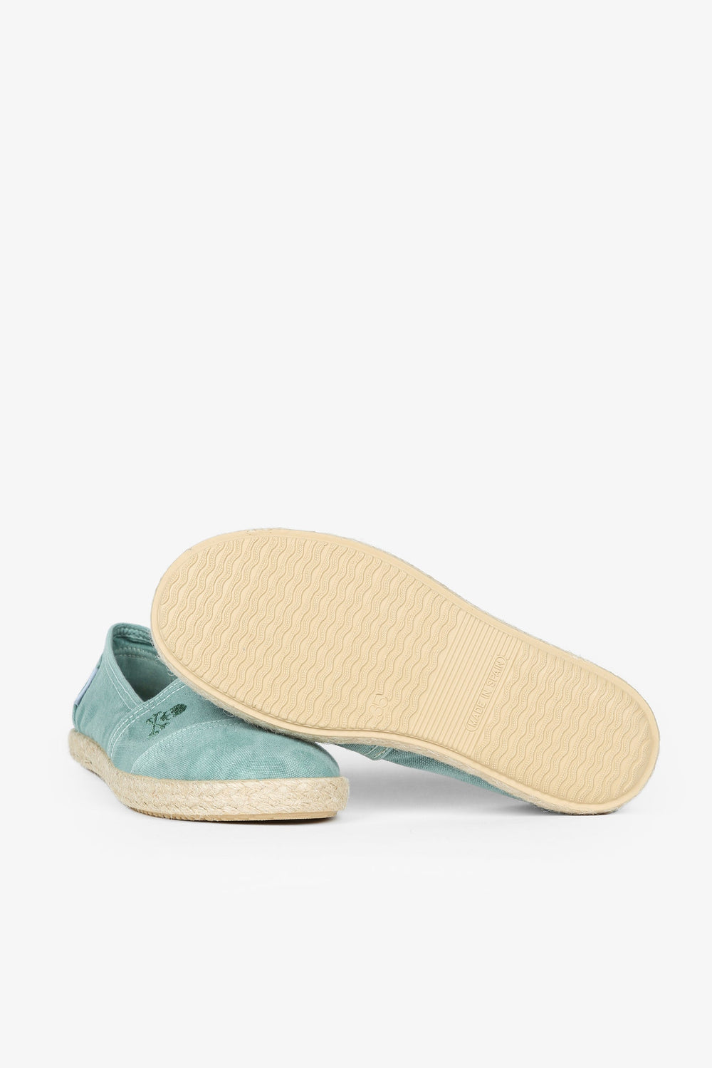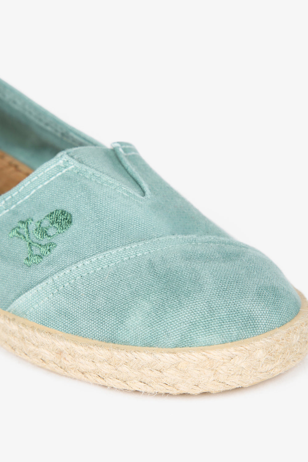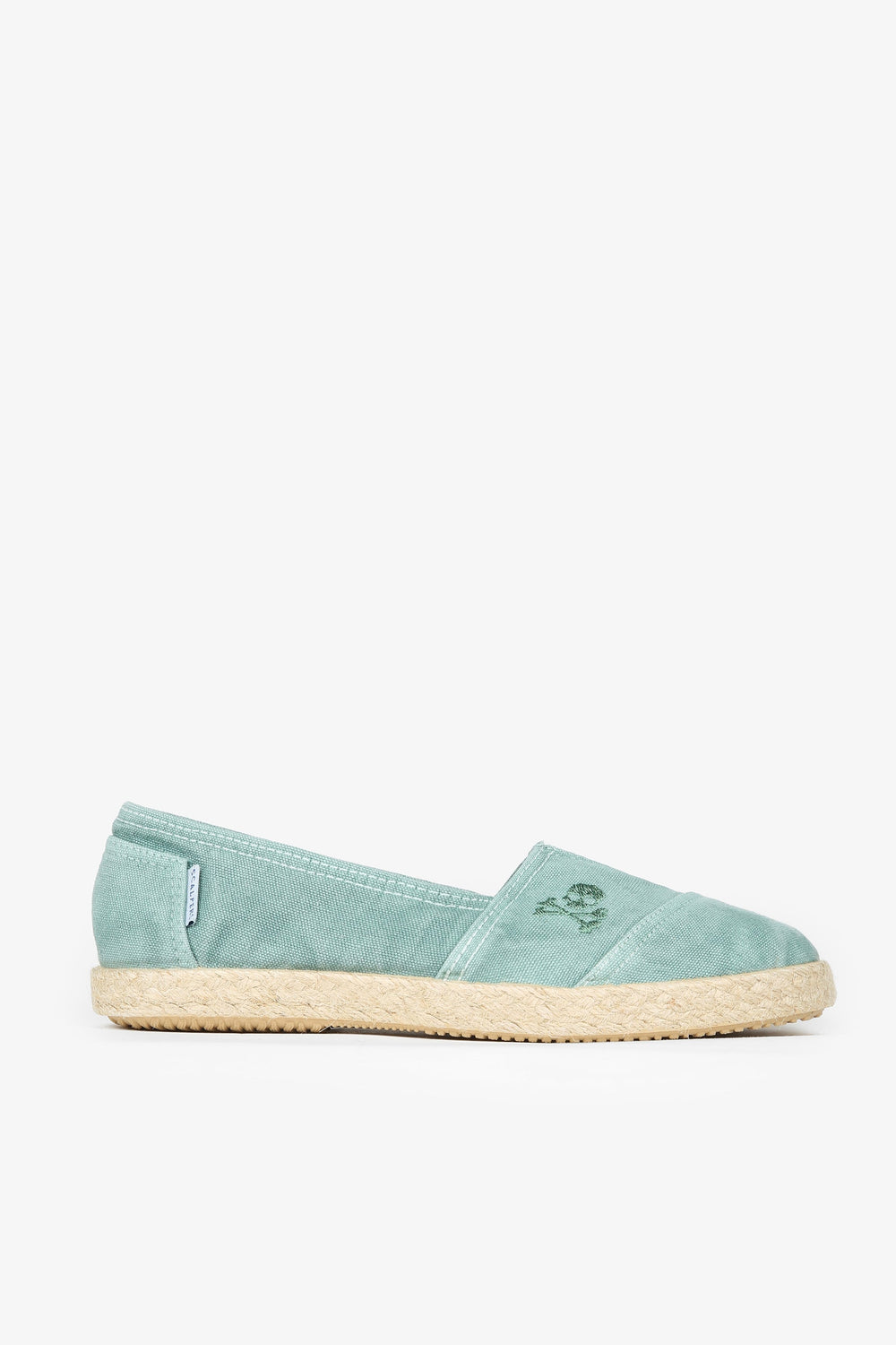 Canvas espadrilles made of 100% recycled cotton. Esparto grass and rubber sole with embroidered skull detail and label.