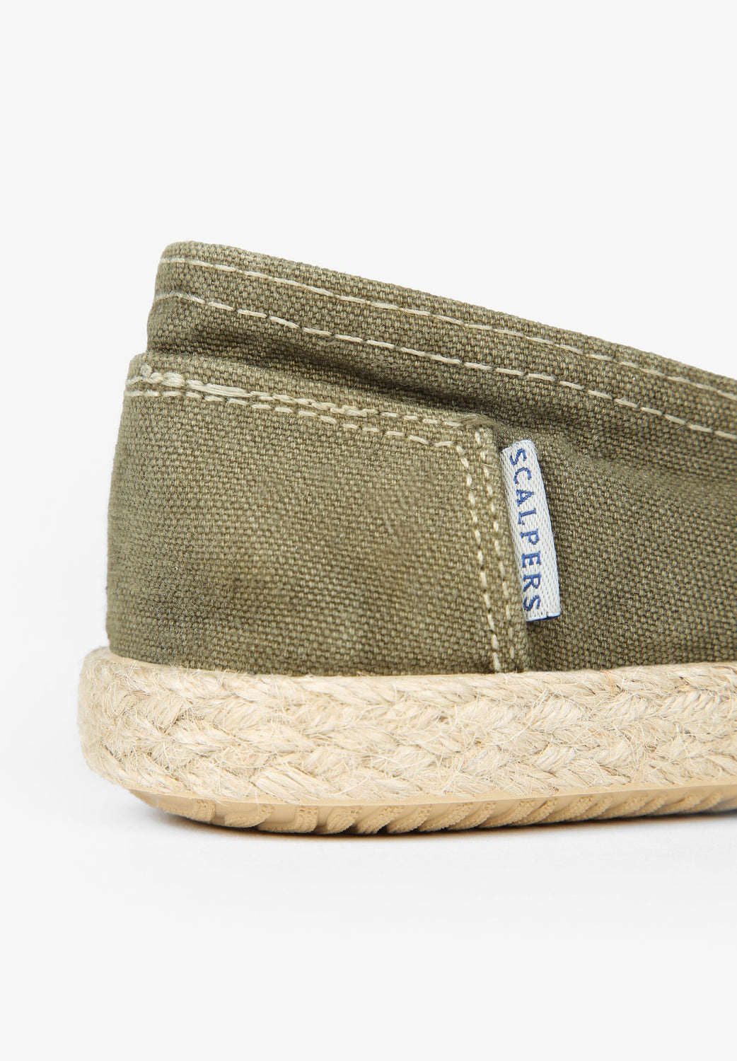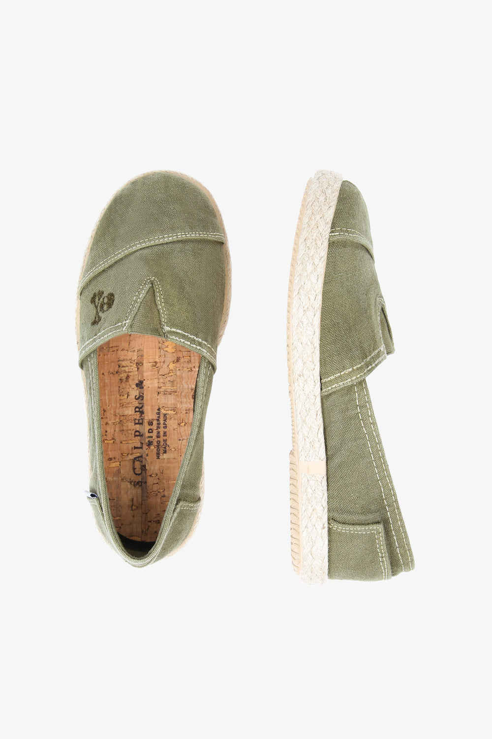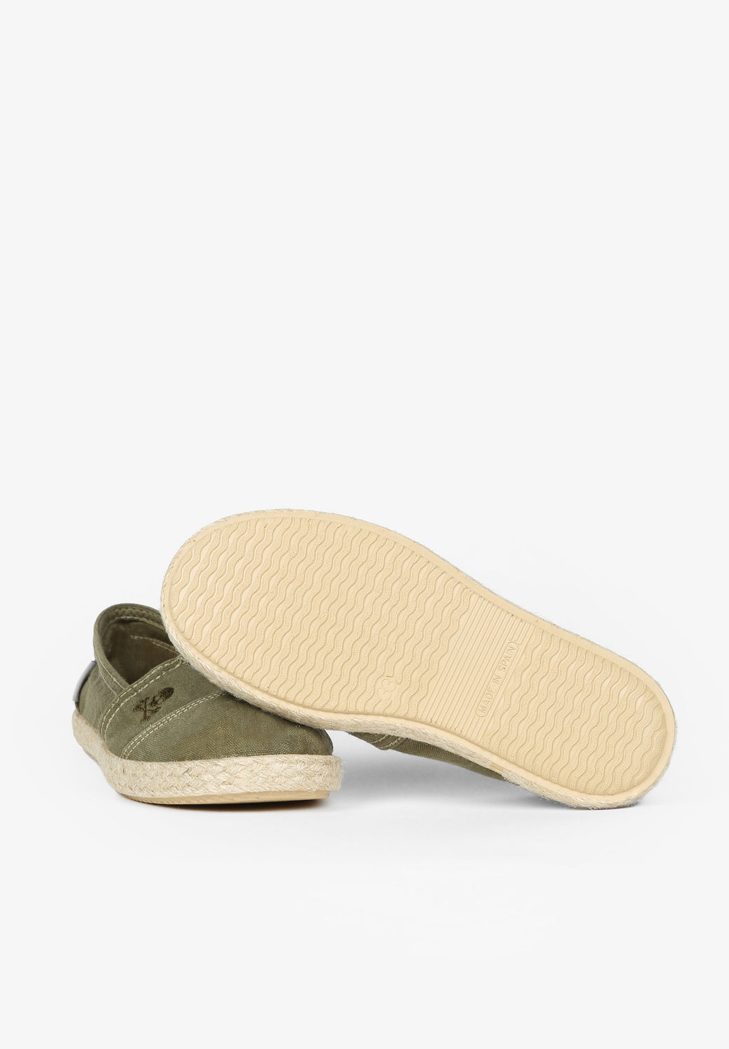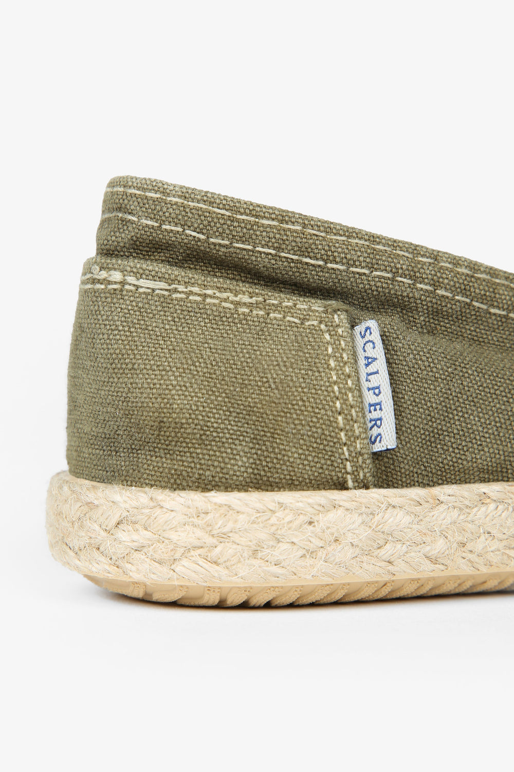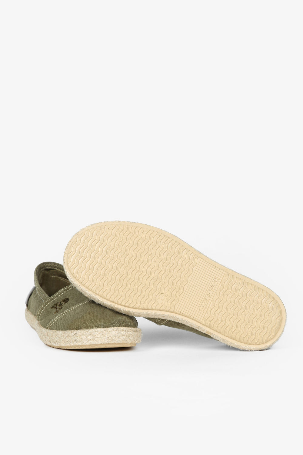 Canvas espadrilles made of 100% recycled cotton. Esparto grass and rubber sole with embroidered skull detail and label.