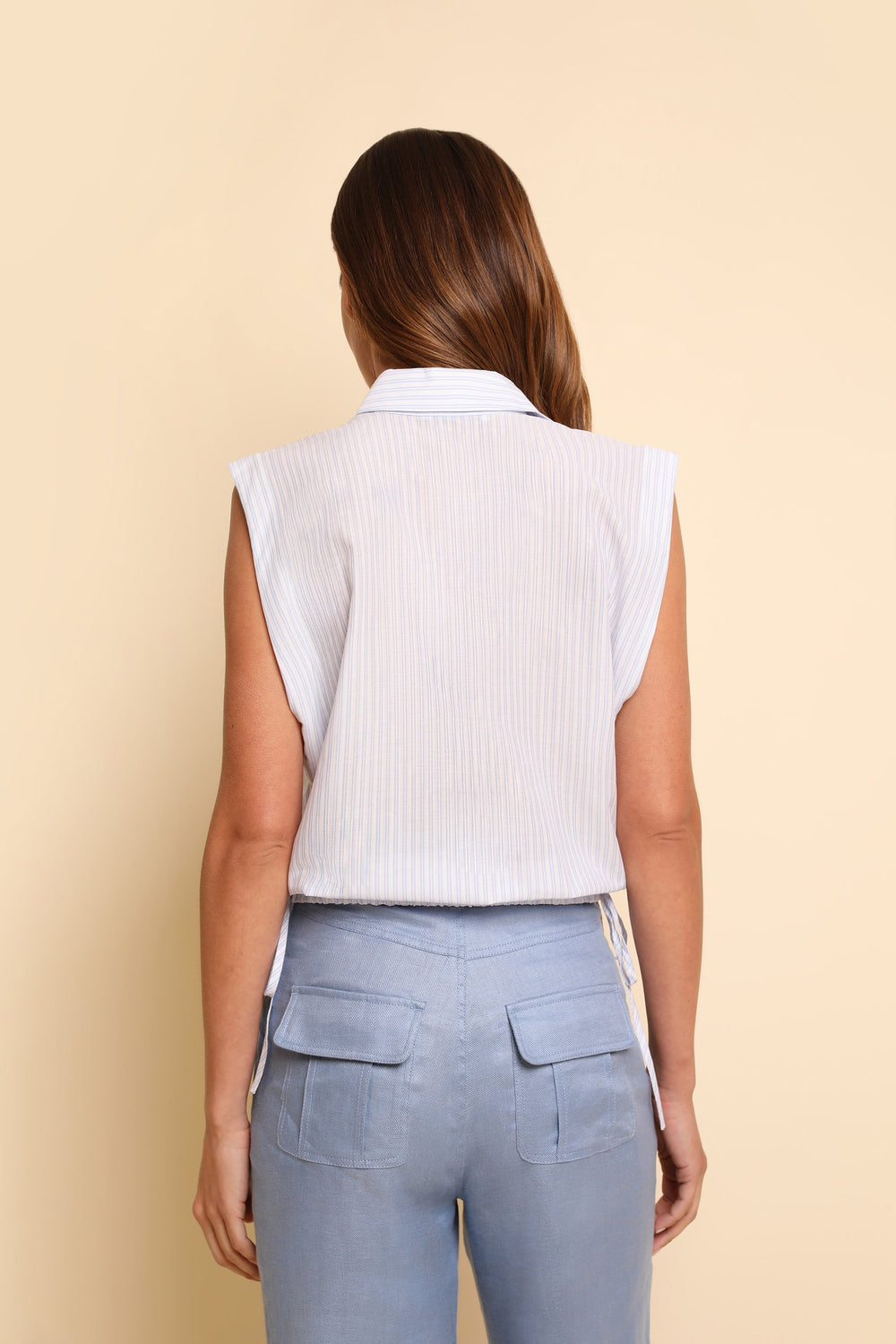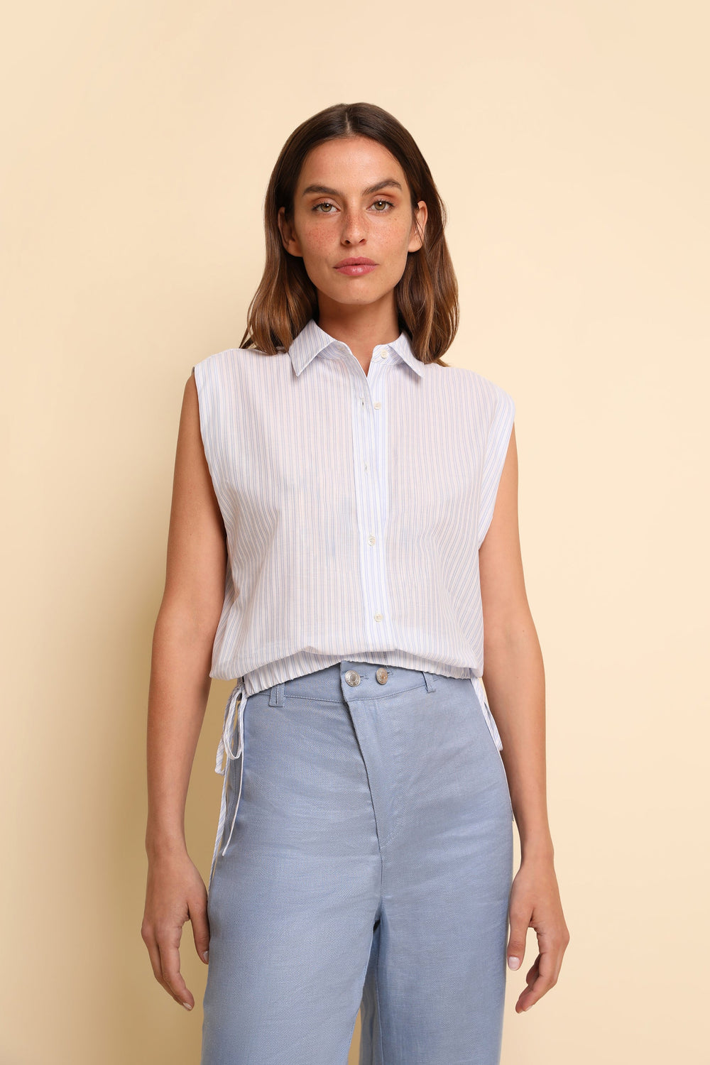 Striped shirt made of 100% cotton. Regular fit, classic collar and button fastening. Sleeveless and elasticated hem with drawstrings