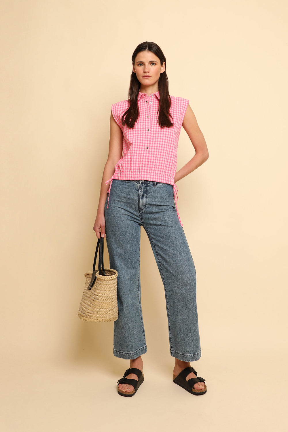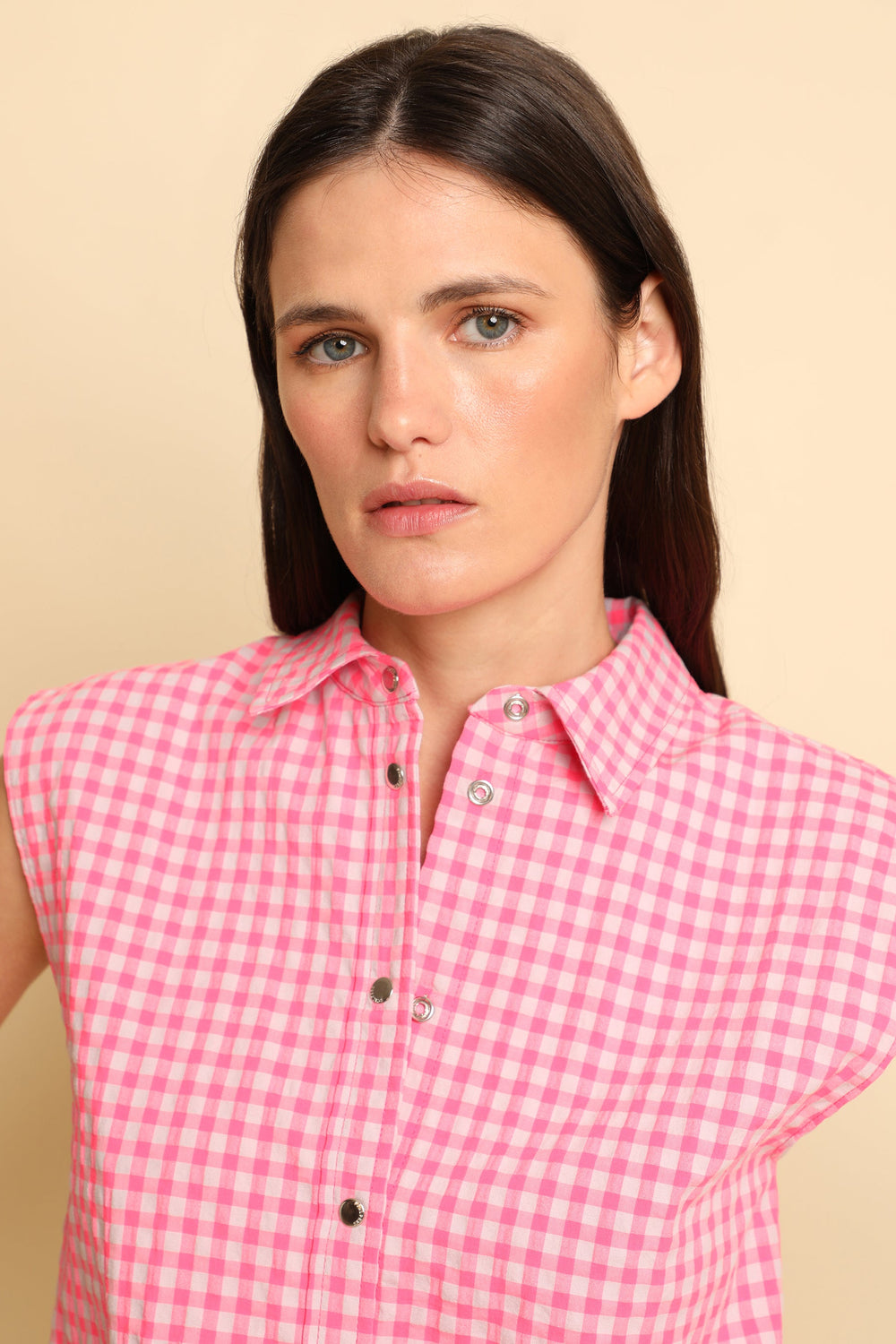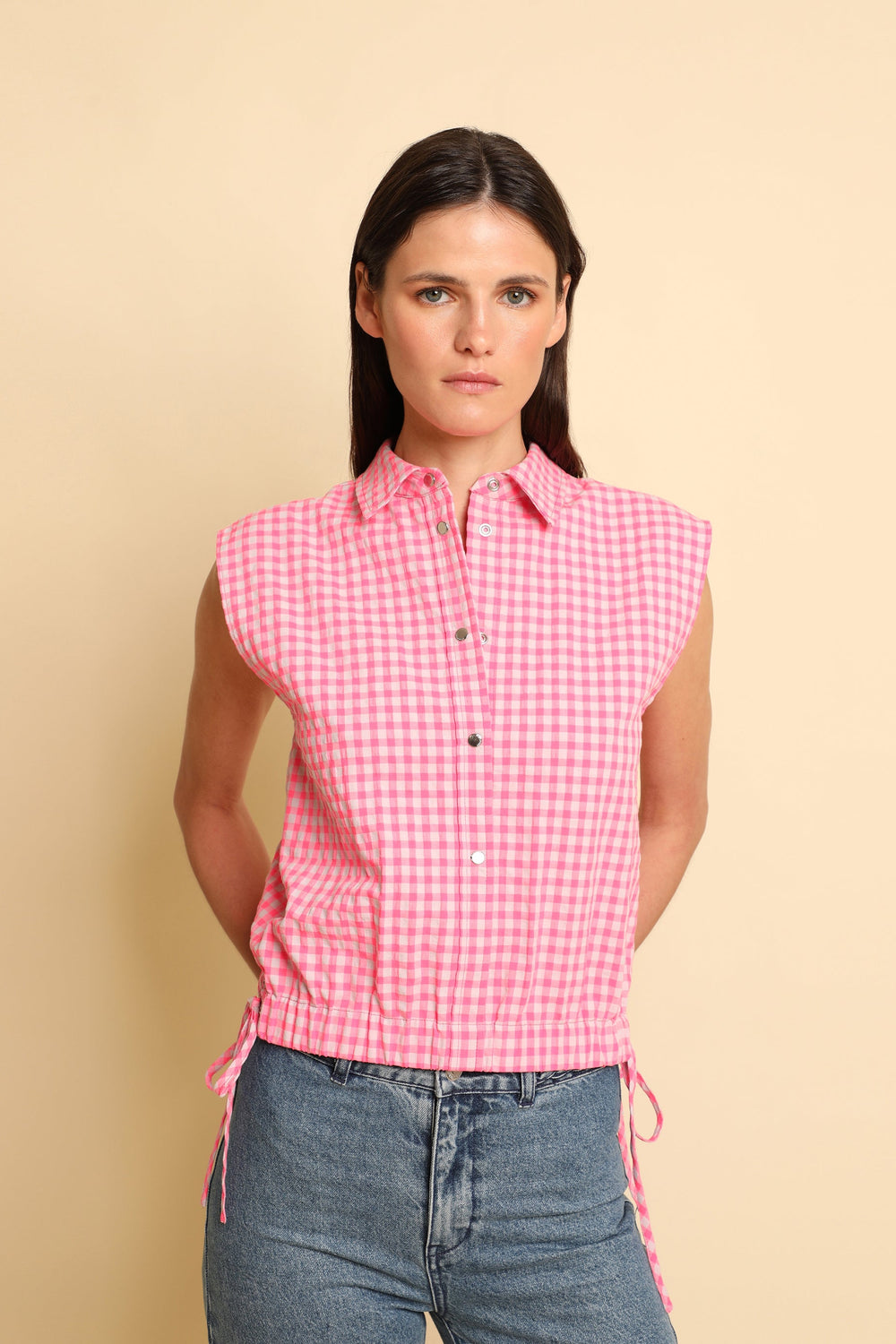 Check shirt made of 100% cotton. Regular fit, classic collar and button fastening. Sleeveless and elasticated hem with drawstrings