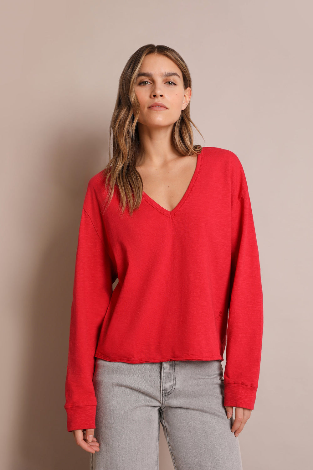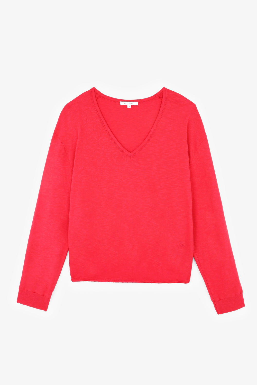 Long sleeve T-shirt. Made from 100% BCI cotton, regular fit, featuring long sleeves with cuffs, a V-neck and an embroidered skull on the side.