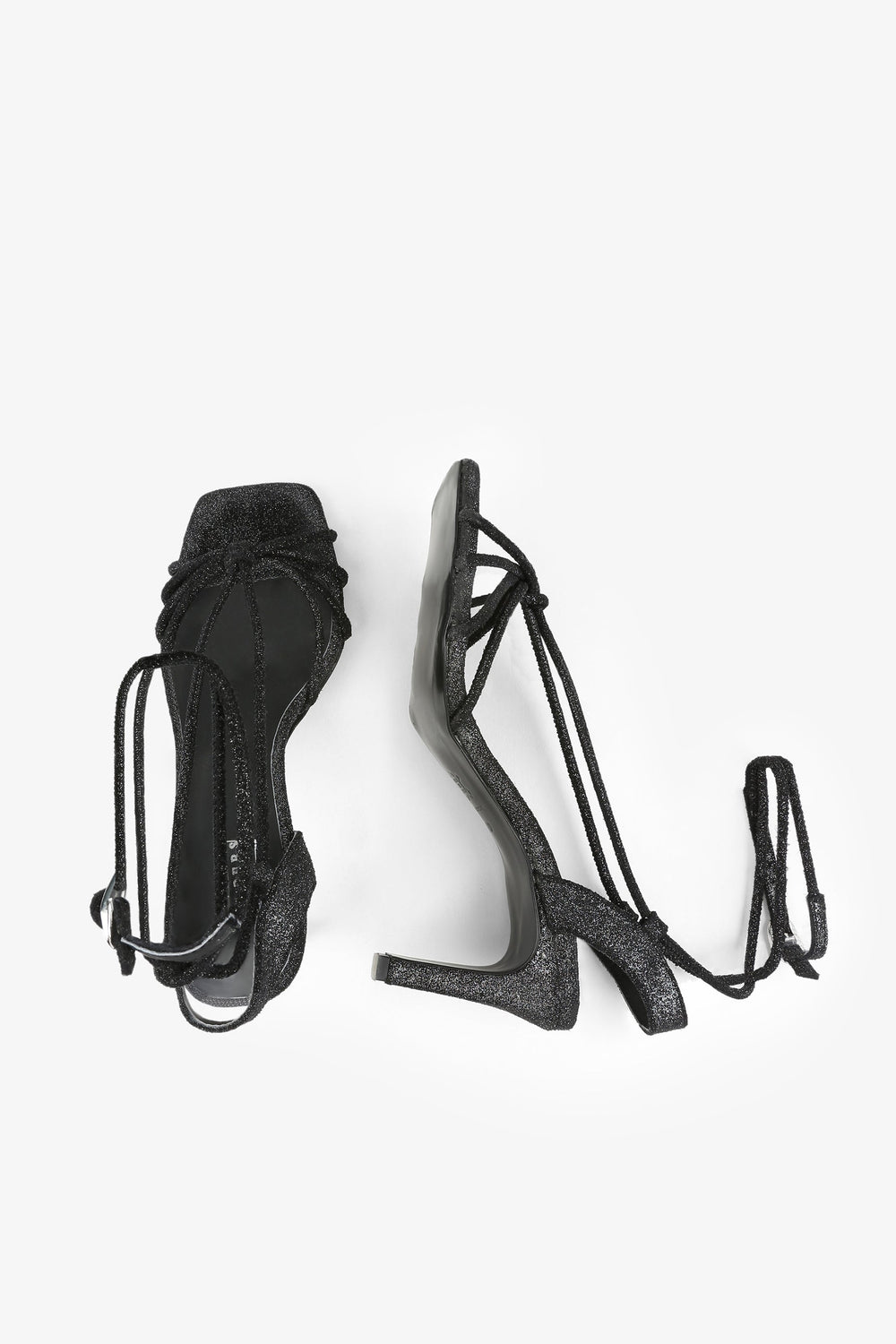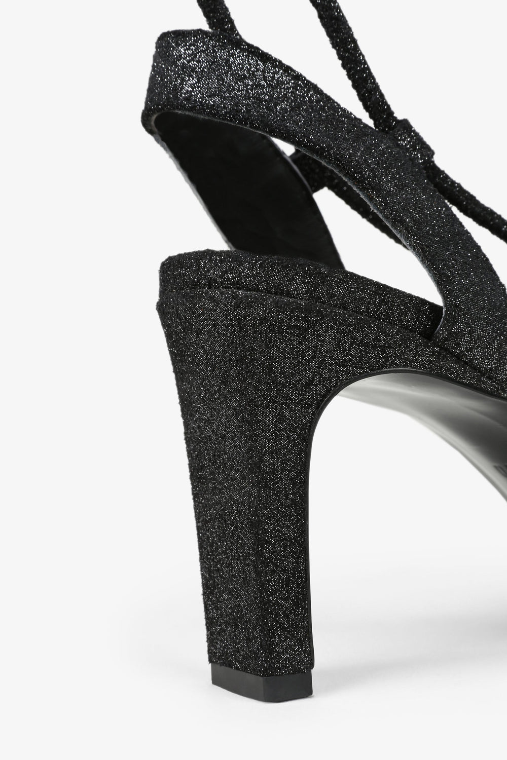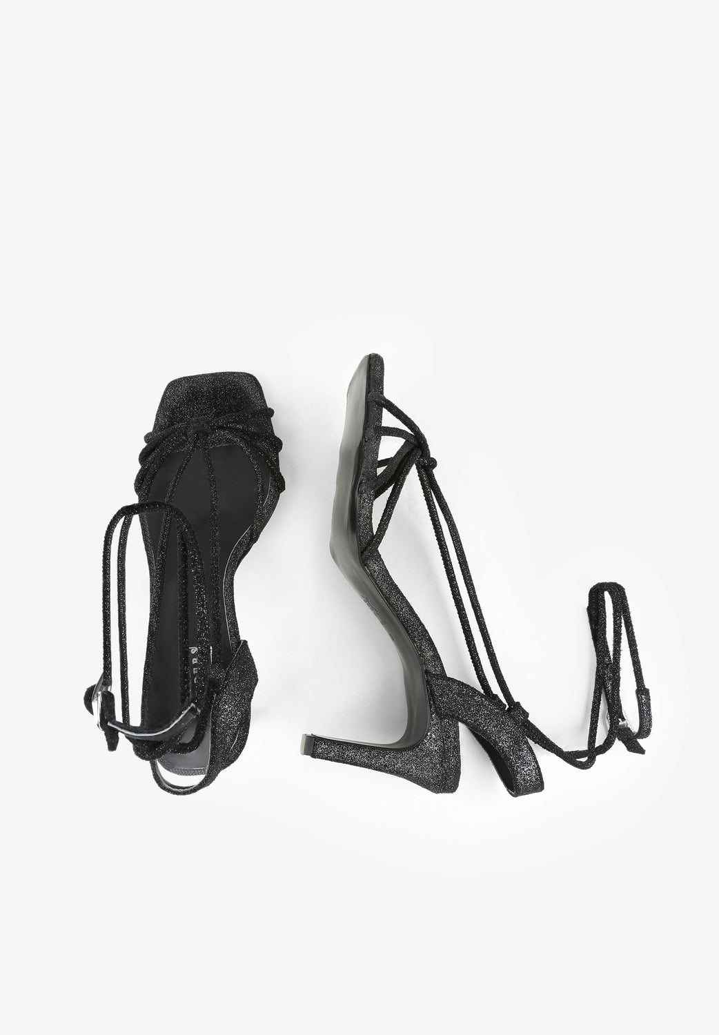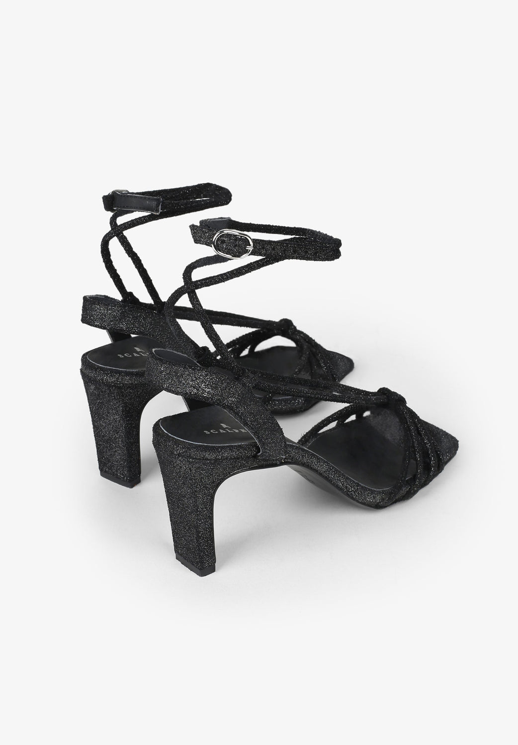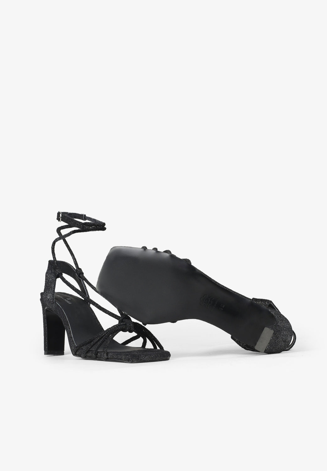Heeled sandals. Made with 100% leather straps, shiny effect material, ankle buckle fastening and square-shaped heel. Heel height: 7.5 cm