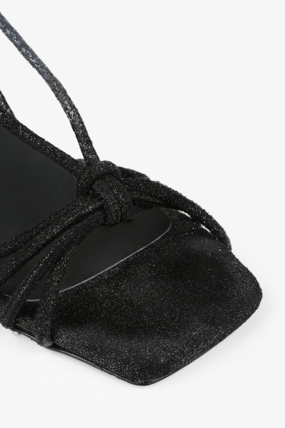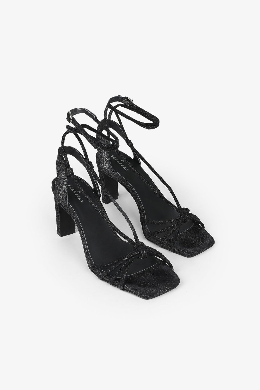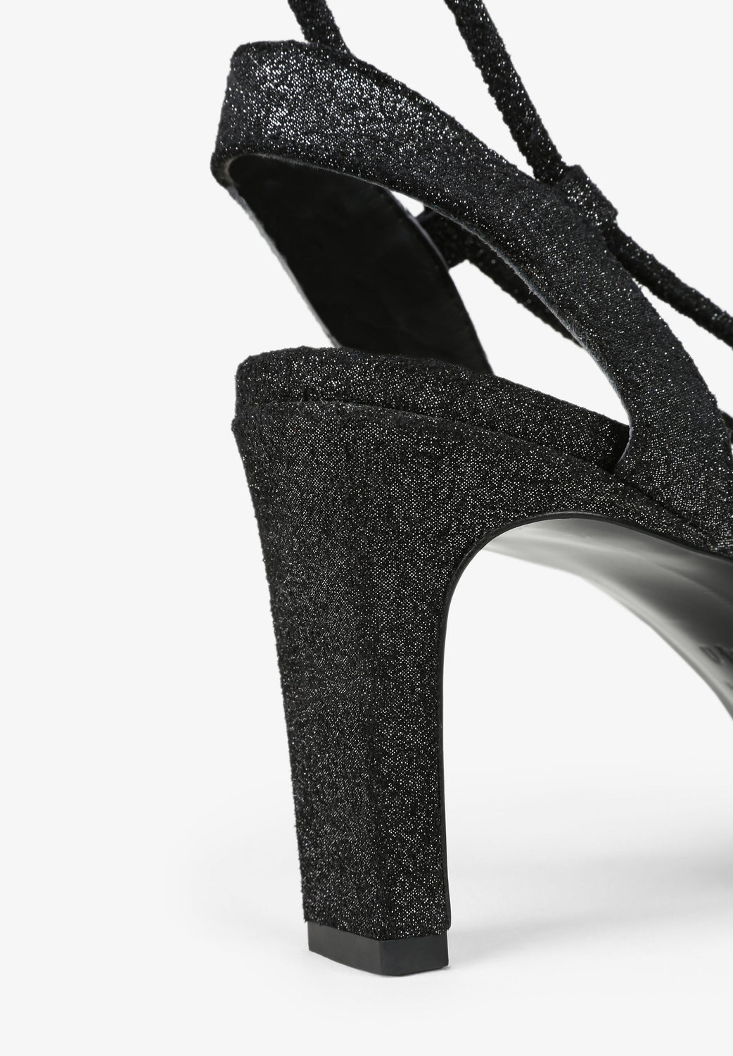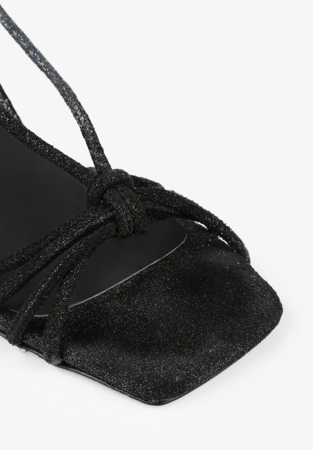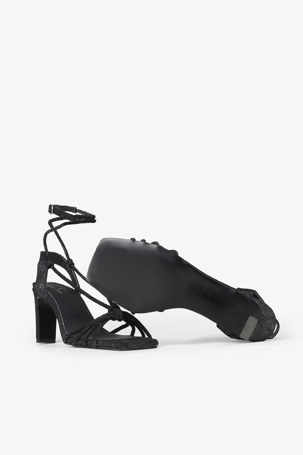 Heeled sandals. Made with 100% leather straps, shiny effect material, ankle buckle fastening and square-shaped heel. Heel height: 7.5 cm