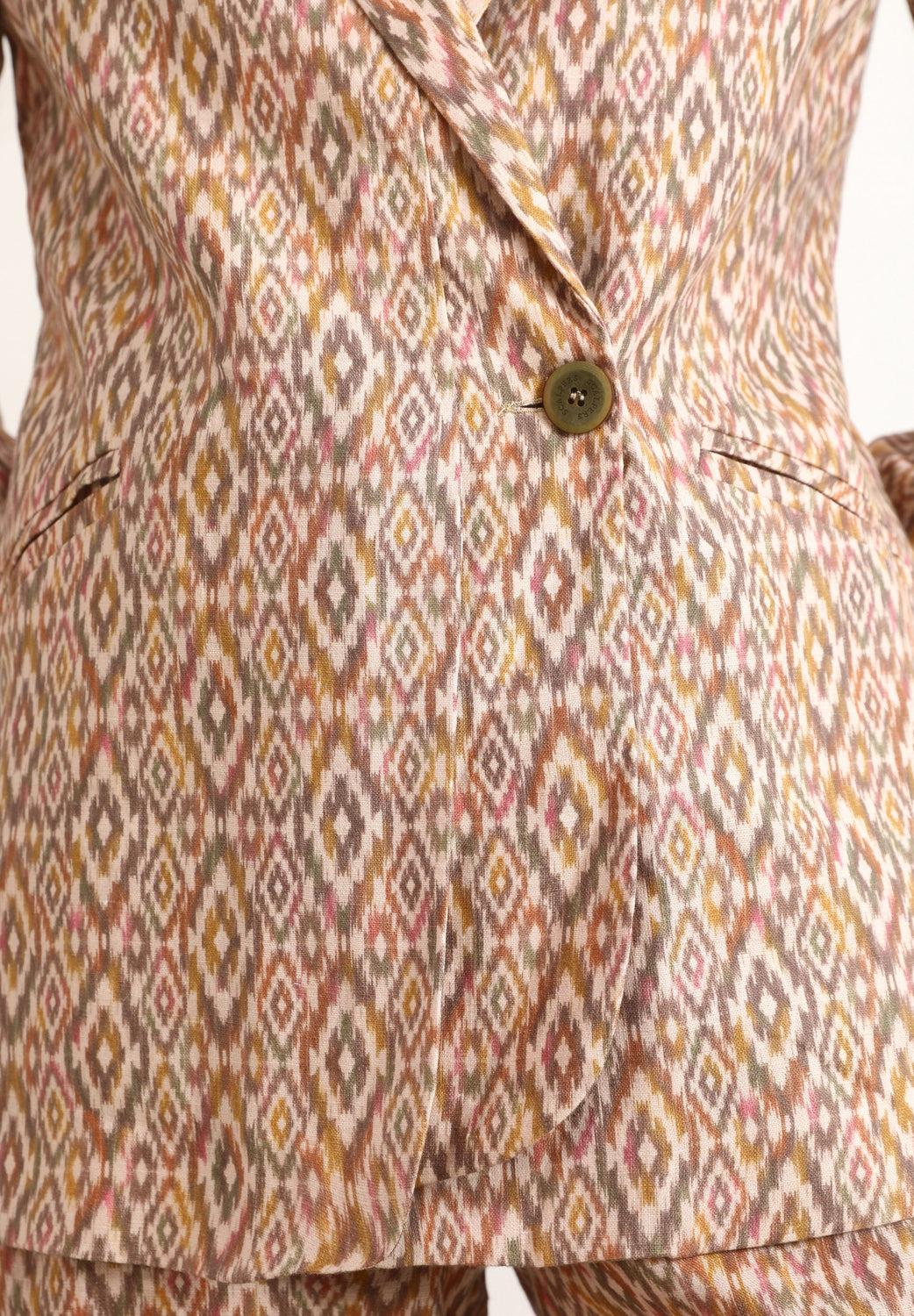 Blazer with ethnic linen fabric.
