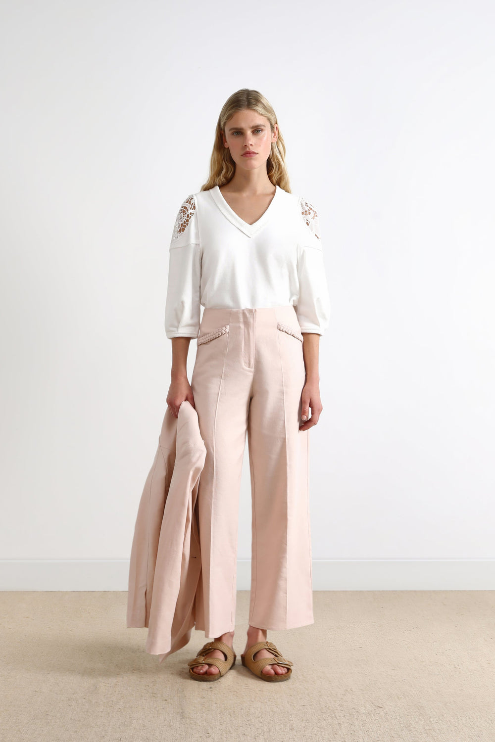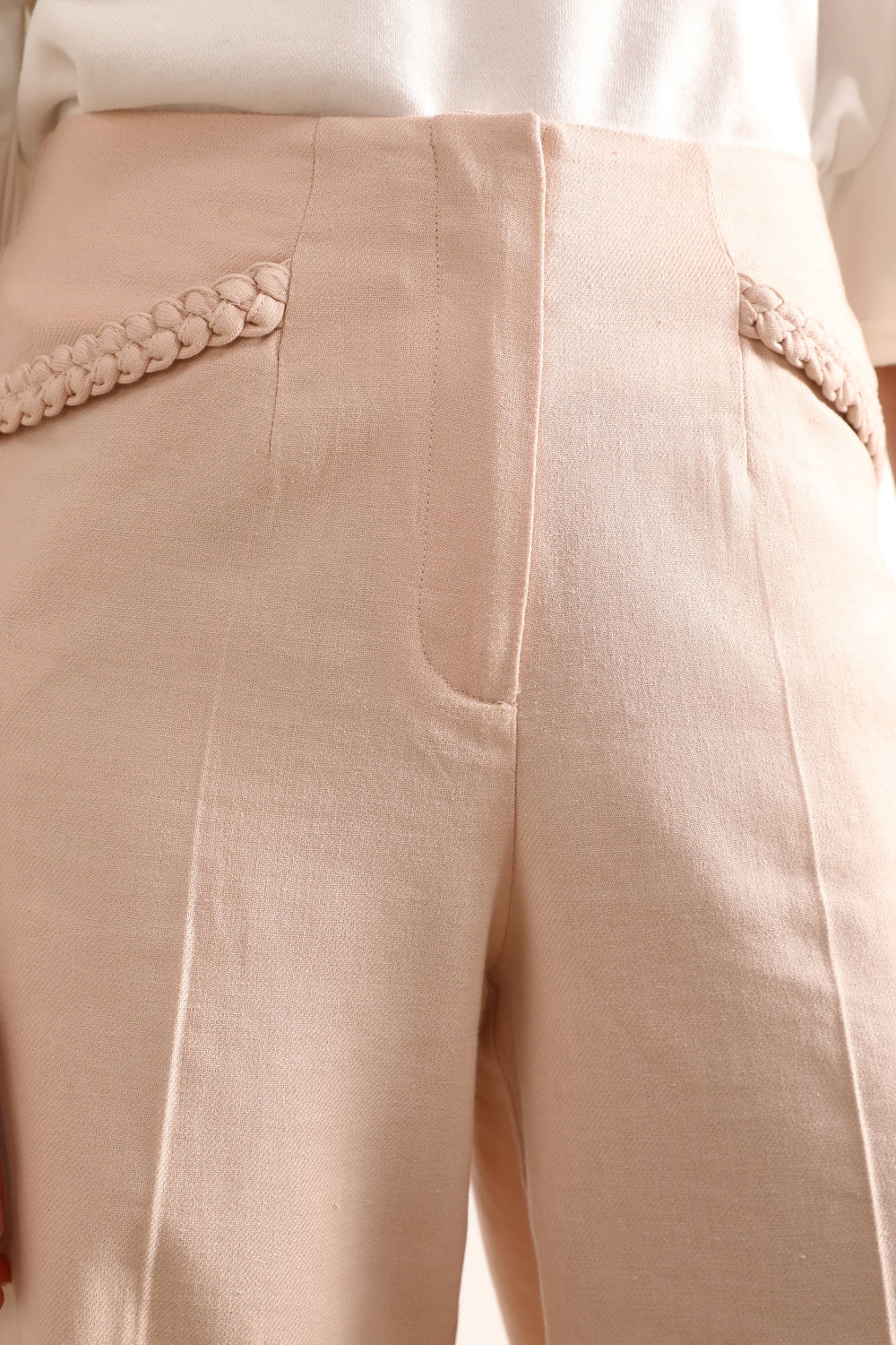 LINEN TROUSERS WITH BRAIDED DETAILS