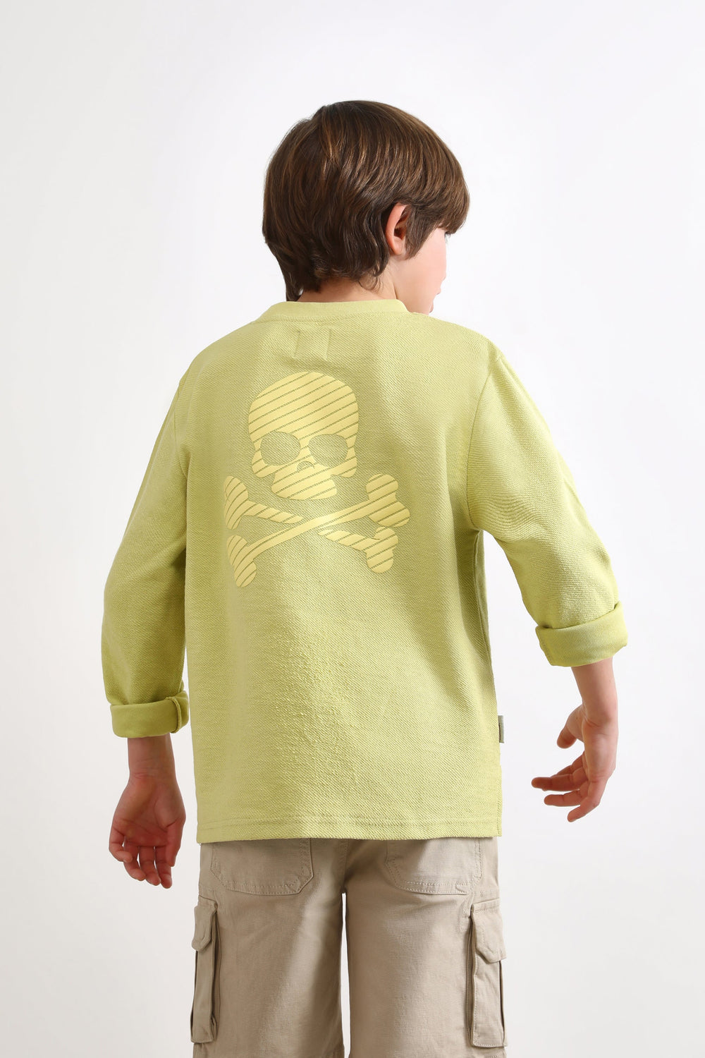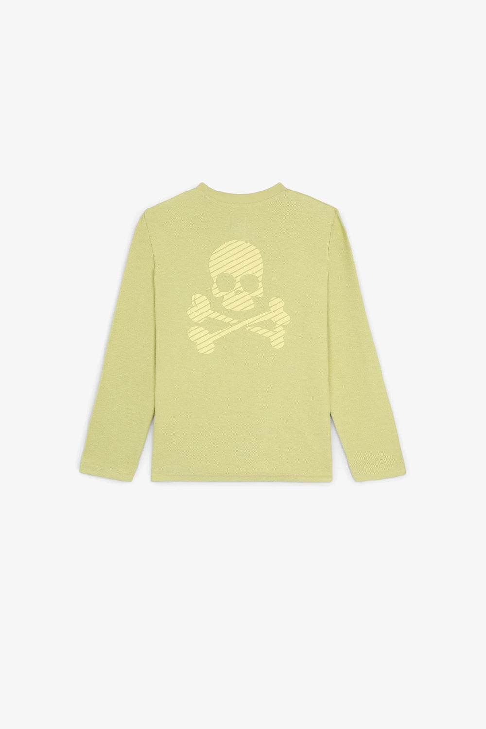 Sweatshirt with front pocket and relief skull on the back.