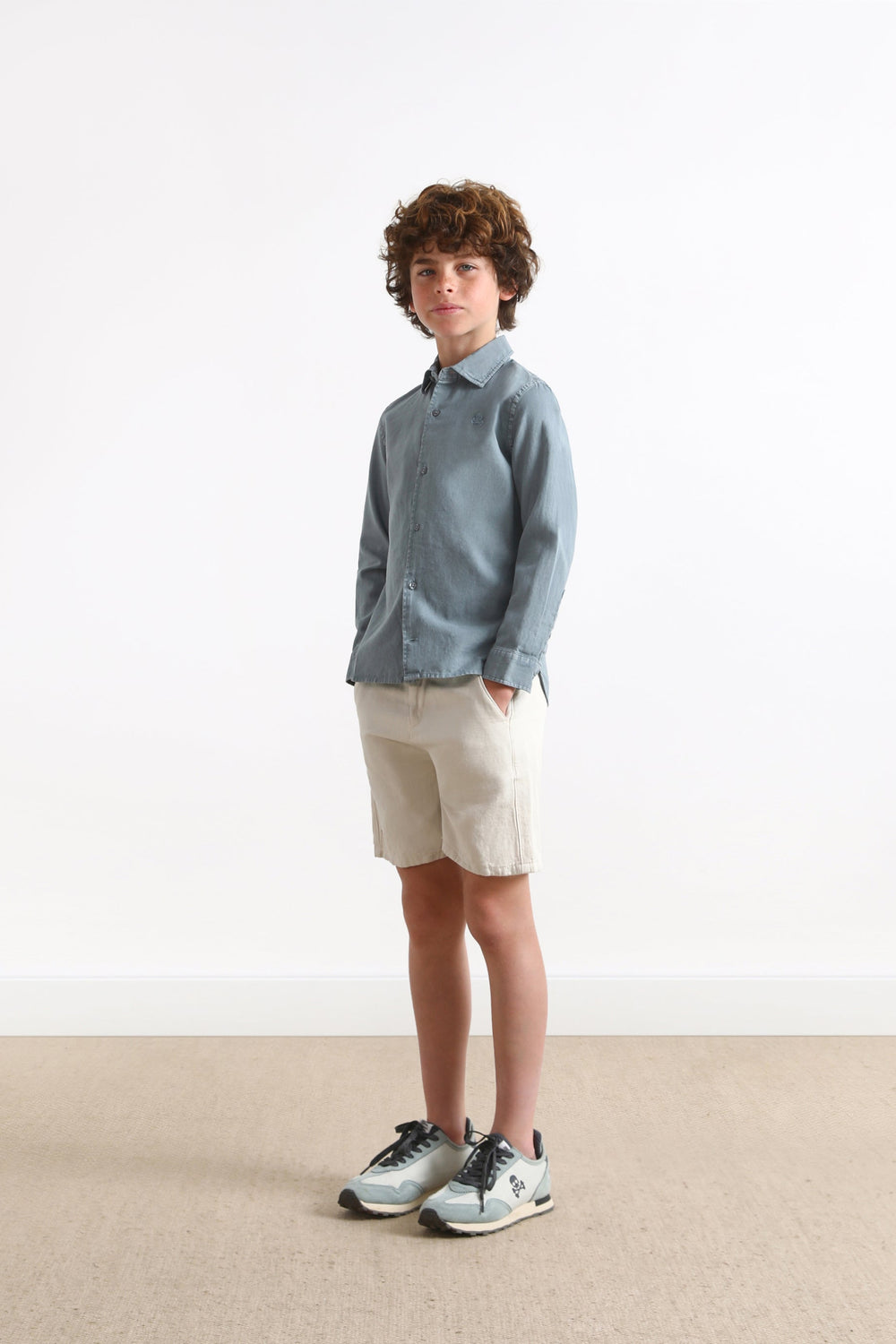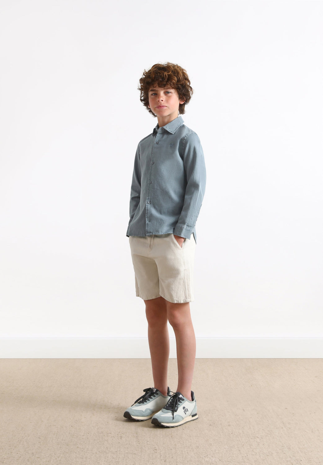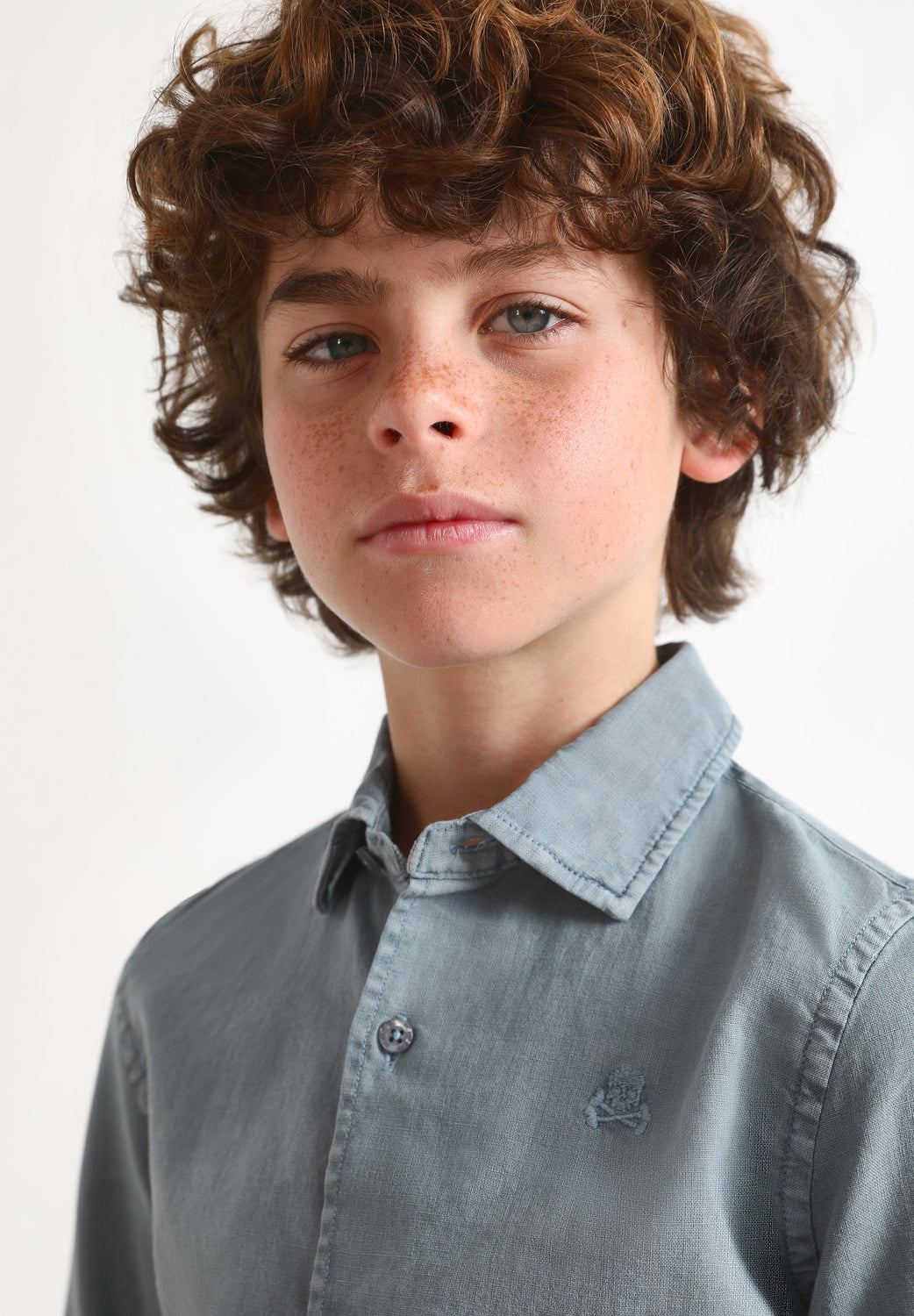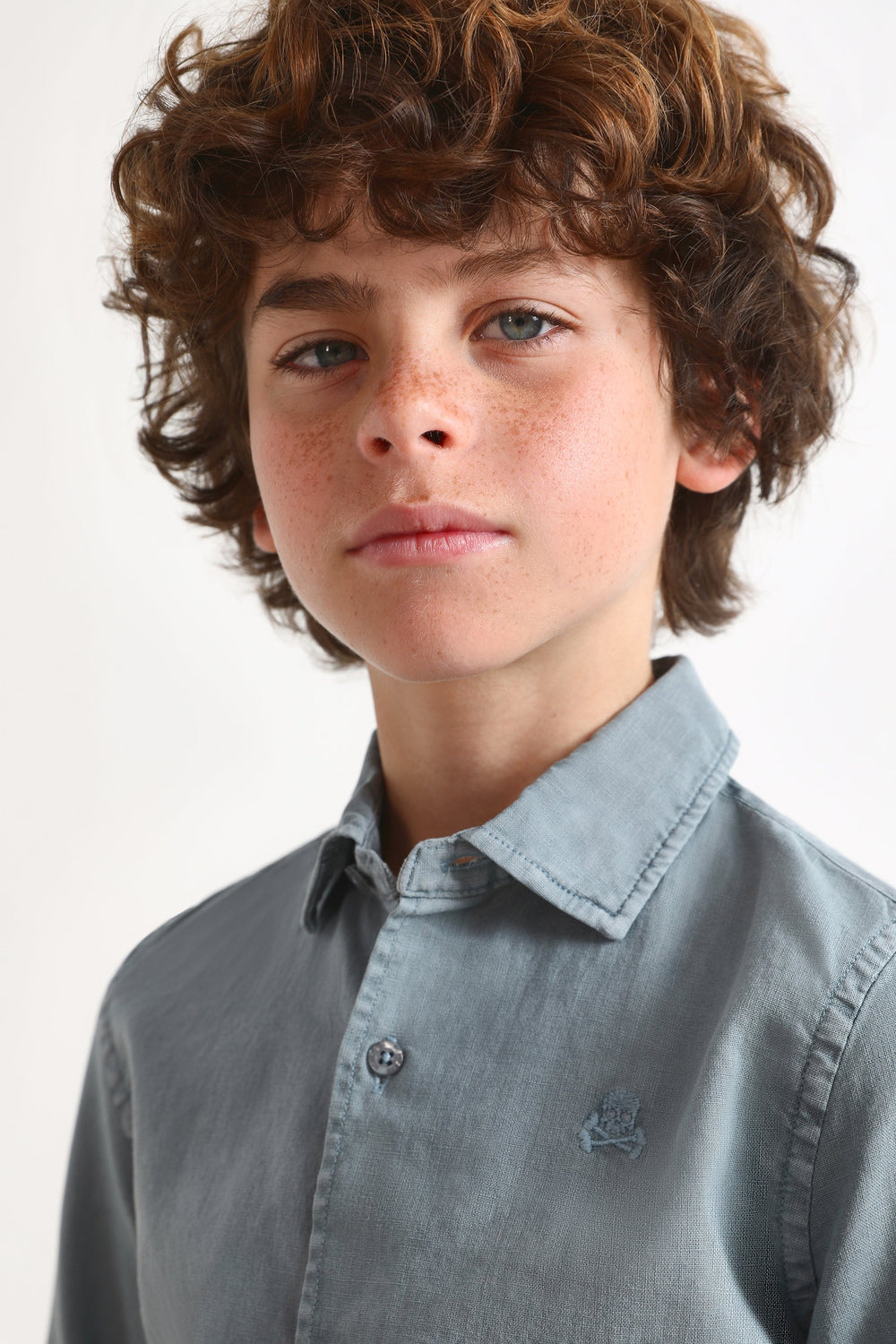 Shirt with matching embroidered skull detail.