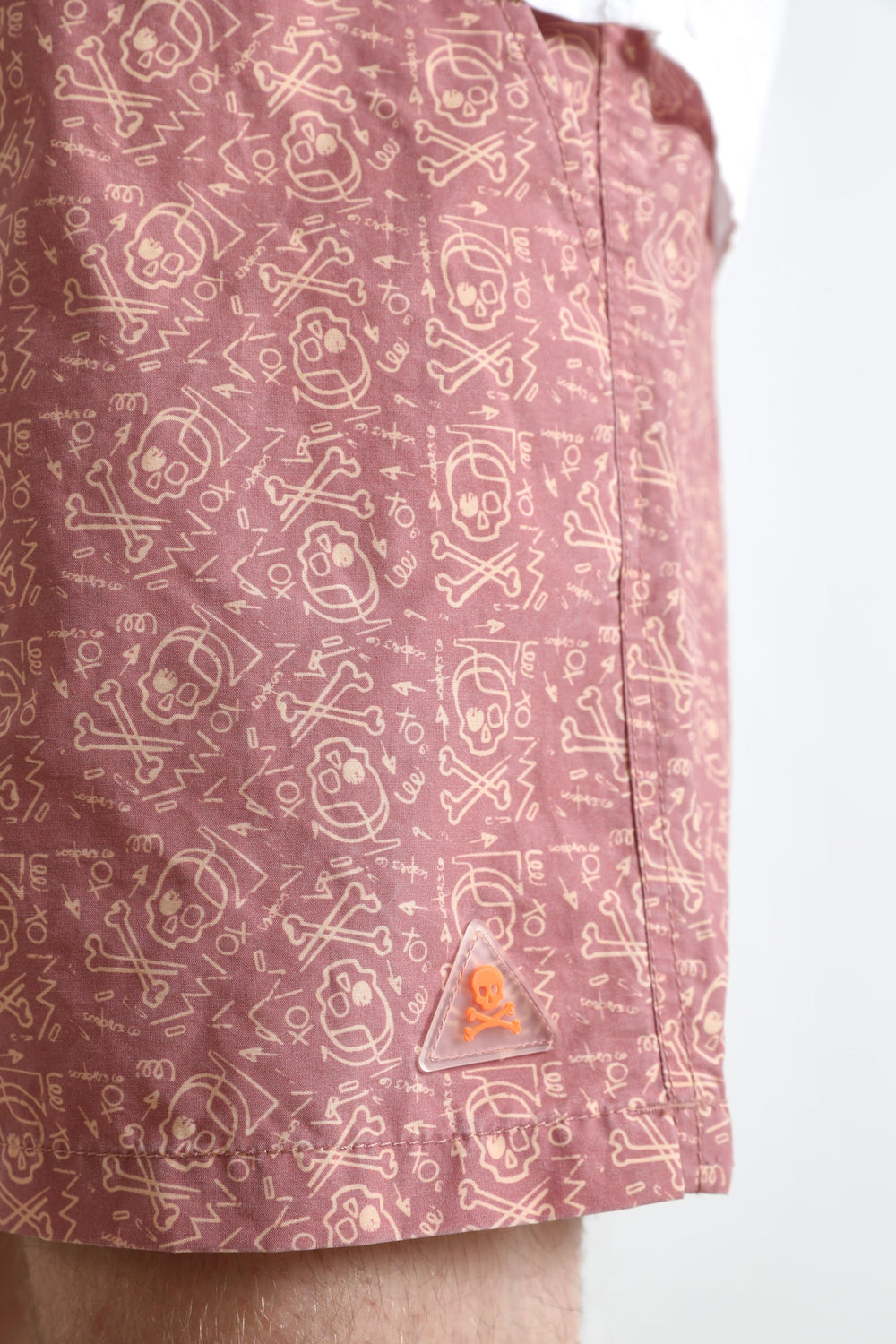 Swimming trunks with skull design.